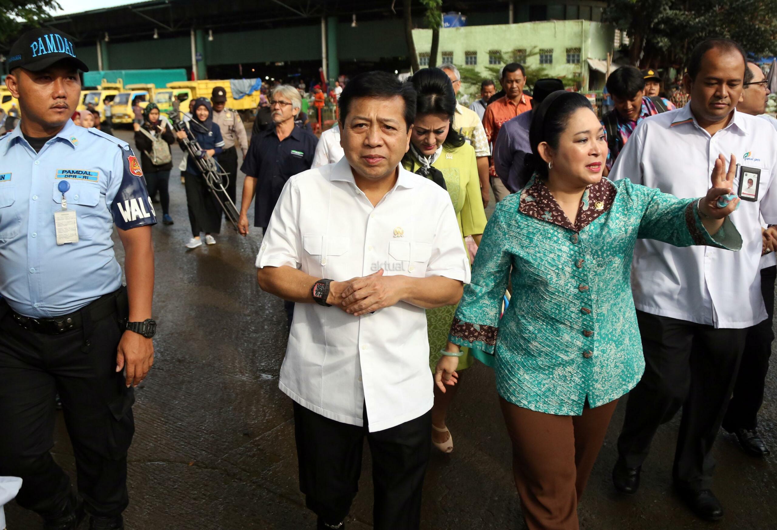 Ketua DPR RI Setya Novanto bersama Wakil Ketua Komisi IV Titiek Soeharto saat melakukan sidak harga cabai di Pasar Induk Kramat Jati, Jakarta Timur, Kamis (12/1/2017). Harga cabai yang melambung tinggi menjadi keprihatinan Ketua DPR untuk melihat langsung harga cabai di pasar. Harga cabai merah di Pasar Induk Kramat Jati mencapai Rp100 ribu per kg. Sebelumnya pernah menyentuh Rp120 ribu per kg. Kenaikan ini disebabkan salah satunya faktor cuaca yang membuat banyak cabai rusak. AKTUAL/Tino Oktaviano