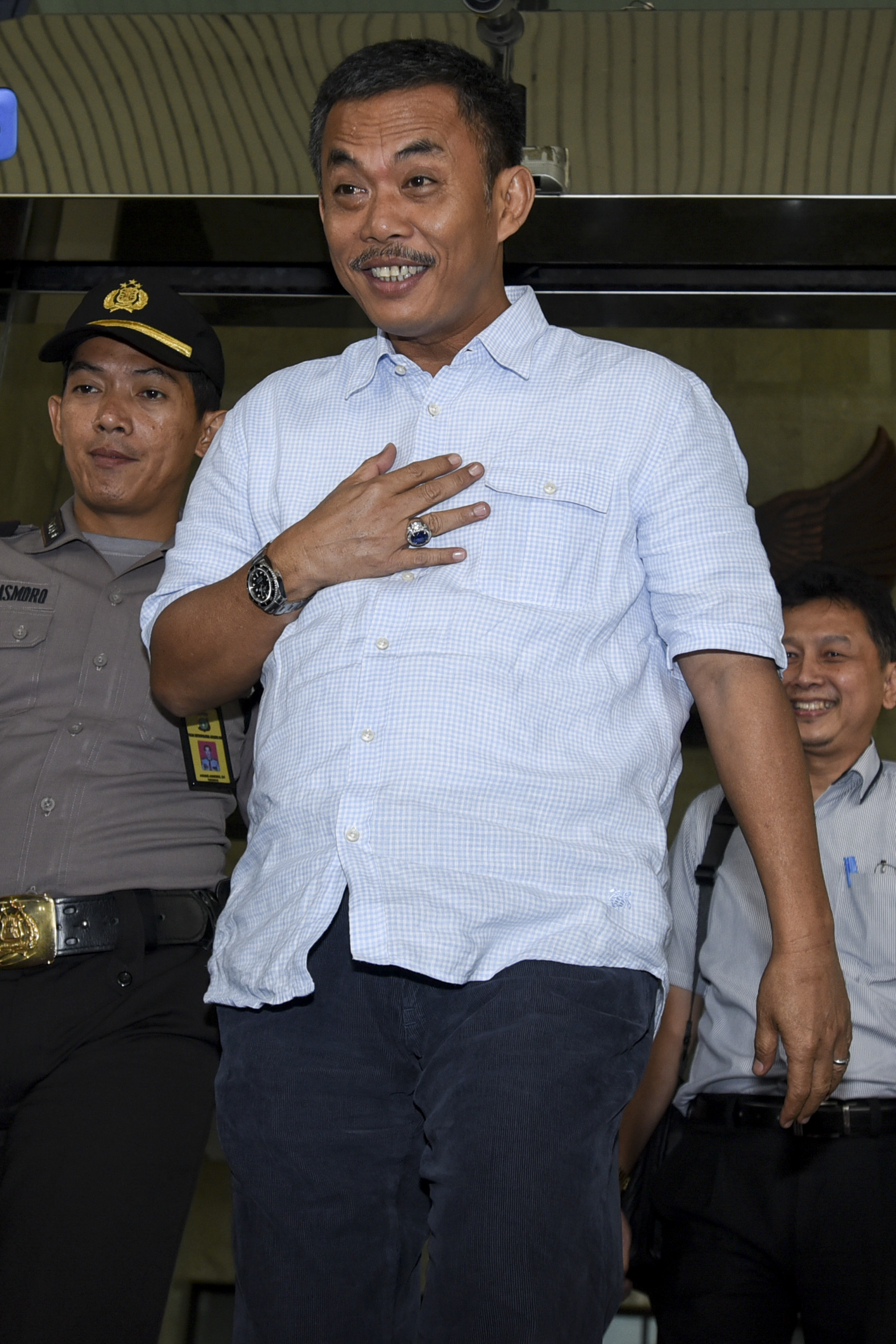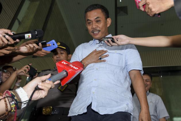 Ketua DPRD DKI Jakarta Prasetyo Edi Marsudi berjalan seusai menjalani pemeriksaan di Gedung KPK, Jakarta, Selasa (14/6). Prasetyo kembali diperiksa KPK sebagai saksi dalam kasus dugaan suap pembahasan Raperda reklamasi Teluk Jakarta dengan tersangka Ketua Komisi D DPRD DKI Mohamad Sanusi. ANTARA FOTO/Hafidz Mubarak A/foc/16.