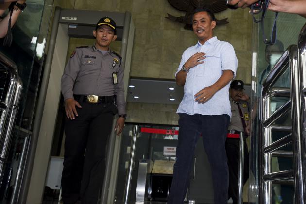 Ketua DPRD DKI Jakarta Prasetyo Edi Marsudi (kanan) berjalan seusai menjalani pemeriksaan di Gedung KPK, Jakarta, Selasa (14/6). Prasetyo kembali diperiksa KPK sebagai saksi dalam kasus dugaan suap pembahasan Raperda reklamasi Teluk Jakarta dengan tersangka Ketua Komisi D DPRD DKI Mohamad Sanusi. ANTARA FOTO/Hafidz Mubarak A/foc/16.