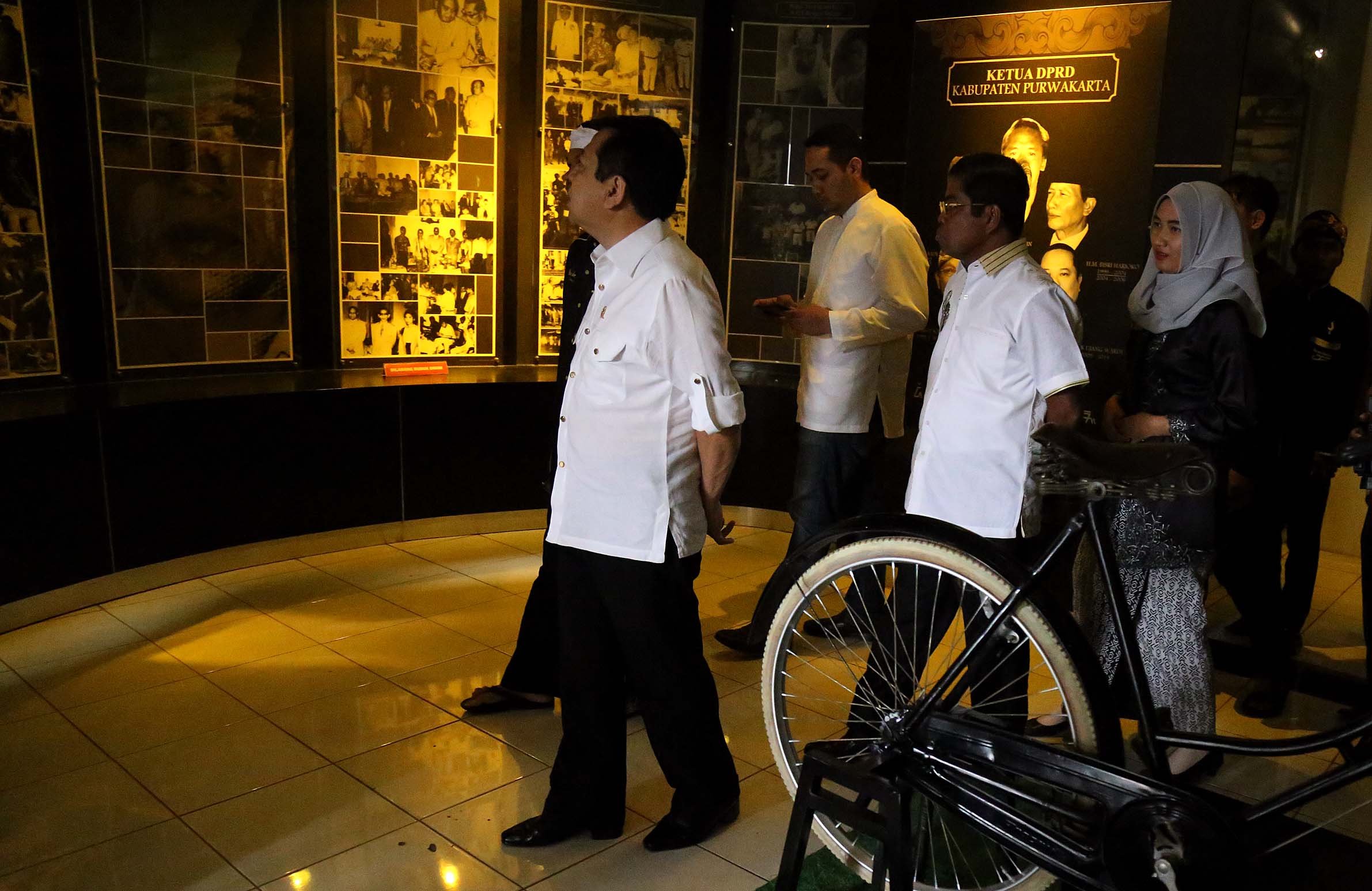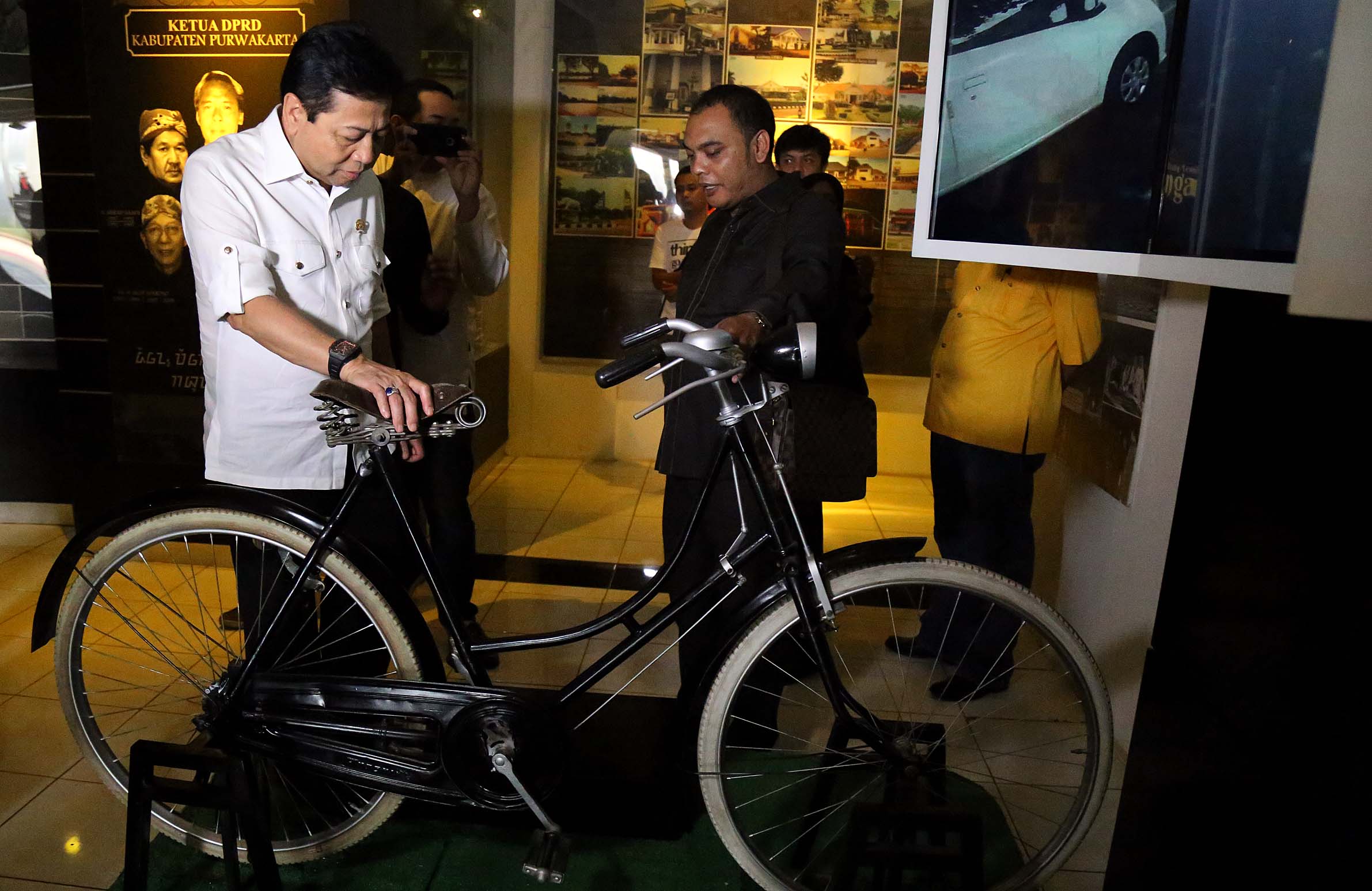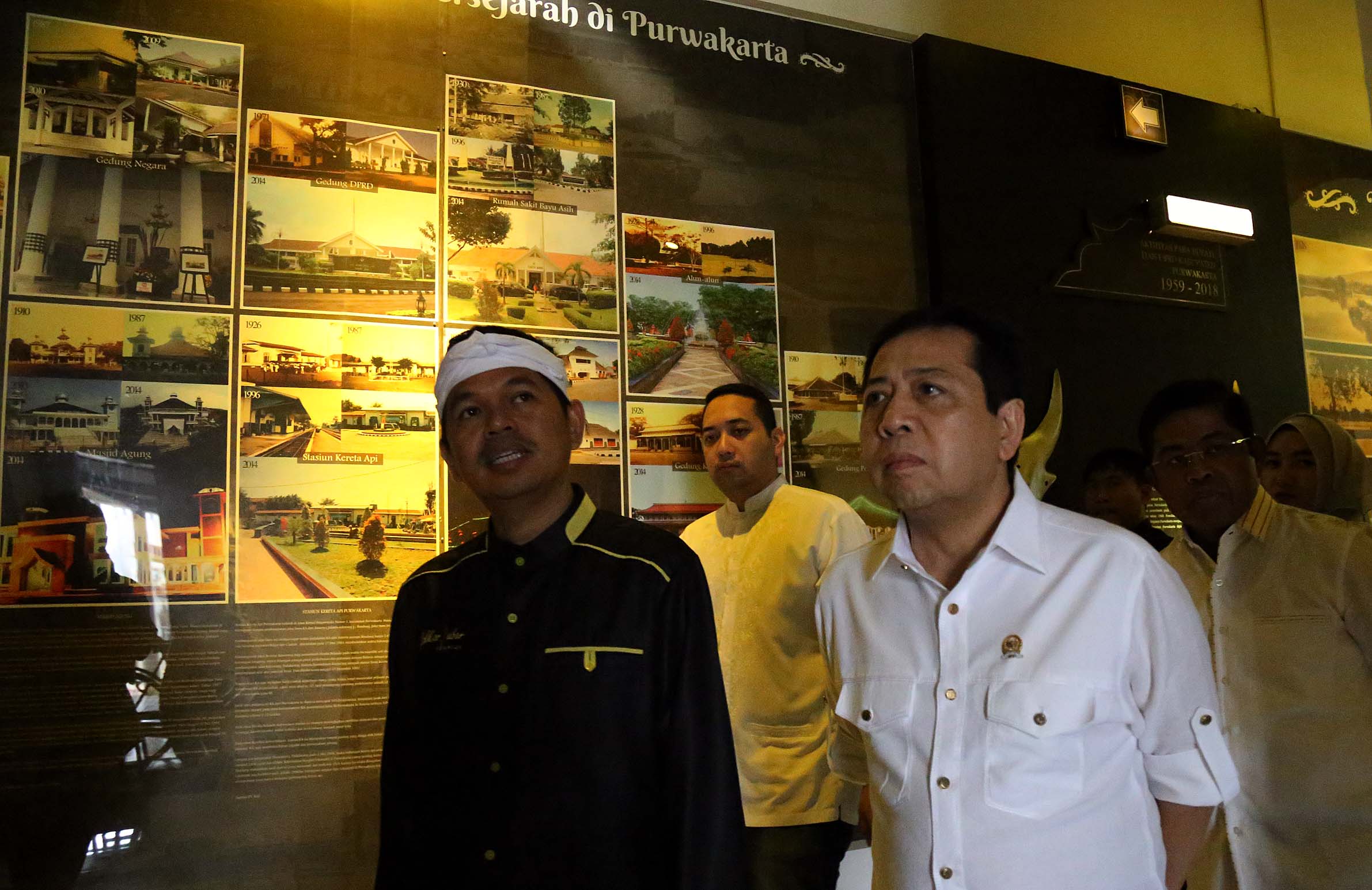 Setnov sempat mencoba beberapa alat peraga yang berada di dalam museum. Di antaranya adalah buku sejarah Sunda dan Purwakarta, sepeda ontel digital, dan terakhir menonton sejarah dan potensi Kabupaten Purwakarta yang berada di ruangan mini bioskop.
