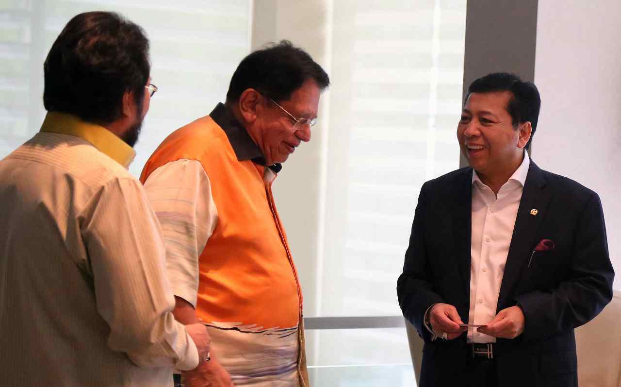 Ketua Umum DPP Partai Gokar Setya Novanto (kanan) berdiskusi dengan Sekjen Partai United Malays National Organisation (UMNO) Datuk Sri Tengku Adnan Bin Tengku Mansor (kiri) di kediaman Ketua Umum Partai Gokar, di Jalan Wijaya XIII, Jakarta Selatan, Sabtu (23/7/2016). Dalam pertemuan tersebut melakukan beberapa kerjasama antara UMNO dan Golkar diantaranya Ketenagakerjaan dan Kemahasiswaan.