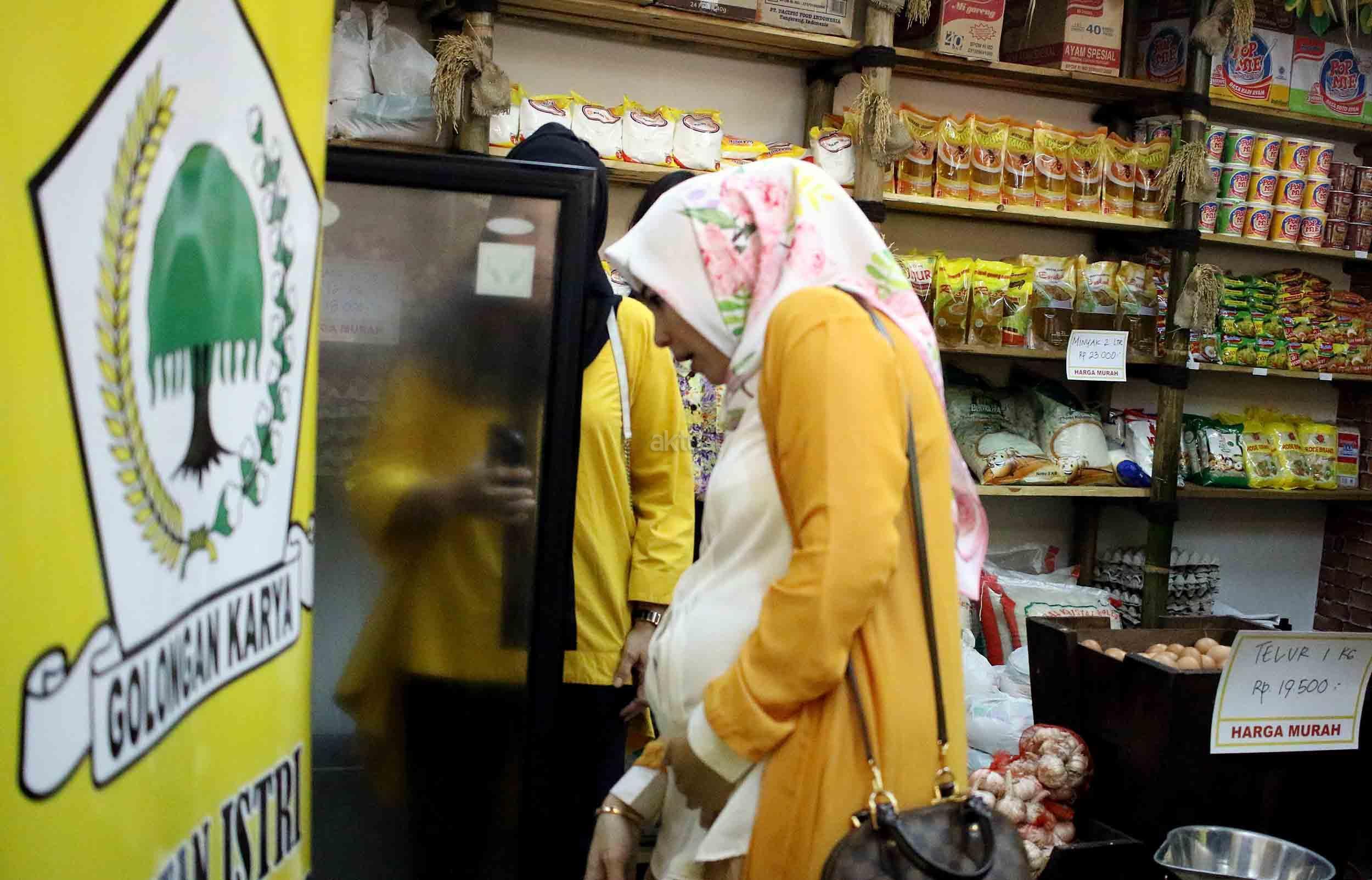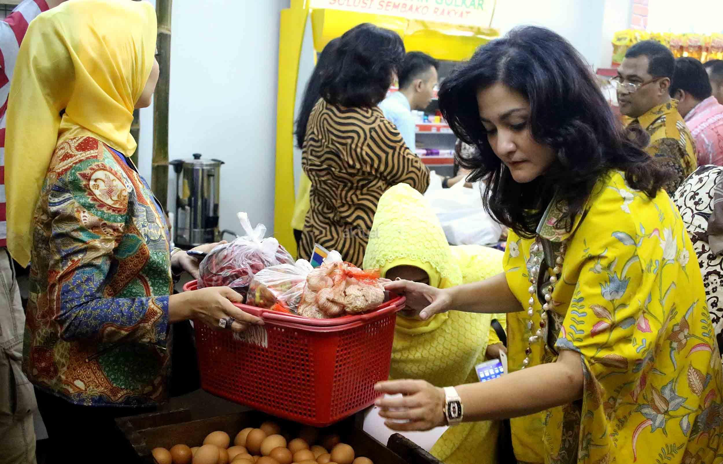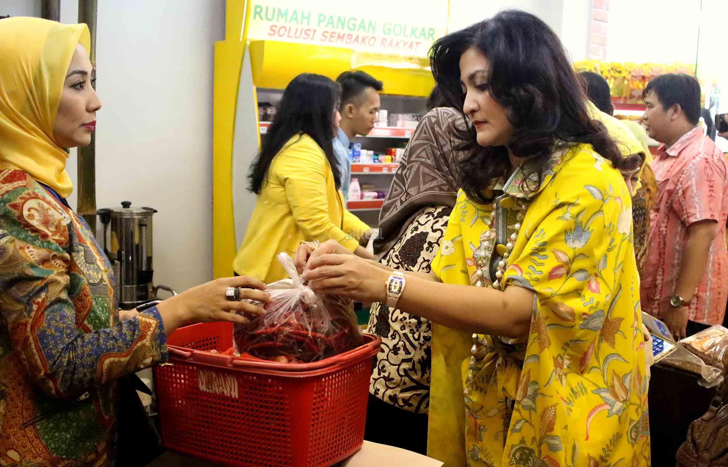 Ketua Umum Ikatan Istri Partai Golkar (IIPG) Deisti Astriani Novanto berbelanja sembako di warung Rumah Pangan Golkar (RPG) di kantor DPD I Partai Golkar DKI Jakarta, Kamis (6/10/2016). Rumah Pangan Golkar (RPG) ini salah satu program IIPG sebagai solusi sembako murah yg dekat dengan rakyat. Aktual/Munzir