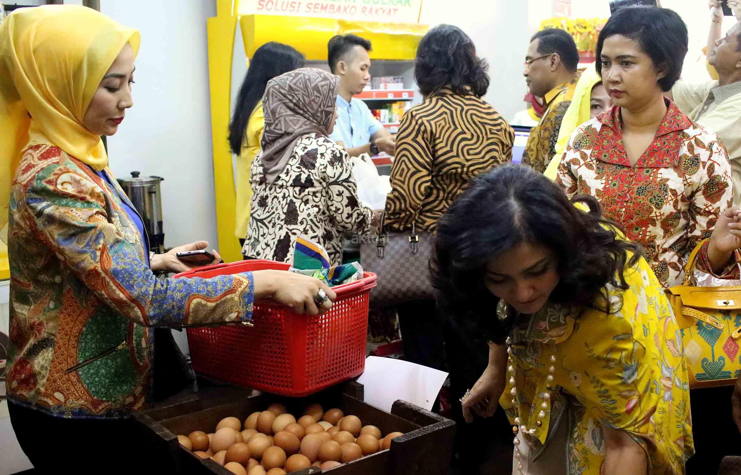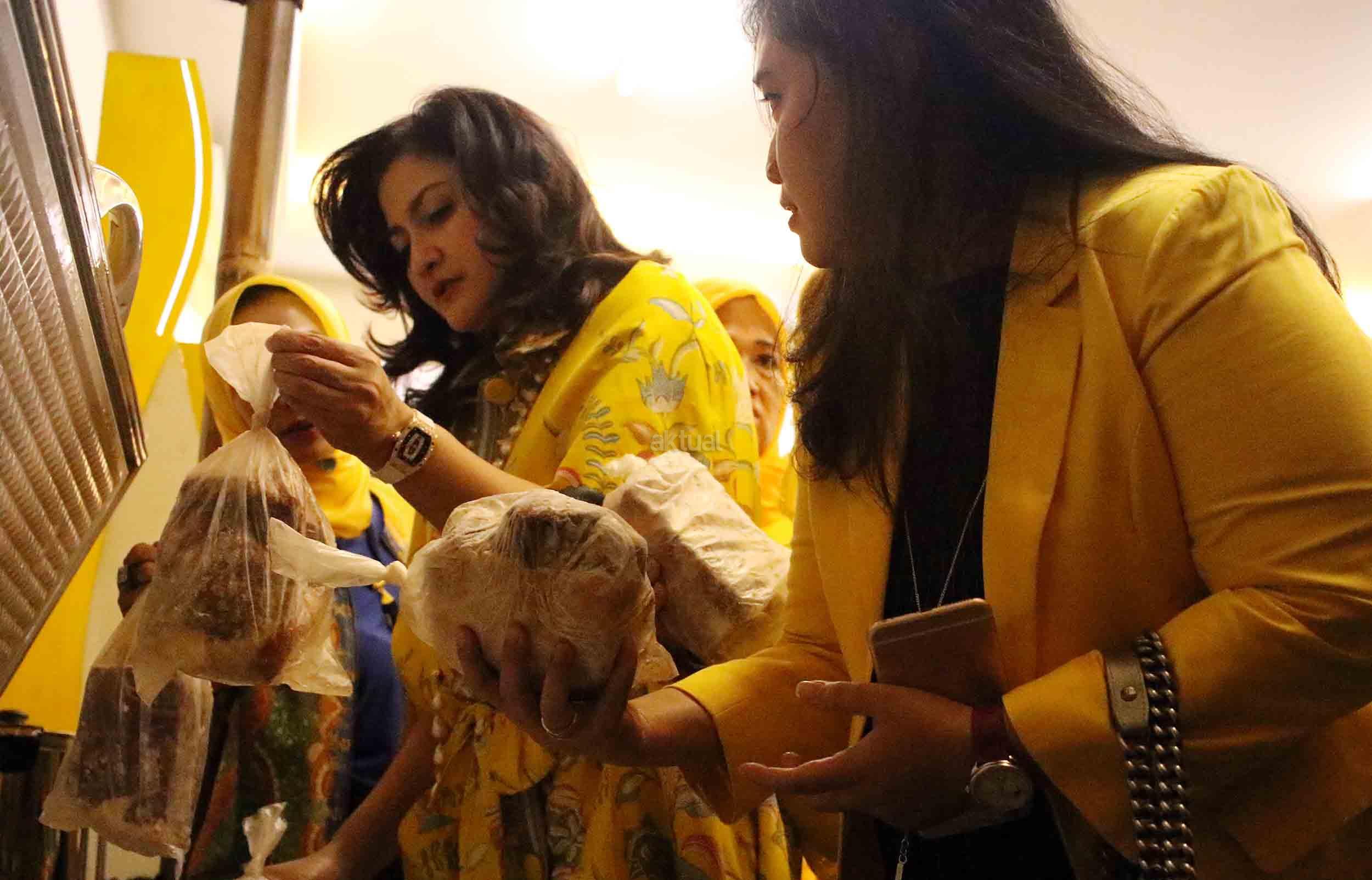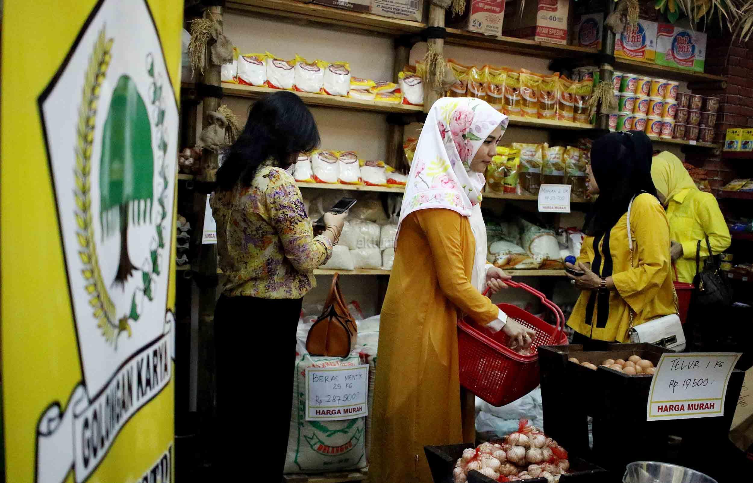 Ketua Umum Ikatan Istri Partai Golkar (IIPG) Deisti Astriani Novanto berbelanja sembako di warung Rumah Pangan Golkar (RPG) di kantor DPD I Partai Golkar DKI Jakarta, Kamis (6/10/2016). Rumah Pangan Golkar (RPG) ini salah satu program IIPG sebagai solusi sembako murah yg dekat dengan rakyat. Aktual/Munzir