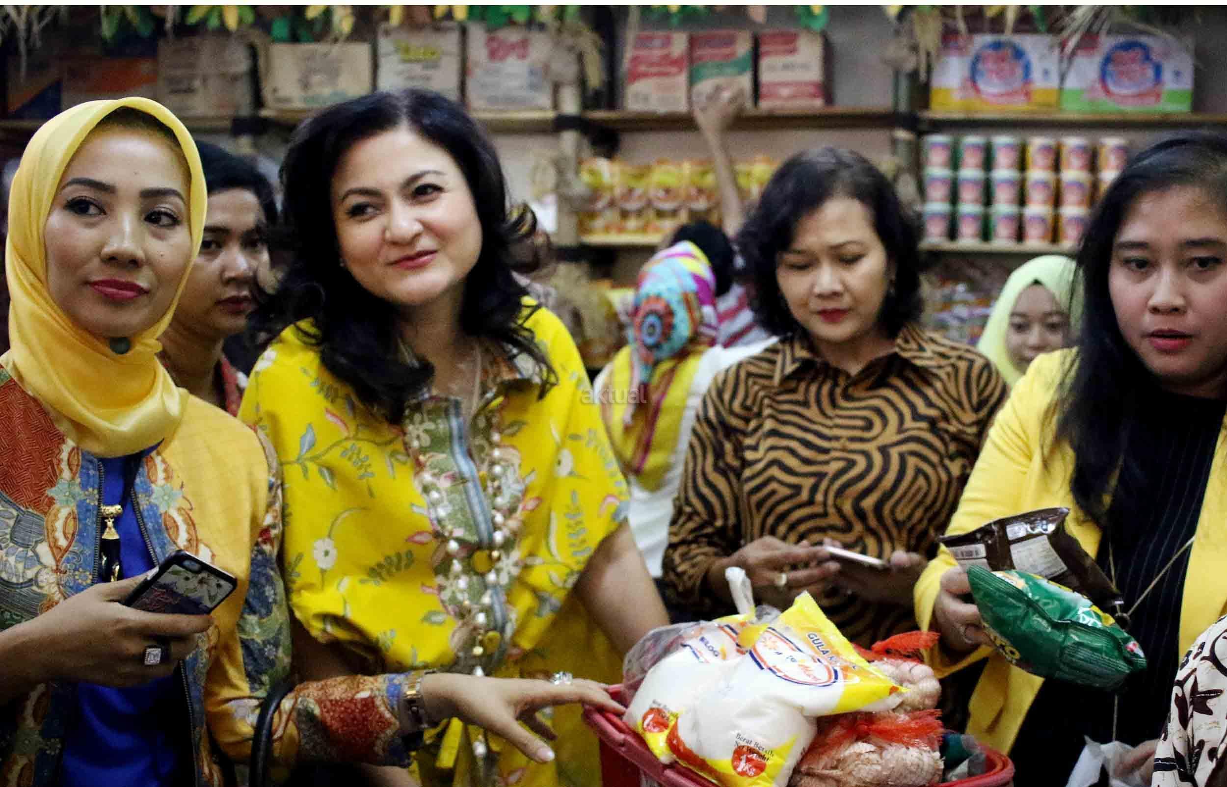 Ketua Umum Ikatan Istri Partai Golkar (IIPG) Deisti Astriani Novanto berbelanja sembako di warung Rumah Pangan Golkar (RPG) di kantor DPD I Partai Golkar DKI Jakarta, Kamis (6/10/2016). Rumah Pangan Golkar (RPG) ini salah satu program IIPG sebagai solusi sembako murah yg dekat dengan rakyat.