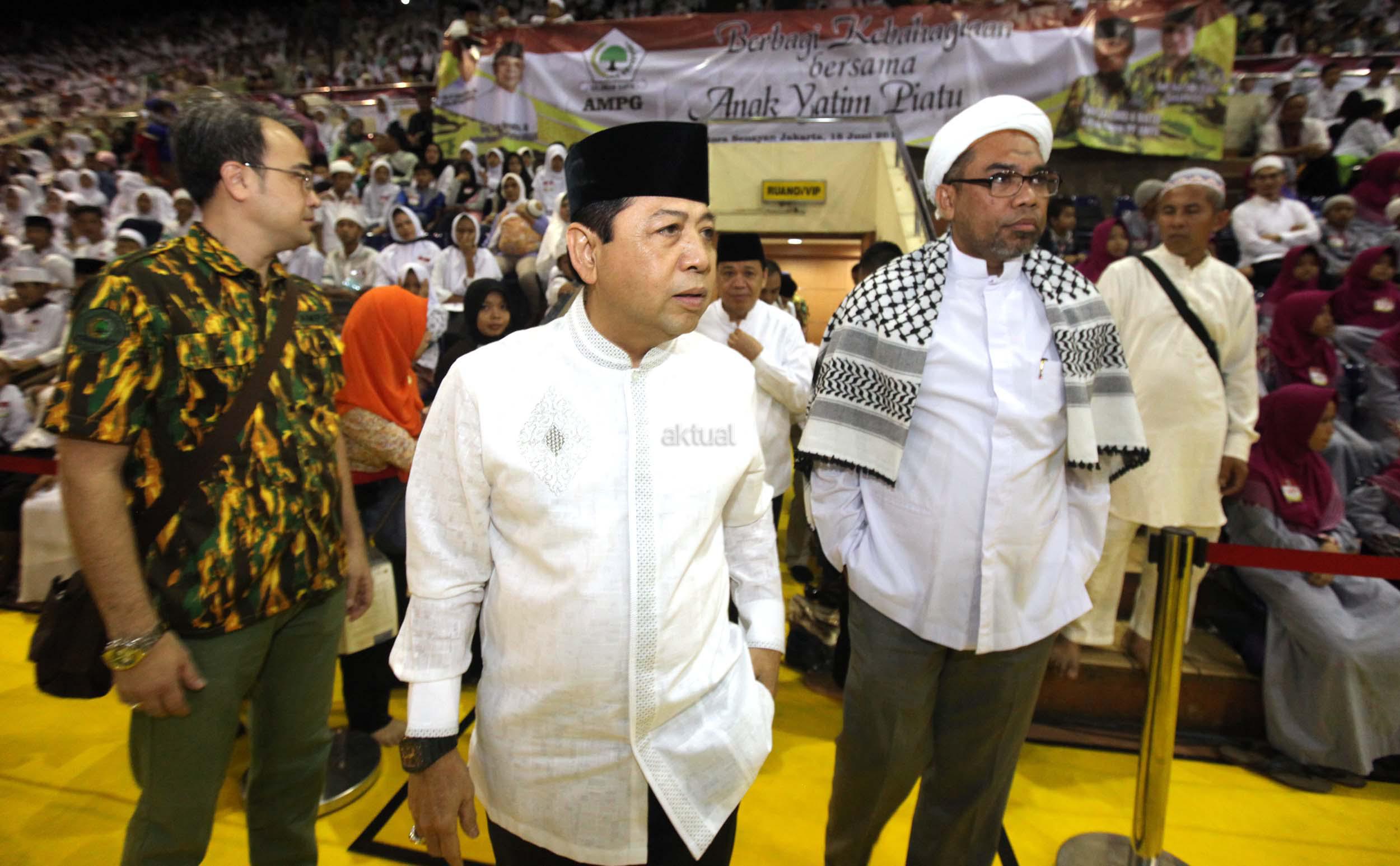 Ketua Umum Partai Golkar Setyanovanto menghadiri acara buka bersama Angkatan Muda Partai Golkar (AMPG) di Istora Senayan, Jakarta, Sabtu (18/6/2016). Acara buka bersama Angkatan Muda Partai Golkar yang dihadiri 26000 anak Yatim Piatu dan kamum Dhuafa.