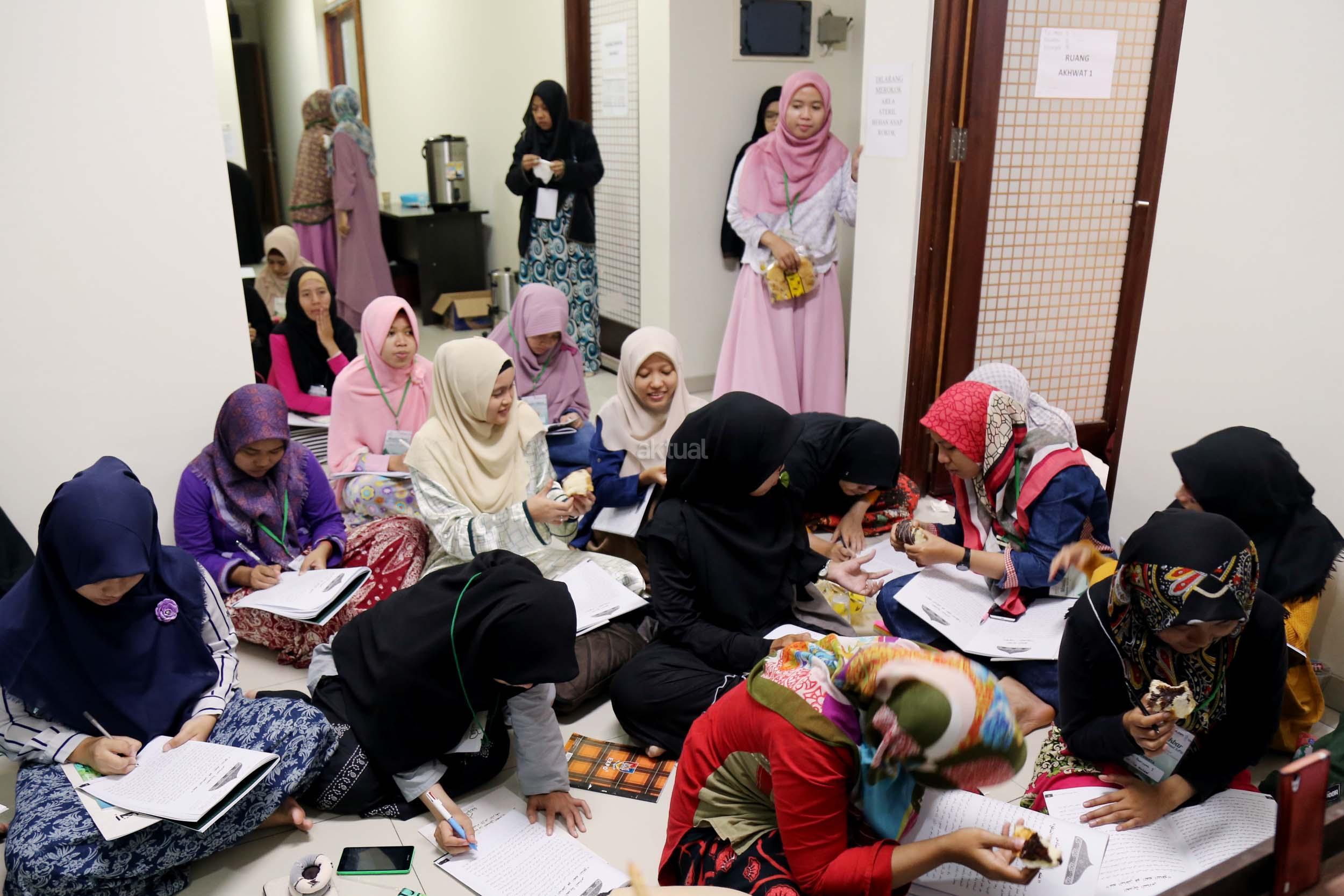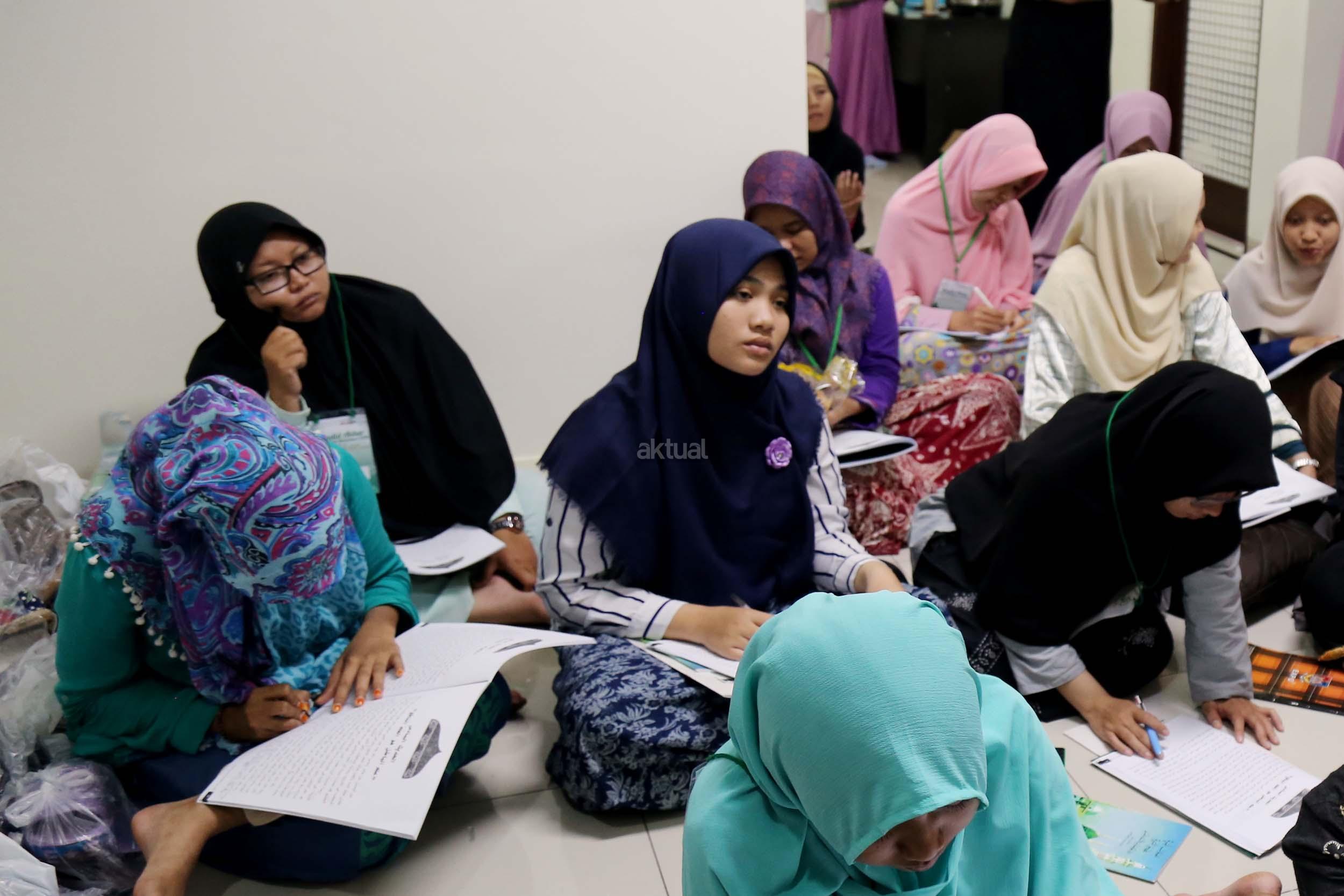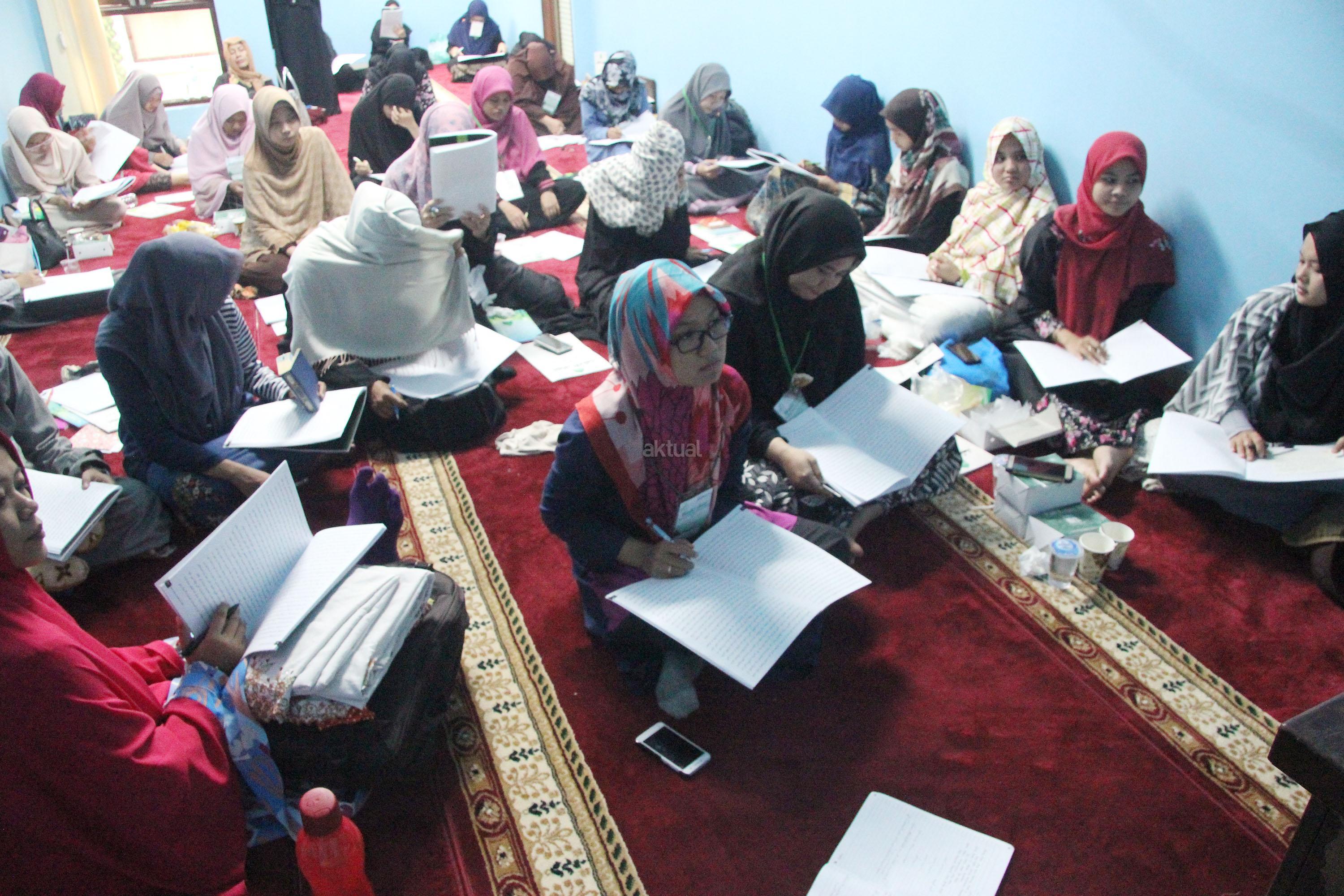 Peserta akhwat mengikuti Talaqi Kitab It’haf bersama Maulana Syekh Yusri Rusydi dalam menyambut Maulid Akbar Baginda Nabi Muhammad SAW di Majelis Zawiyah Arraudah, Tebet, Jakarta Selatan, Sabtu (28/1/2017). Didalam pembacaan kitab amin al-I'lam bi anna attasawwuf min syariat al-islam Syekh Yusri menjelaskan ihwal sufi atau orang yang mendalami tasawwuf. AKTUAL/Nailin