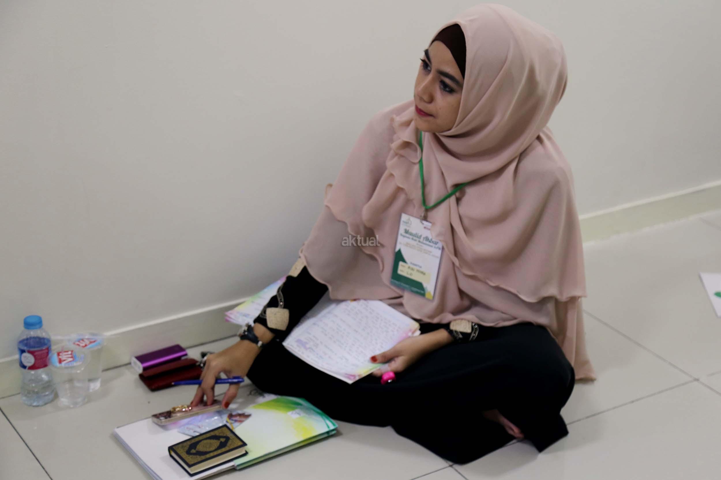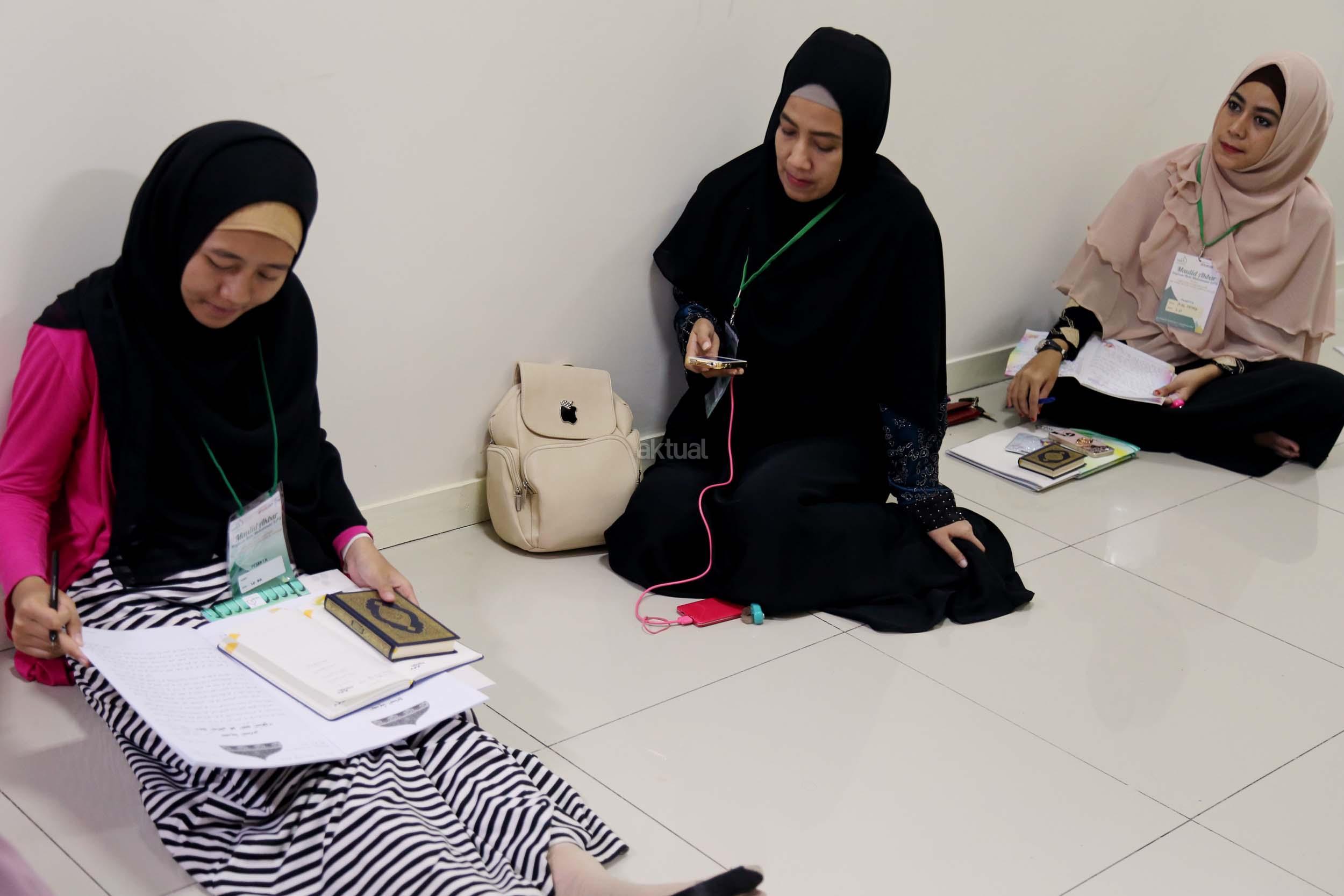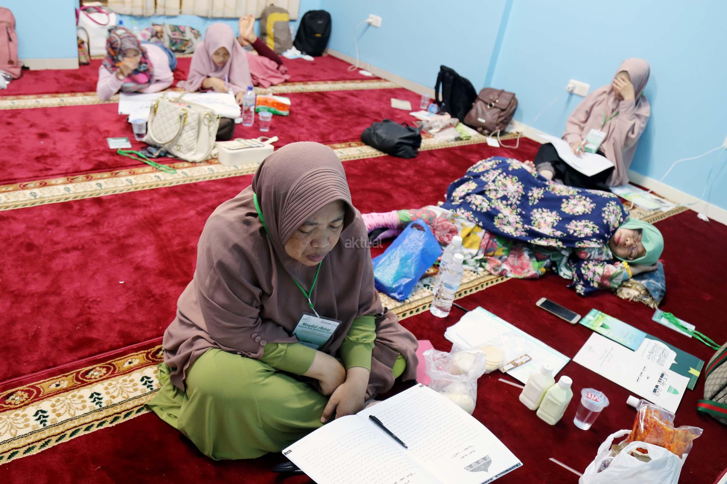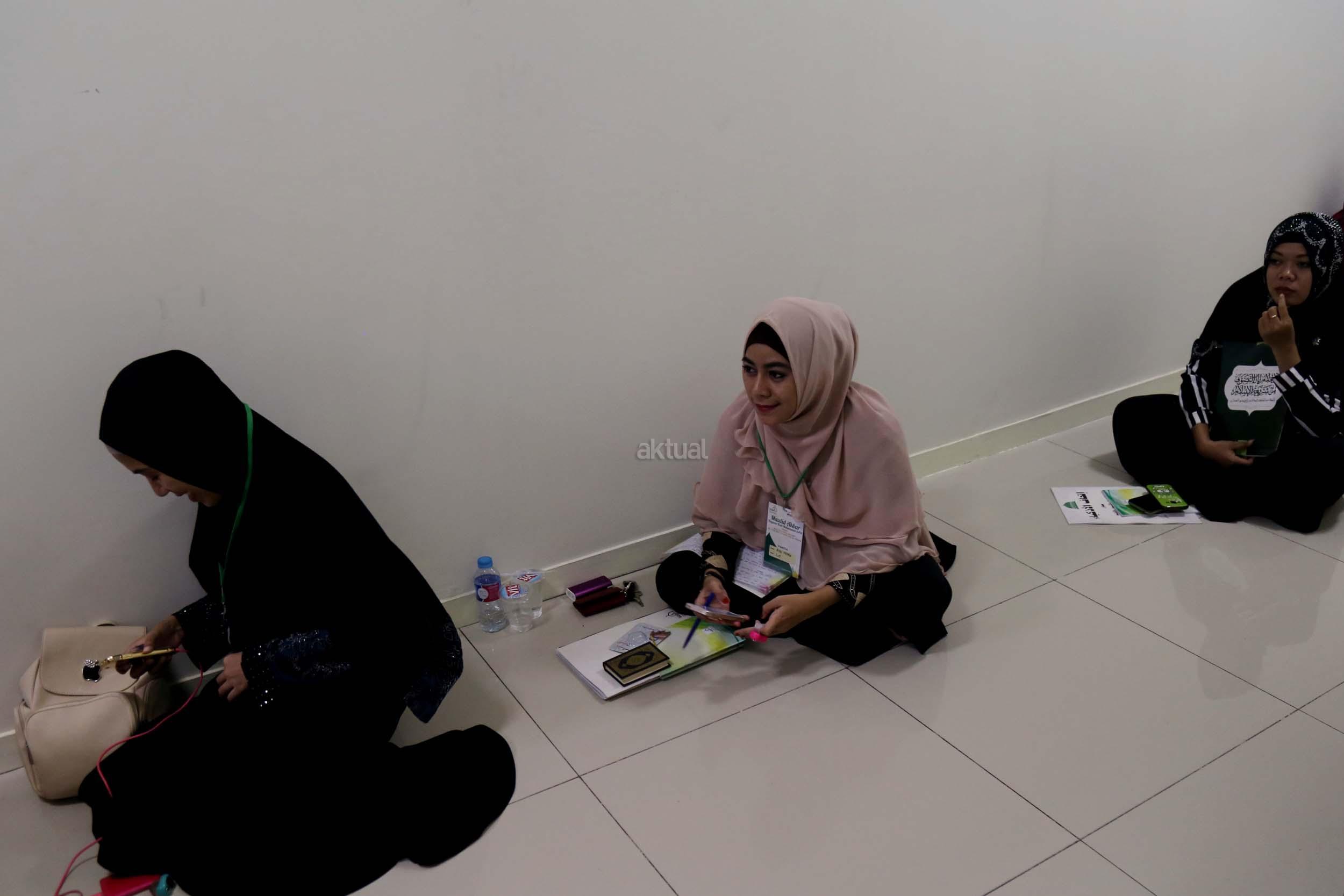 Peserta akhwat mengikuti Talaqi Kitab It’haf bersama Maulana Syekh Yusri Rusydi dalam menyambut Maulid Akbar Baginda Nabi Muhammad SAW di Majelis Zawiyah Arraudah, Tebet, Jakarta Selatan, Sabtu (28/1/2017). Didalam pembacaan kitab amin al-I'lam bi anna attasawwuf min syariat al-islam Syekh Yusri menjelaskan ihwal sufi atau orang yang mendalami tasawwuf. AKTUAL/Nailin