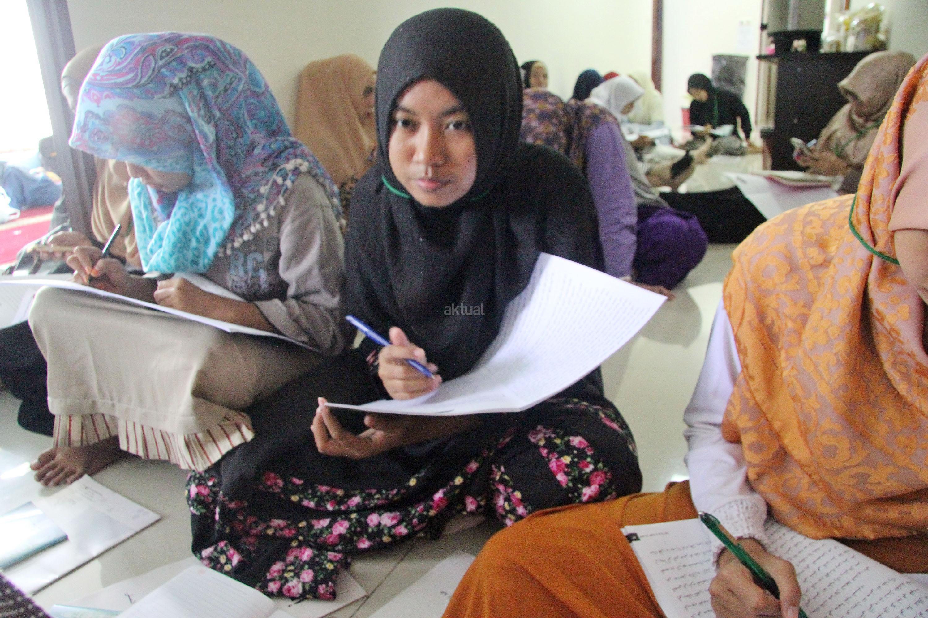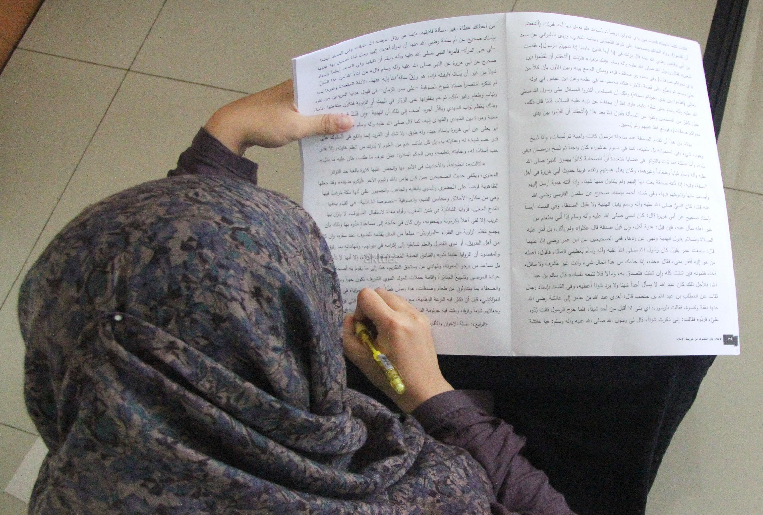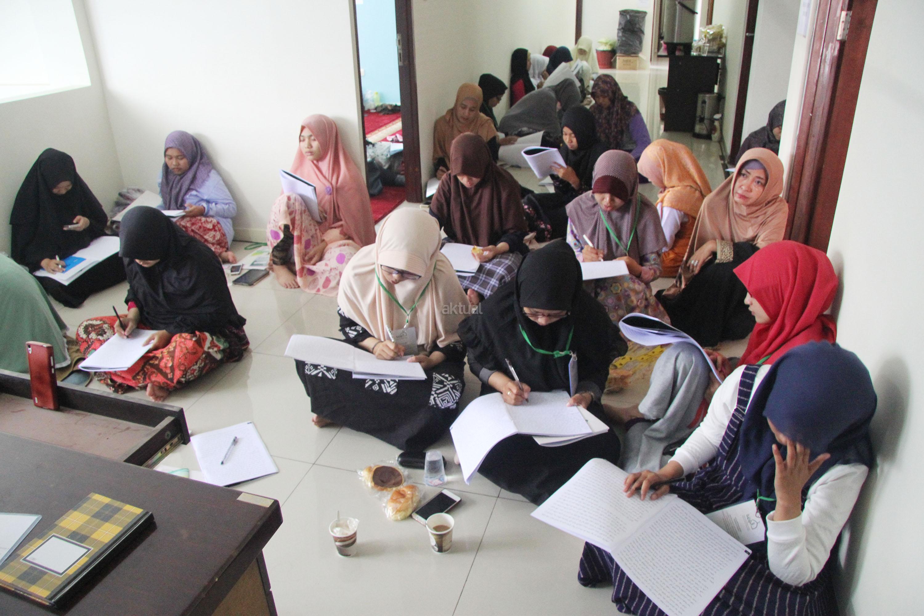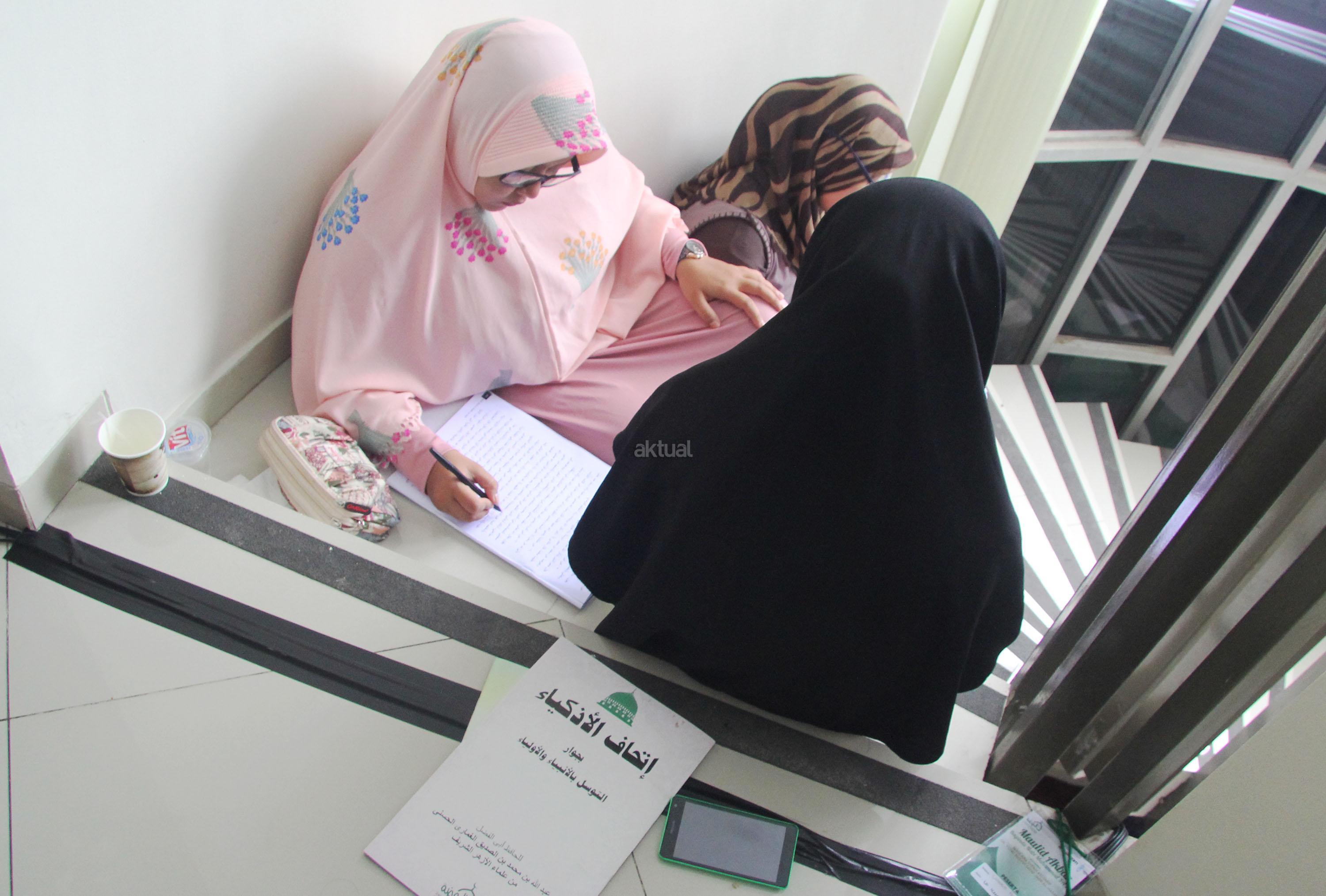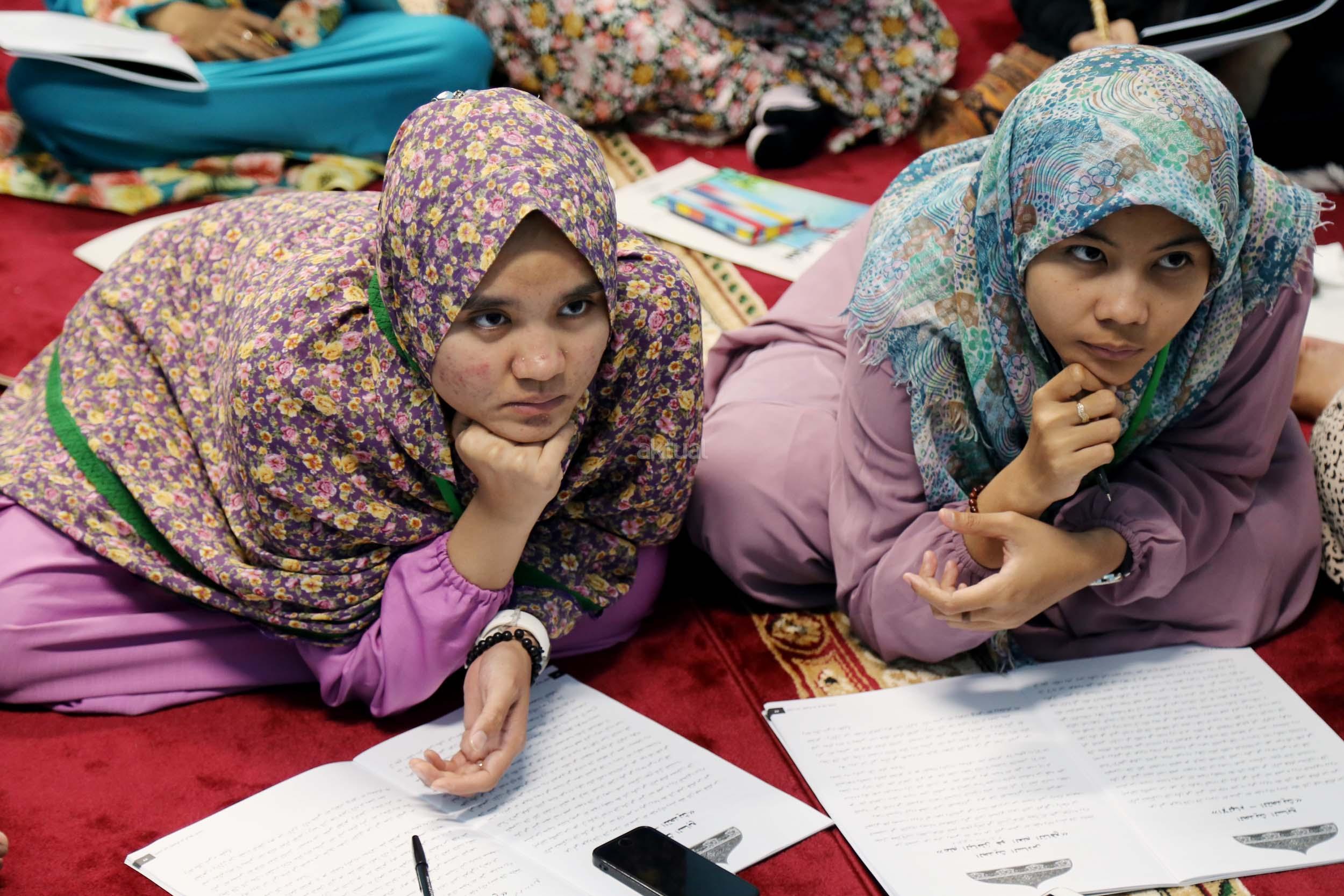 Peserta akhwat mengikuti Talaqi Kitab It’haf bersama Maulana Syekh Yusri Rusydi dalam menyambut Maulid Akbar Baginda Nabi Muhammad SAW di Majelis Zawiyah Arraudah, Tebet, Jakarta Selatan, Sabtu (28/1/2017). Didalam pembacaan kitab amin al-I’lam bi anna attasawwuf min syariat al-islam Syekh Yusri menjelaskan ihwal sufi atau orang yang mendalami tasawwuf. AKTUAL/Nailin