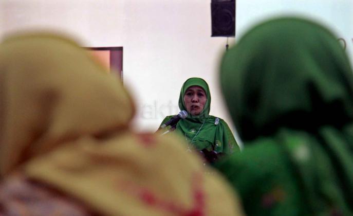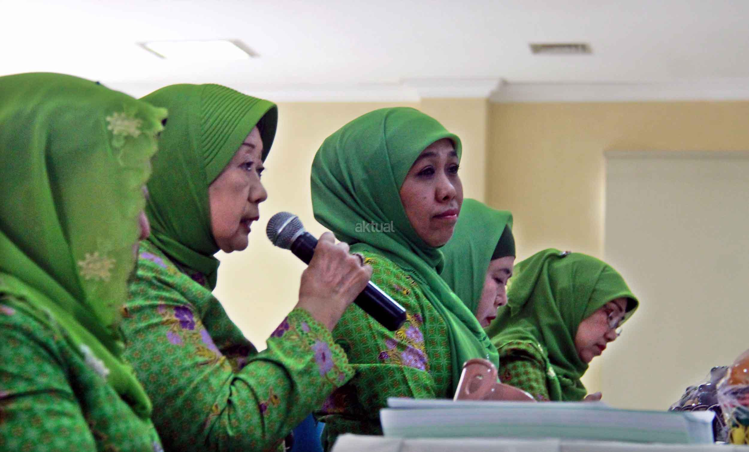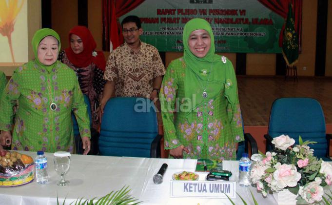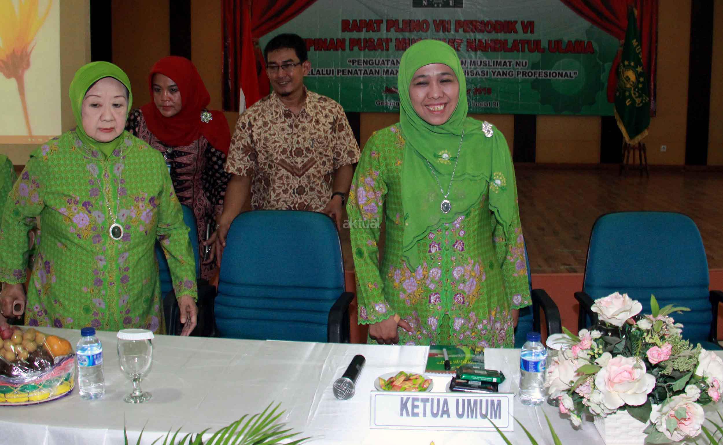 Ketua Umum Muslimat NU Khofifa Indar Parawangsa (tengah )mengahadiri rapat pleno Muslimat NU 2015, di Pusdiklat Kesejahteraan Sosial, Margaguna, Jakarta Selatan, Minggu (27/9/2015). Dalam rapat pleno Muslimat NU 2015 yang dihadiri empat Pengurus Wilayah Muslimat NU (Jawa Timur, Jawa Tengah, Jawa Barat dan DKI Jakarta).