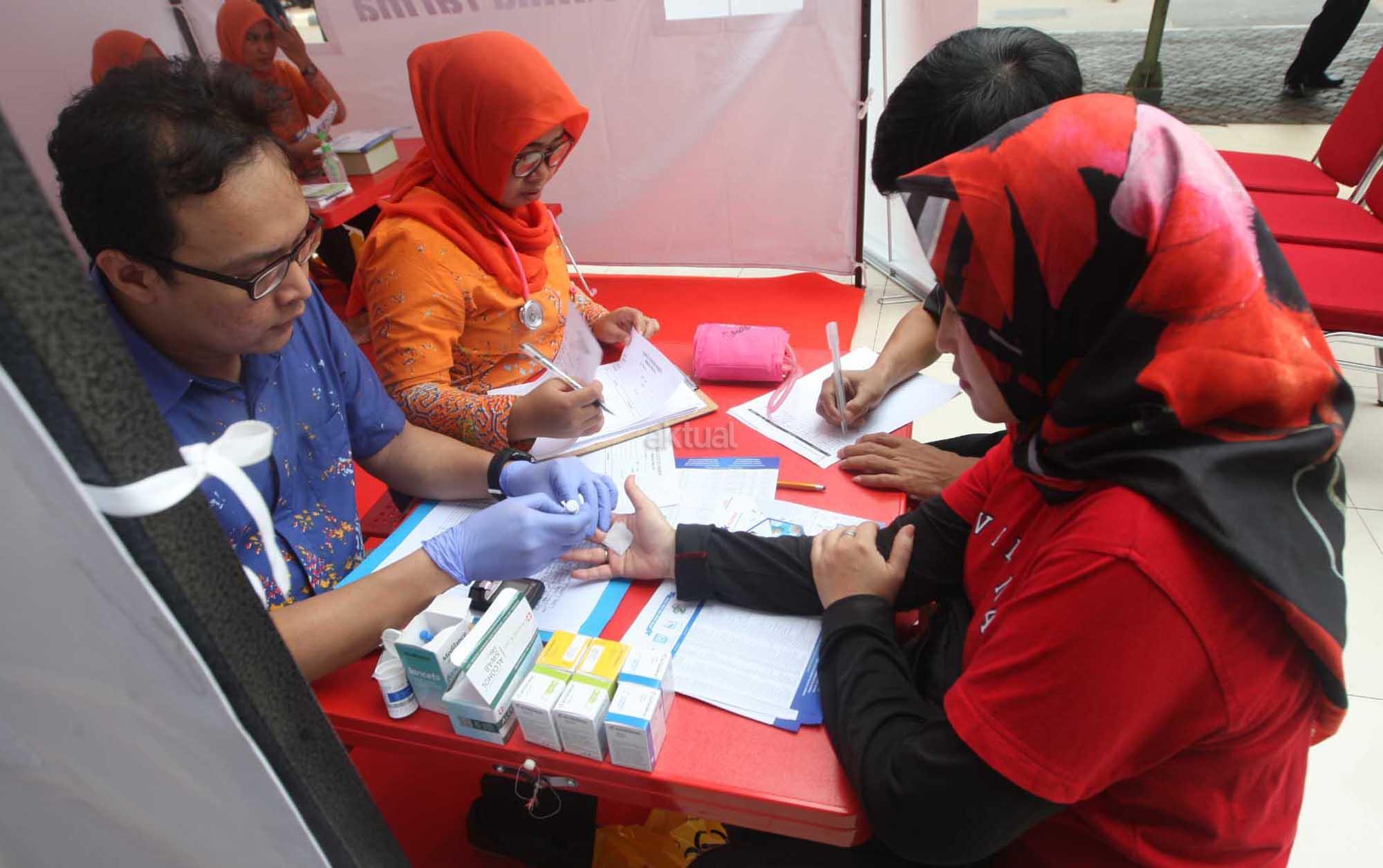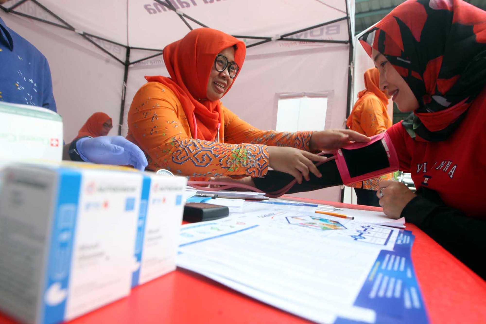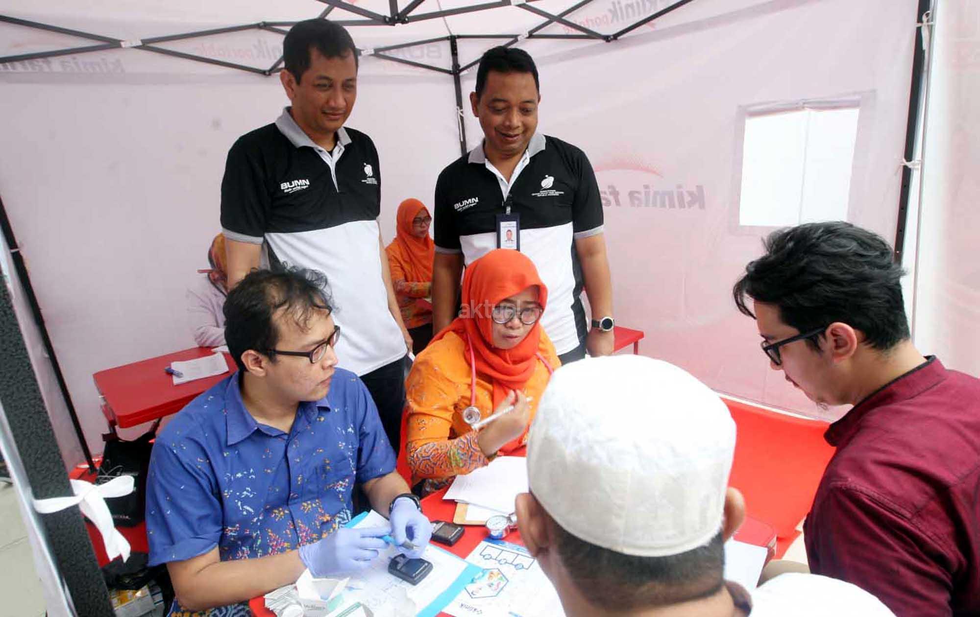 Suasana pengunjung dan pemudik yang mengunakan fasilitas posko kesehatan mudik Kimia Farma di Stasiun Gambir, Jakarta, Jumat (8/6/2018). Selain mengadakan program mudik bersama, Kimia Farma turut memperhatikan aspek kesehatan bagi para pemudik dengan mendirikan Posko Kesehatan Mudik Kimia Farma yang dilalui pemudik, di pulau Jawa dan Sumatera. Adapun pelayanan dan pemeriksaan gratis yang bisa dilakukan di Posko Kesehatan Mudik Kimia Farma berupa pengobatan, cek kolesterol, asam urat, gula darah, dan tekanan darah. AKTUAL/Eko S Hilman