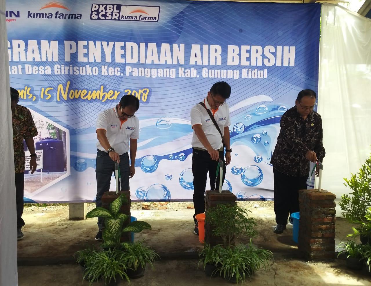 PT Kimia Farma (Persero) Tbk memberikan bantuan penyediaan sarana air bersih di Dusun Gebang, Desa Girisuko, Kecamatan Panggang, Gunungkidul, Yogyakarta, Senin (19/11/2018). Mengingat fungsi yang paling utama dari penyediaan air bersih adalah untuk menjaga kelangsungan hidup. Melalui program ini, Kimia Farma tidak hanya berusaha memenuhi kebutuhan masyarakat terhadap air, tetapi menyediakan air yang bersih untuk kesehatan masyarakat. AKTUAL/Dok Kimia Farma