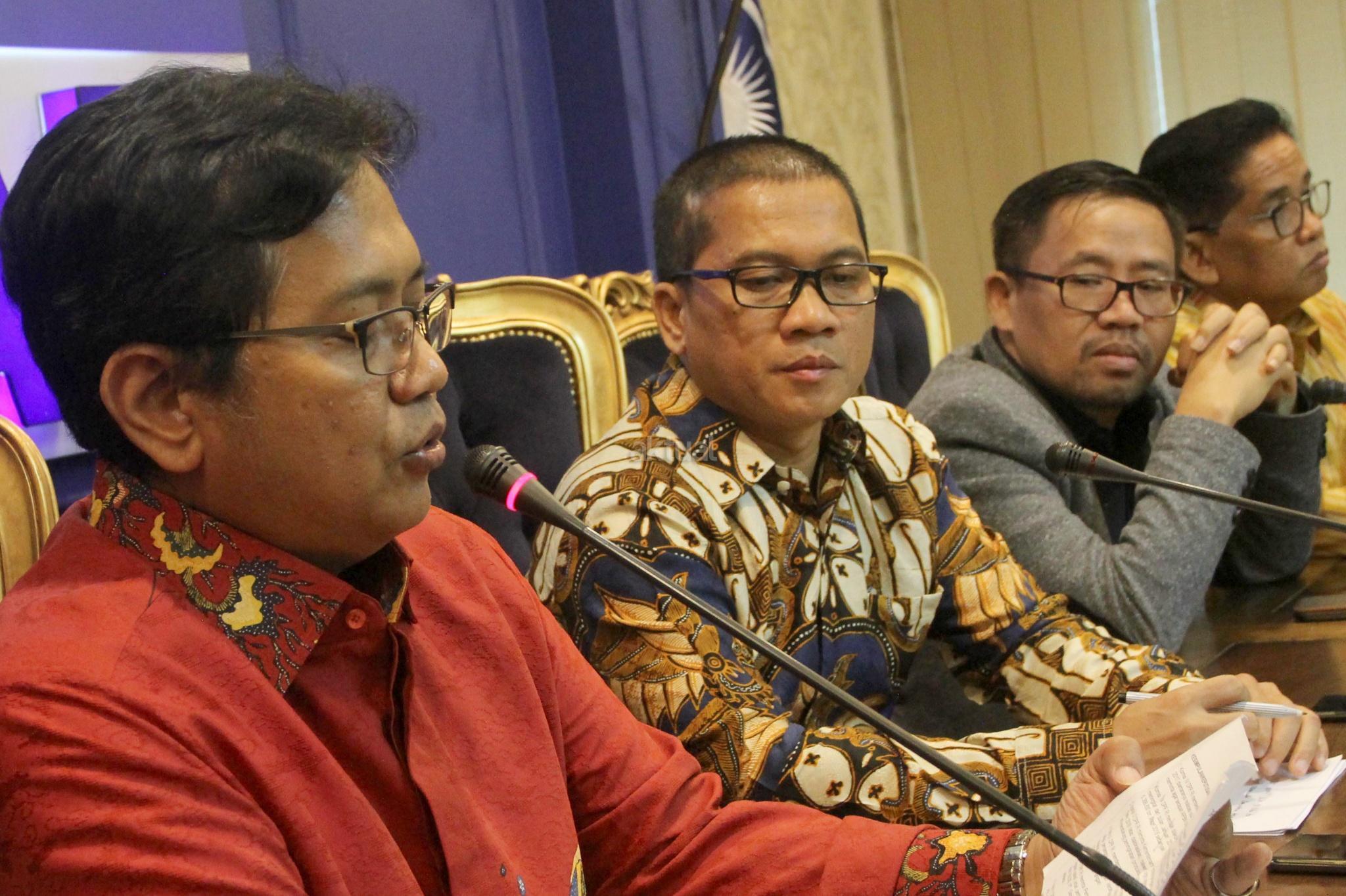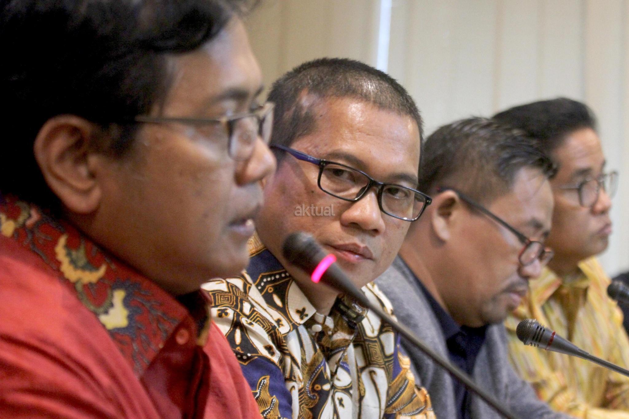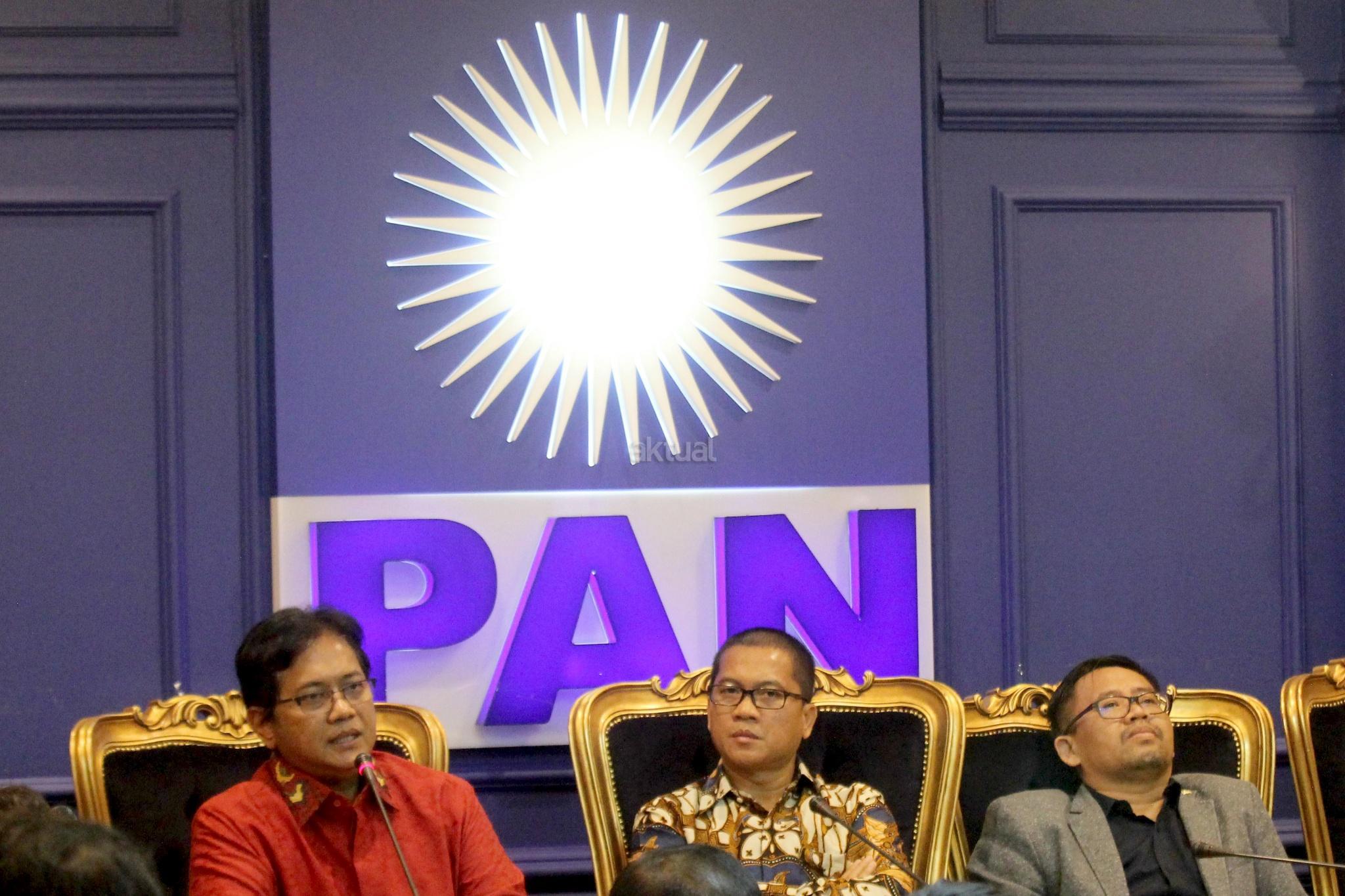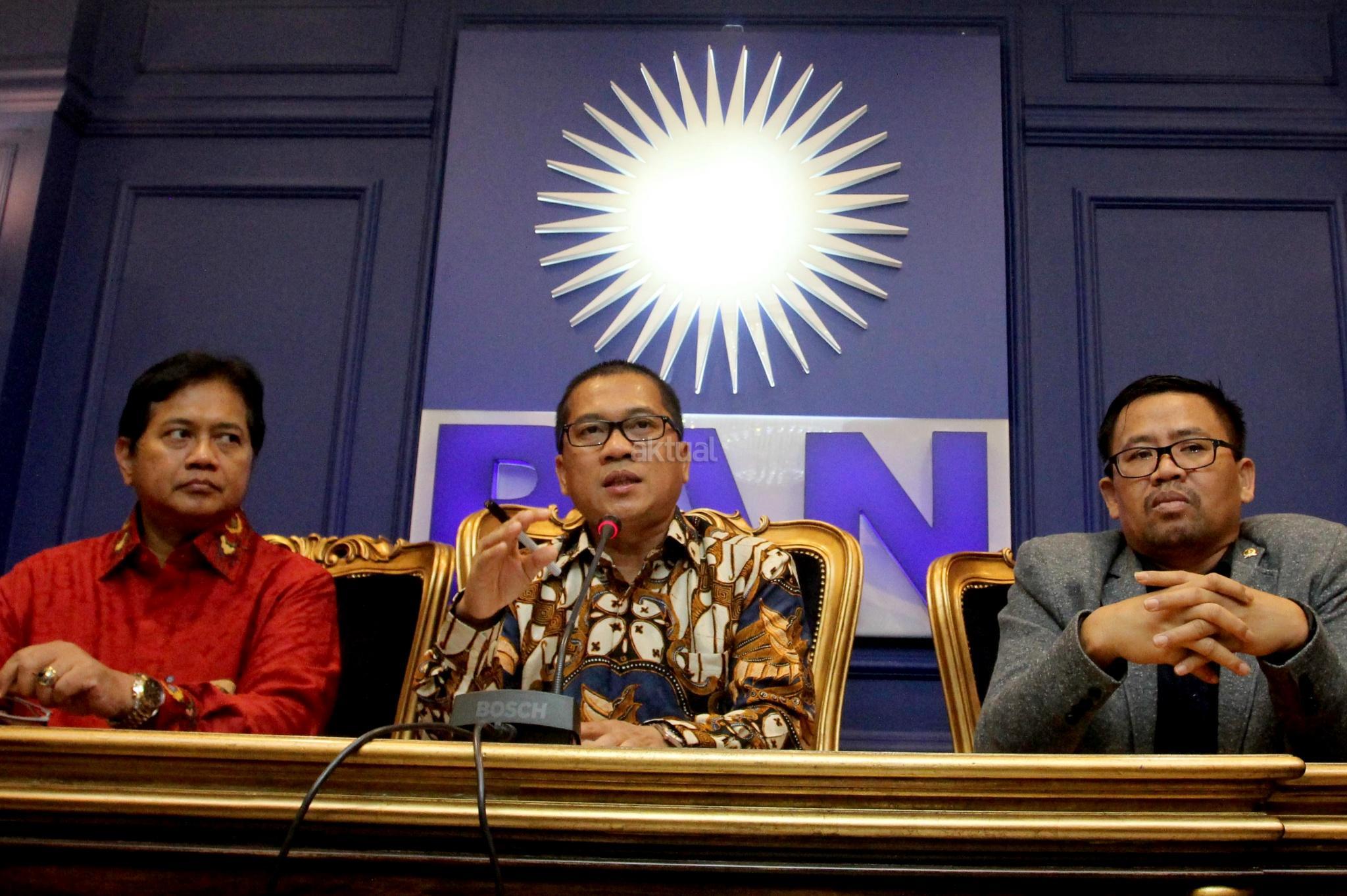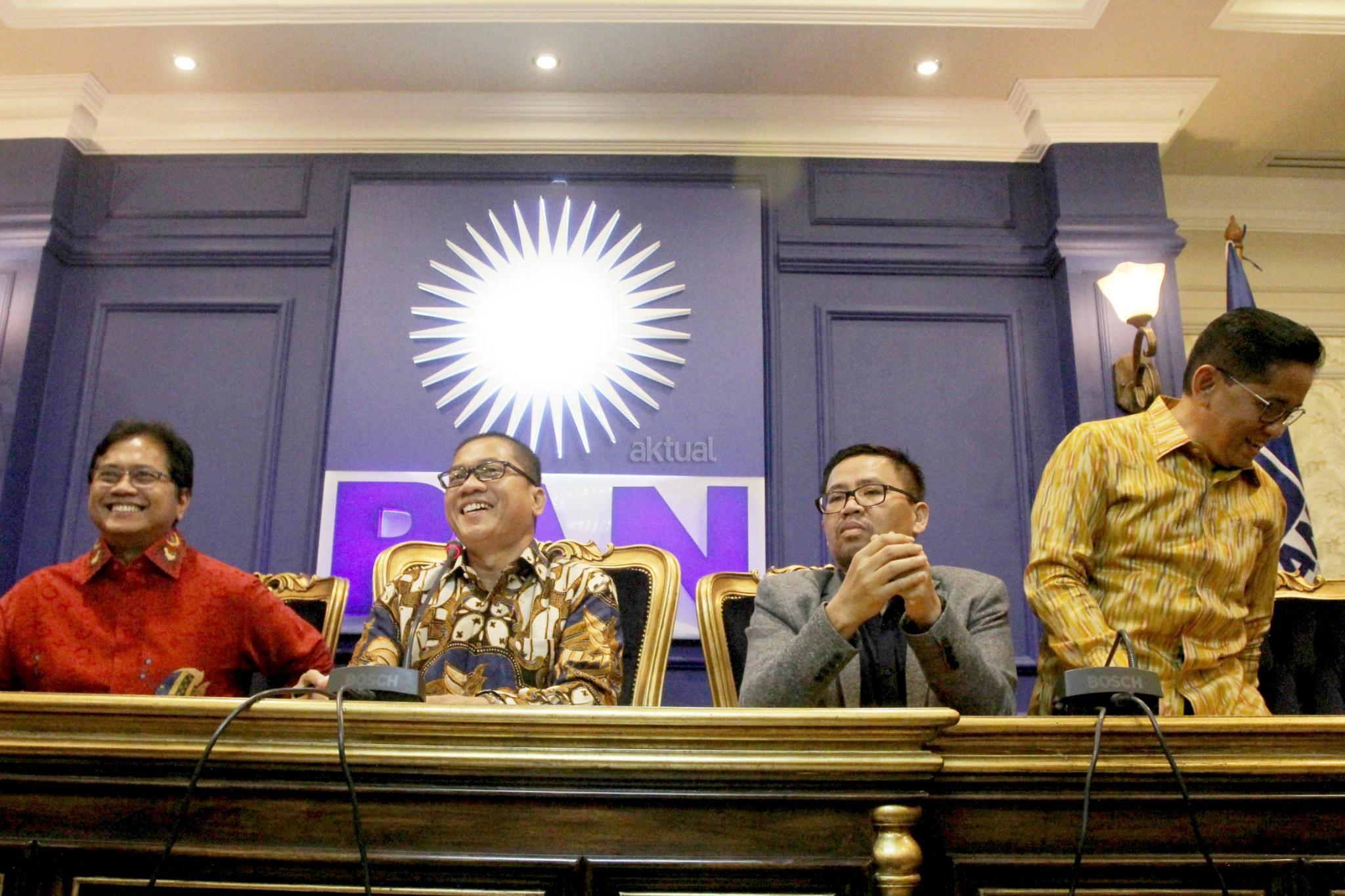 Dari kiri ke kanan, Anggota Komisi IV Fraksi PAN Viva Yoga Mauladi, Sekretaris Fraksi PAN Yandri Susanto, Anggota Komisi III DPR Fraksi PAN Daeng Muhammad dan Anggota Komisi V Fraksi PAN Bakrie HM, memberikan keterangan kepada wartawn , di ruang Fraksi PAN DPR, Gedung Nusantara I, Kompleks Parlemen Senayan, Jakarta, Senin (22/1). PAN menanggapi sejumlah isue yang berkembang diantarannya, pernyataan Ketua Umum DPP PAN yang juga Ketua MPR Zulkifli Hasan terkait penolakan PAN atas Lesbian Gay Biseks Transgender (LGBT), maraknya perdagangan Miras, serta kebijakan Pemerintah terkait Impor Beras, Garam dan Daging. AKTUAL/Tino Oktaviano