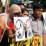 Sejumlah aktivis dari berbagai Lembaga Swadaya Masyarakat (LSM) melakukan aksi dukungan untuk Komisi Pemberantasan Korupsi (KPK) di gedung KPK, Kuningan, Jakarta Selatan, Selasa (11/4/2017). Mereka memberikan dukungan kepada KPK dan juga meminta Presiden Jokowi turun tangan langsung dengan cara membentuk tim khusus untuk mengusut kasus penyiraman air keras terhadap penyidik senior KPK Novel Baswedan. AKTUAL/Munzir