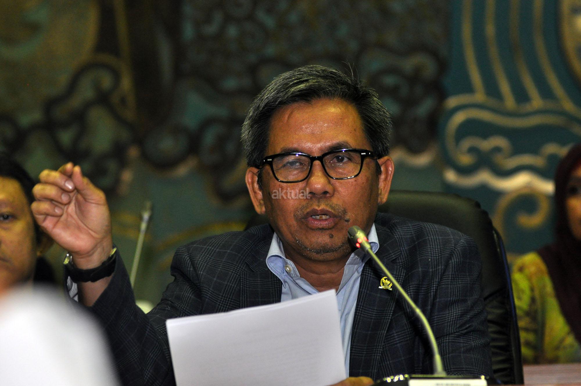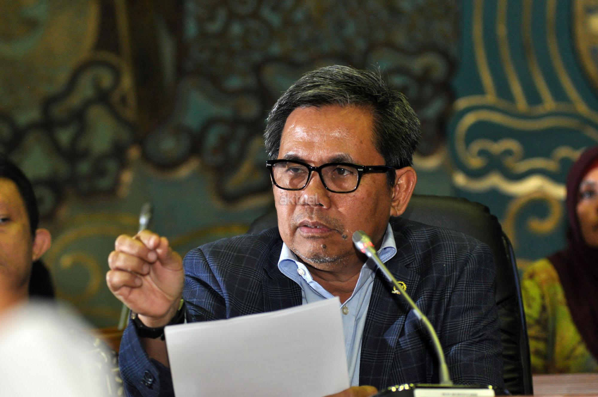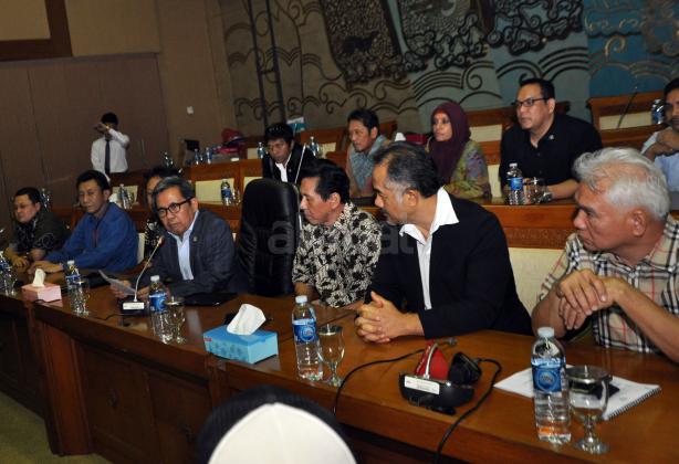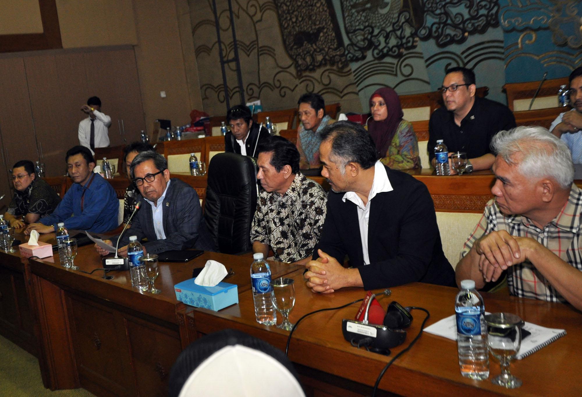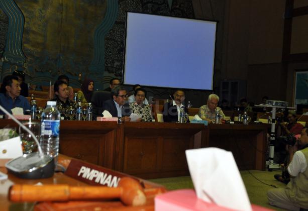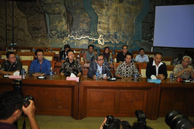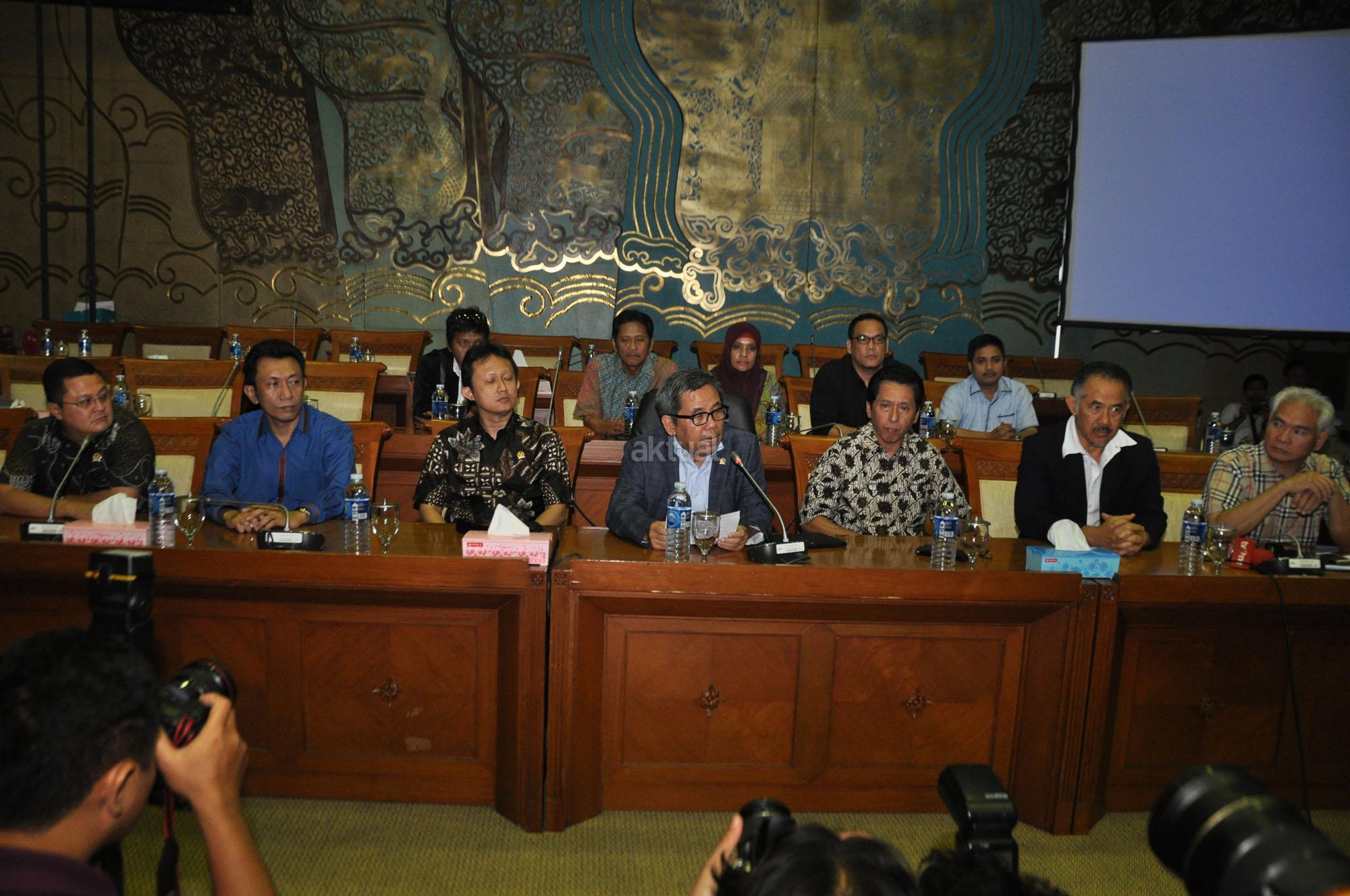 Ketua Komisi VII DPR RI, Kardaya Warnika (tengah) bersama beberapa anggota Komisi VII memberikan keterangan kepada sejumlah awak media di Komisi VII, Gedung DPR RI, Senayan, Jakarta, Selasa (27/10/2015). dalam keterangnannya, Komisi VII tidak setuju dengan perpanjangan PT Freeport Indonesia. Komisi VII meminta kepada pemerintah untuk mencabut perpanjanagan Freeport dan akan memangil Menteri ESDM Sidirman Said dan Direktur Freeport ke DPR.