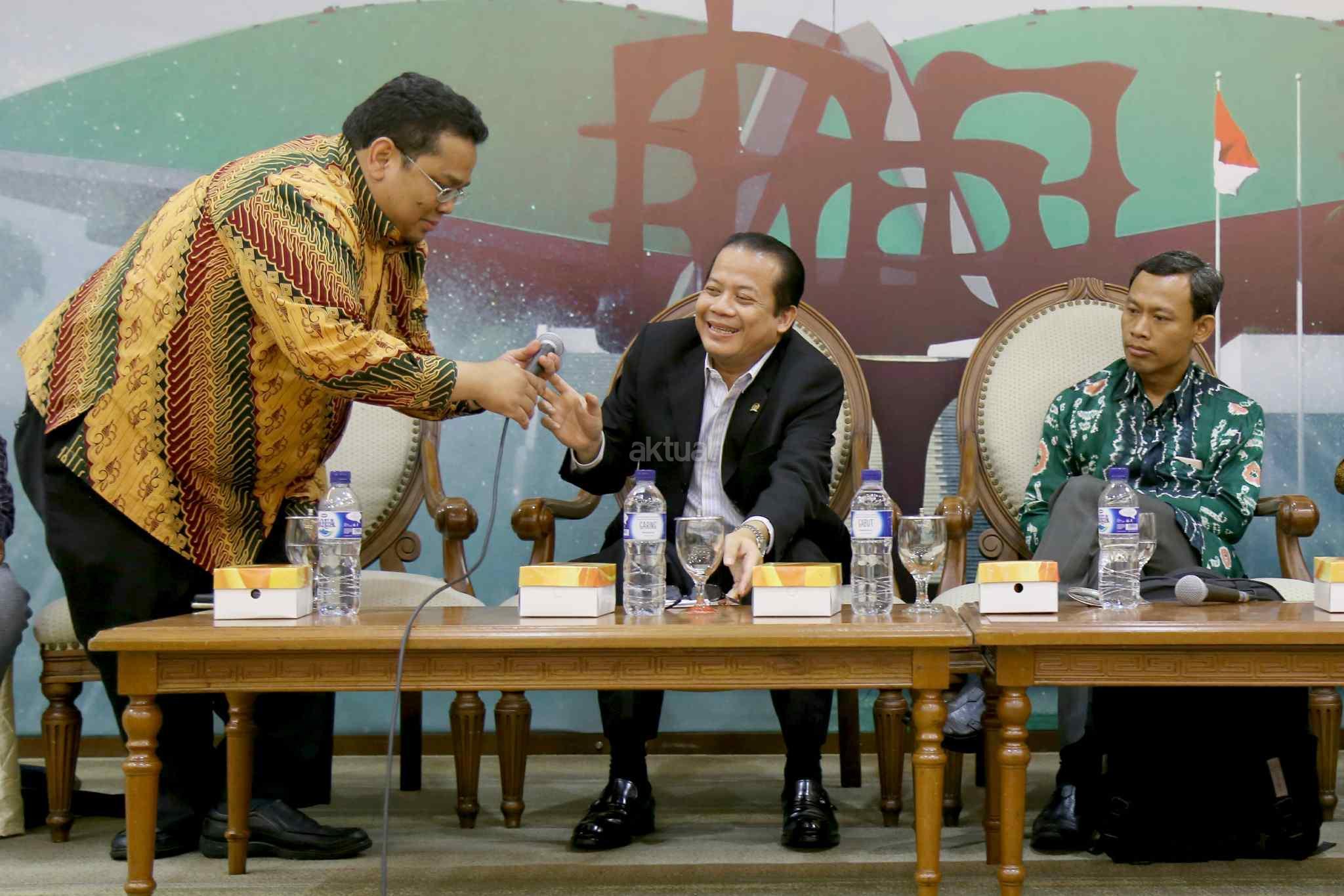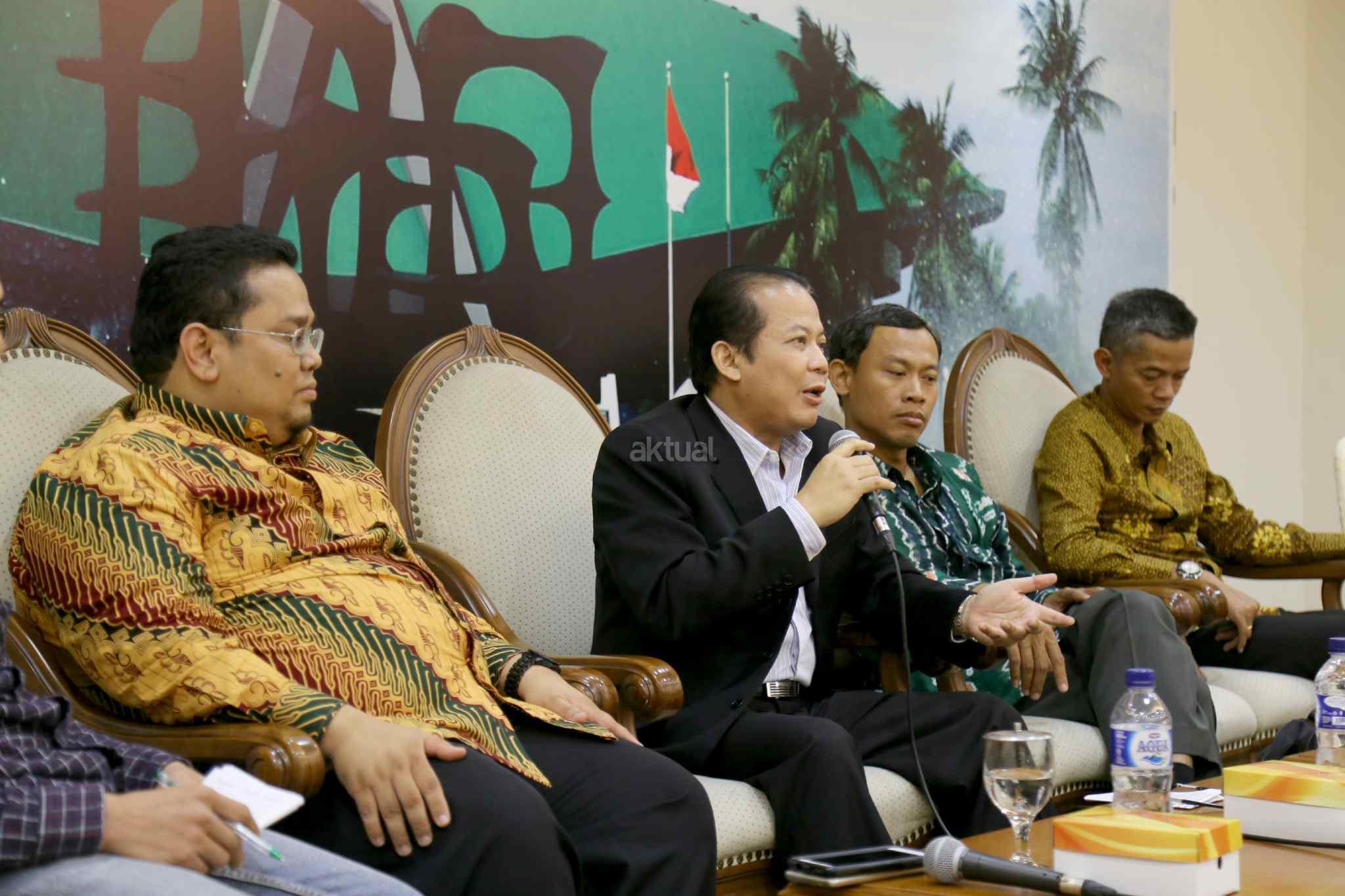Komisioner Bawaslu Terpilih Rahmat Bagja, Wakil Ketua DPR Taufik Kurniawan saat diskusi dialektika dengan tema “Komisioner Baru, Tantangan Baru” di press room DPR, Senayan, Jakarta, Kamis (6/4). Sejumlah tantangan menanti untuk diselesaikan para komisioner baru Komisi Pemilihan Umum dan Badan Pengawasan Pemilu. Seperti data kependudukan yang sebelumnya sempat menjadi persoalan dalam penyelenggaraan Pemilihan Kepala Daerah diselesaikan harus diselesaikan. AKTUAL/Tino Oktaviano