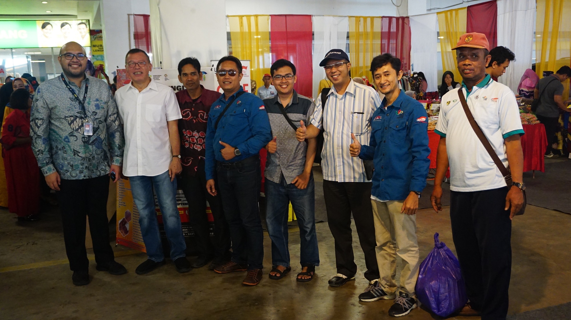Ketua Pengurus Yayasan Dharma Bhakti Astra (YDBA) Henry C. Widjaja (kedua kiri), General Manager Corporate Affairs Giant Tony Mampuk (kiri) dan Tim Lembaga Pengembangan Bisnis (LPB) YDBA di Tapin, Kalimantan Selatan beserta UMKM binaannya usai berkunjung ke area pameran di acara Penandatanganan piagam kerjasama YDBA dan Giant di Giant Ekstra Kertak Hanyar, Banjarmasin, Kalimantan Selatan, Selasa (7/8). Penandatangan piagam kerjasama ini sebagai komitmen YDBA bersama Giant untuk melakukan pembinaan kepada UMKM Mitra YDBA di Kalimantan Selatan dengan tujuan untuk meningkatkan potensi dan mengembangkan pasar UMKM. AKTUAL/Pool