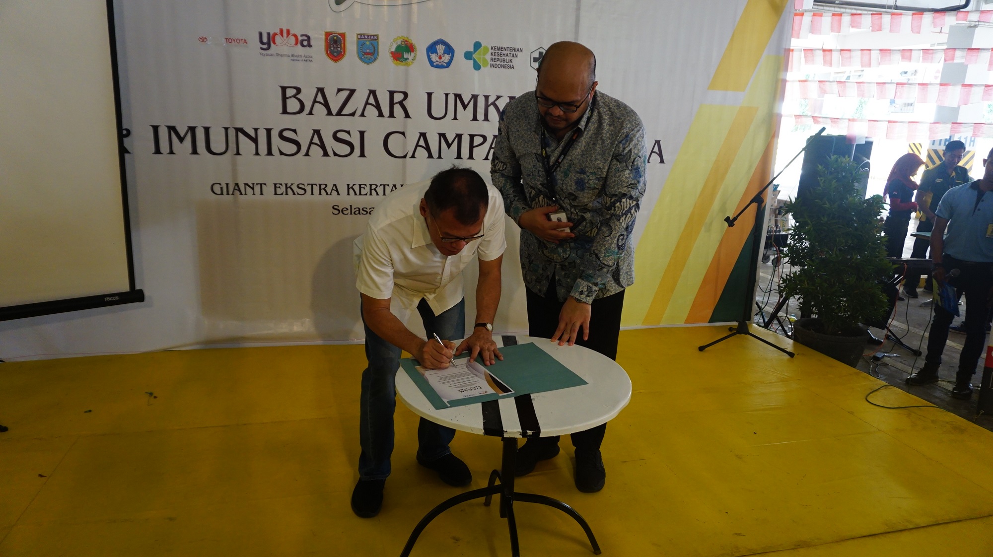 Ketua Pengurus Yayasan Dharma Bhakti Astra (YDBA) Henry C. Widjaja (kiri) menandatangani piagam kerjasama antara YDBA dan Giant di Giant Ekstra Kertak Hanyar, Banjarmasin, Kalimantan Selatan, Selasa (7/8). Kerjasama ini adalah komitmen YDBA bersama Giant untuk melakukan pembinaan kepada UMKM Mitra YDBA di Kalimantan Selatan dengan tujuan untuk meningkatkan potensi dan mengembangkan pasar UMKM. AKTUAL/Pool