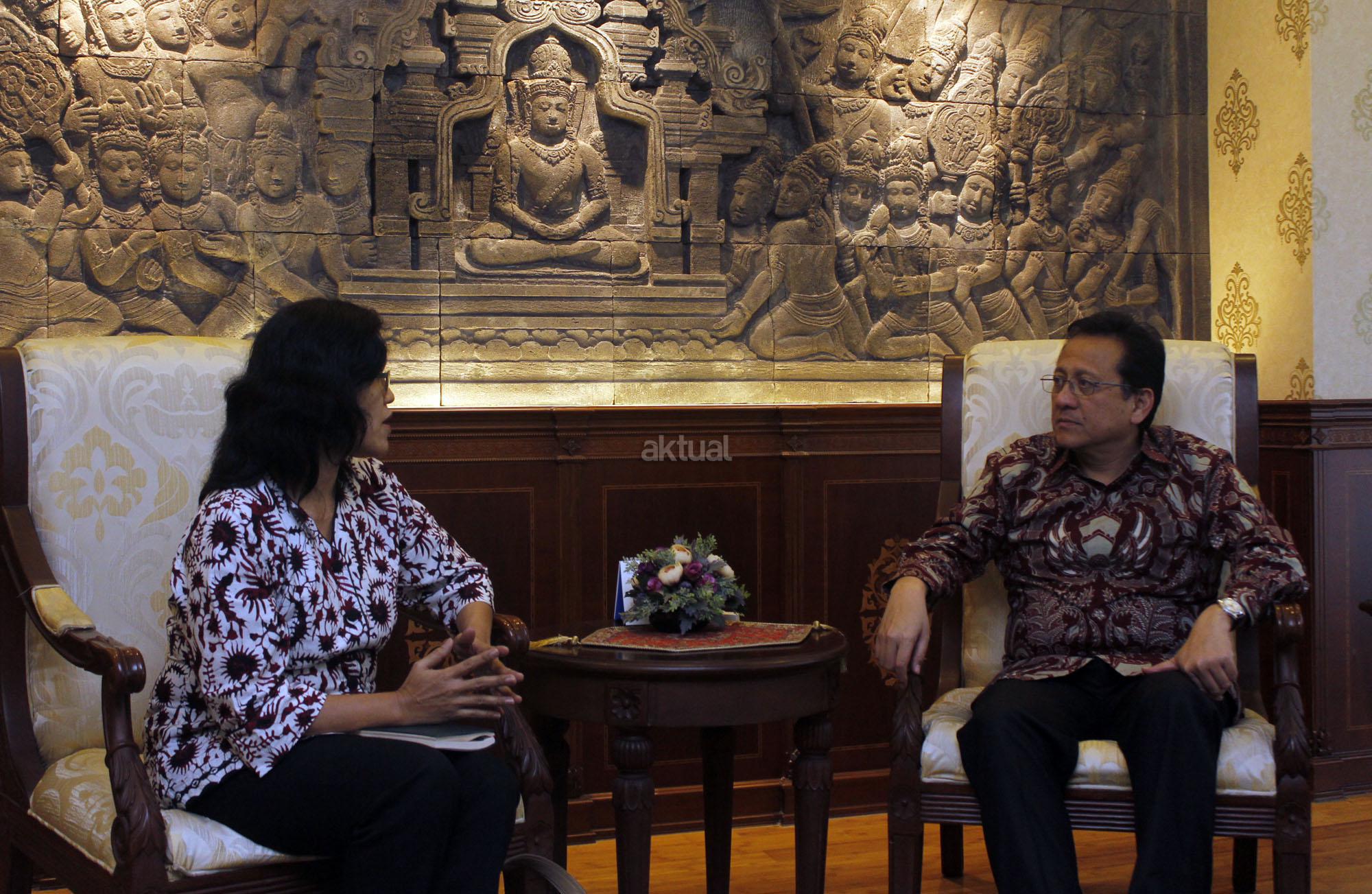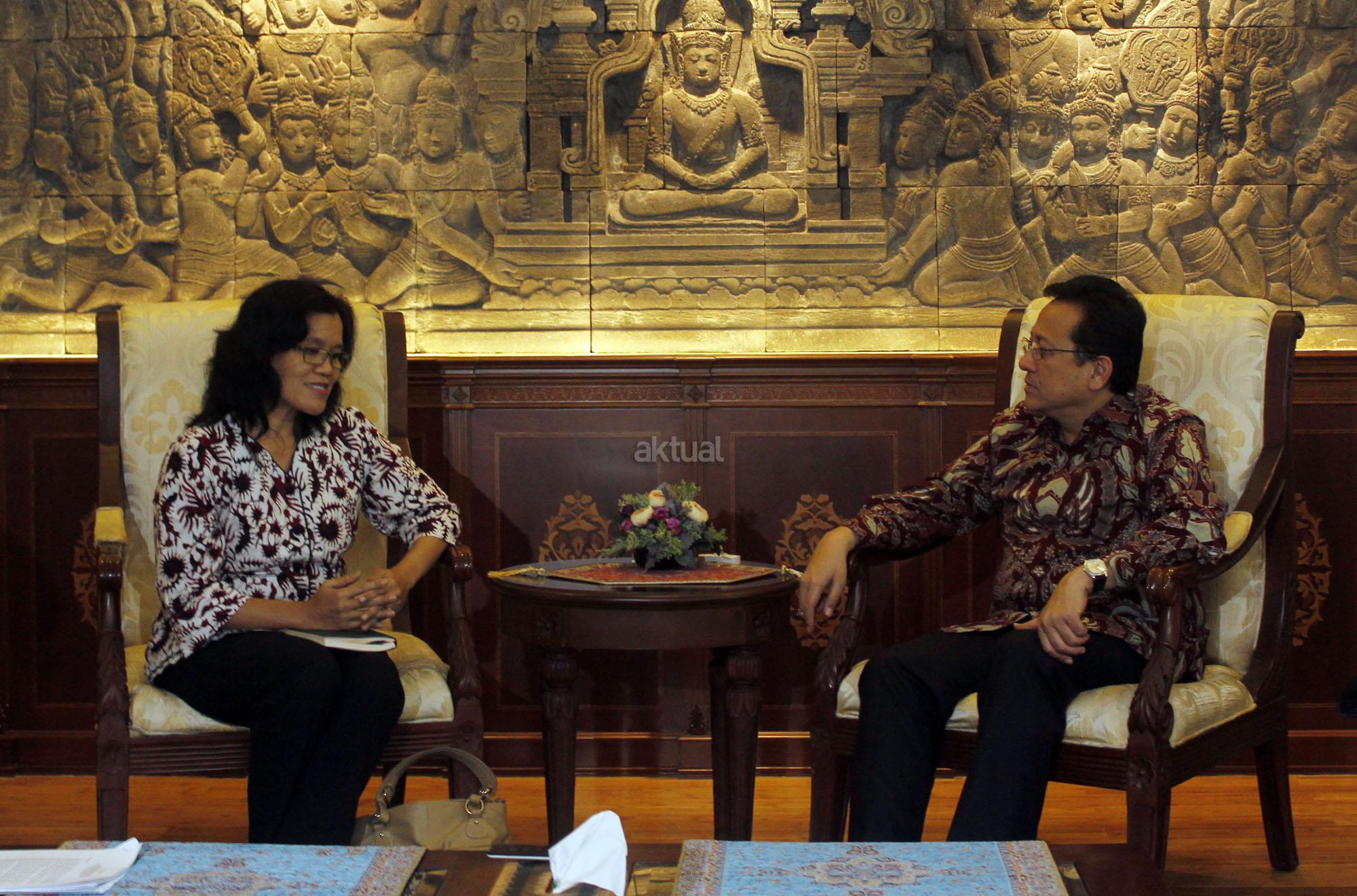Ketua Komisi Nasional Anti-Kekerasan Terhadap Perempuan (Komnas Perempuan), Azriana (tengah) bersama Komisioner Komnas Perempuan, Yanti Rahma berbincang-bincang dengan Ketua Dewan Perwakilan Daerah (DPD), Irman Gusman (kanan) di Kompleks Parlemen, Senayan, Jakarta, Kamis (05/11/2015). Ketua Komnas Perempuan menemui Ketua DPD dalam rangka meminta dukungan Kepada DPD untuk mensukseskan program Komnas Perempuan di Daerah.