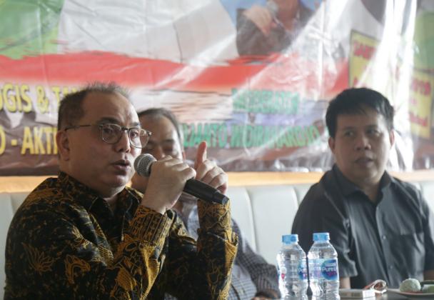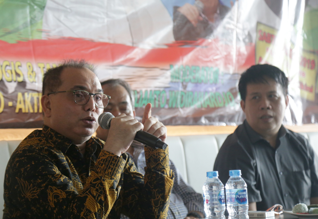 Tokoh Gerakan Anti Radikalisme & Intoleransi Haidar Alwi (kanan) bersama Praktisi Geologis dan Tambang Alimin Ginting (tengah) saat diskusi publik dengan tema, "Komposisi Kabinet Kerja Ideal Menuju Indonesia Unggul" di Jakarta, Sabtu (3/8/2019). AKTUAL/Tino Oktaviano
