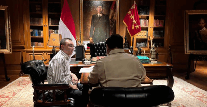 Foto resmi yang dirilis Sekretariat Kabinet memperlihatkan Dasco menghadap Prabowo di ruang kerja pribadi sang Presiden. Prabowo tampak tetap dengan setelan safari krem khasnya, sementara Dasco hadir dengan kemeja panjang bercorak garis hitam-putih.