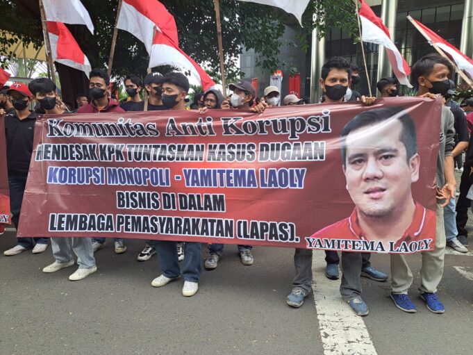 Mereka menuntut KPK untuk segera menuntaskan kasus dugaan monopoli bisnis di dalam lembaga pemasyarakatan (lapas) yang dilakukan oleh Yamitema Laoly, putra dari Menteri Hukum dan Hak Asasi Manusia (Menkumham) Yasonna Laoly.