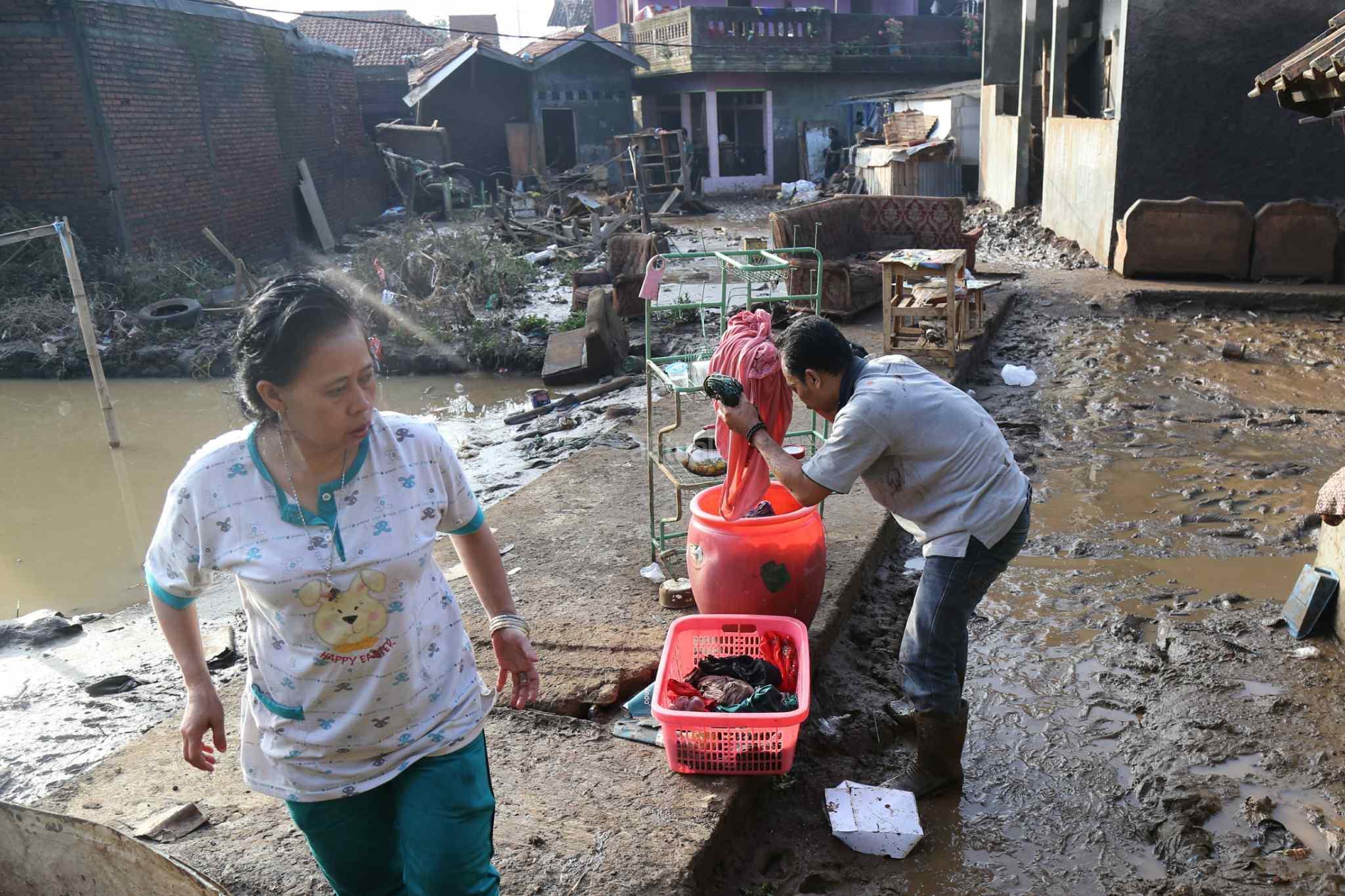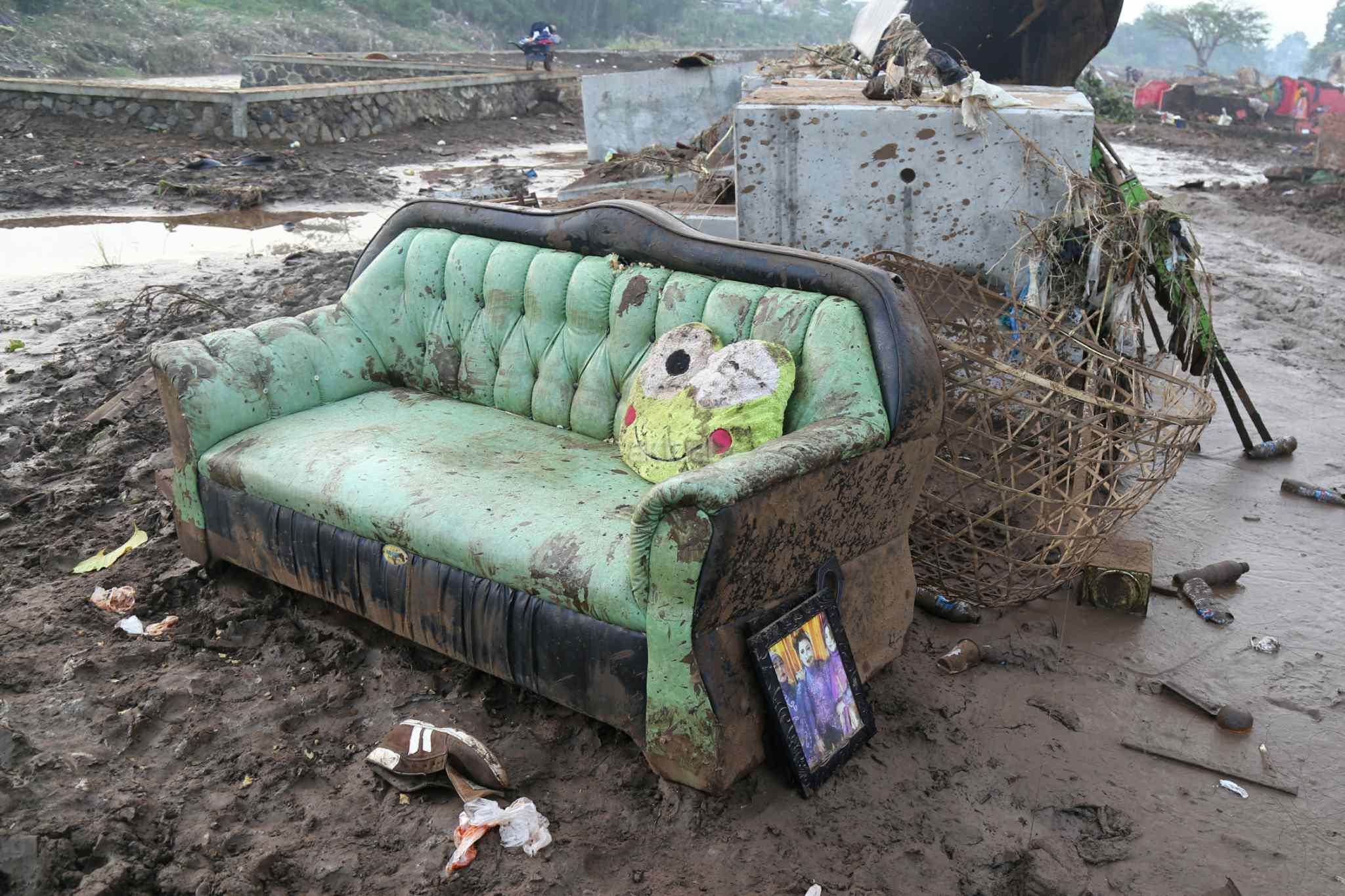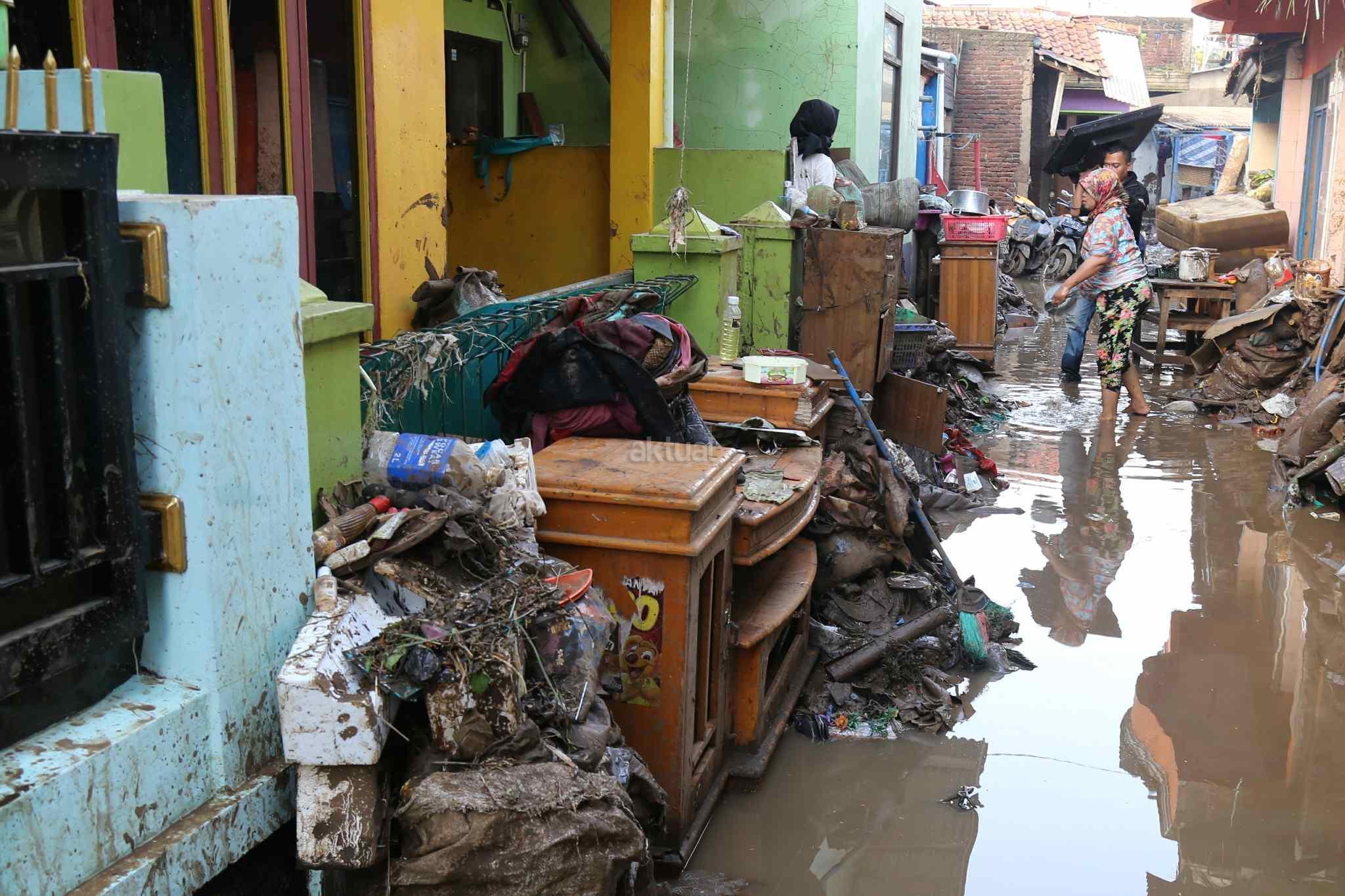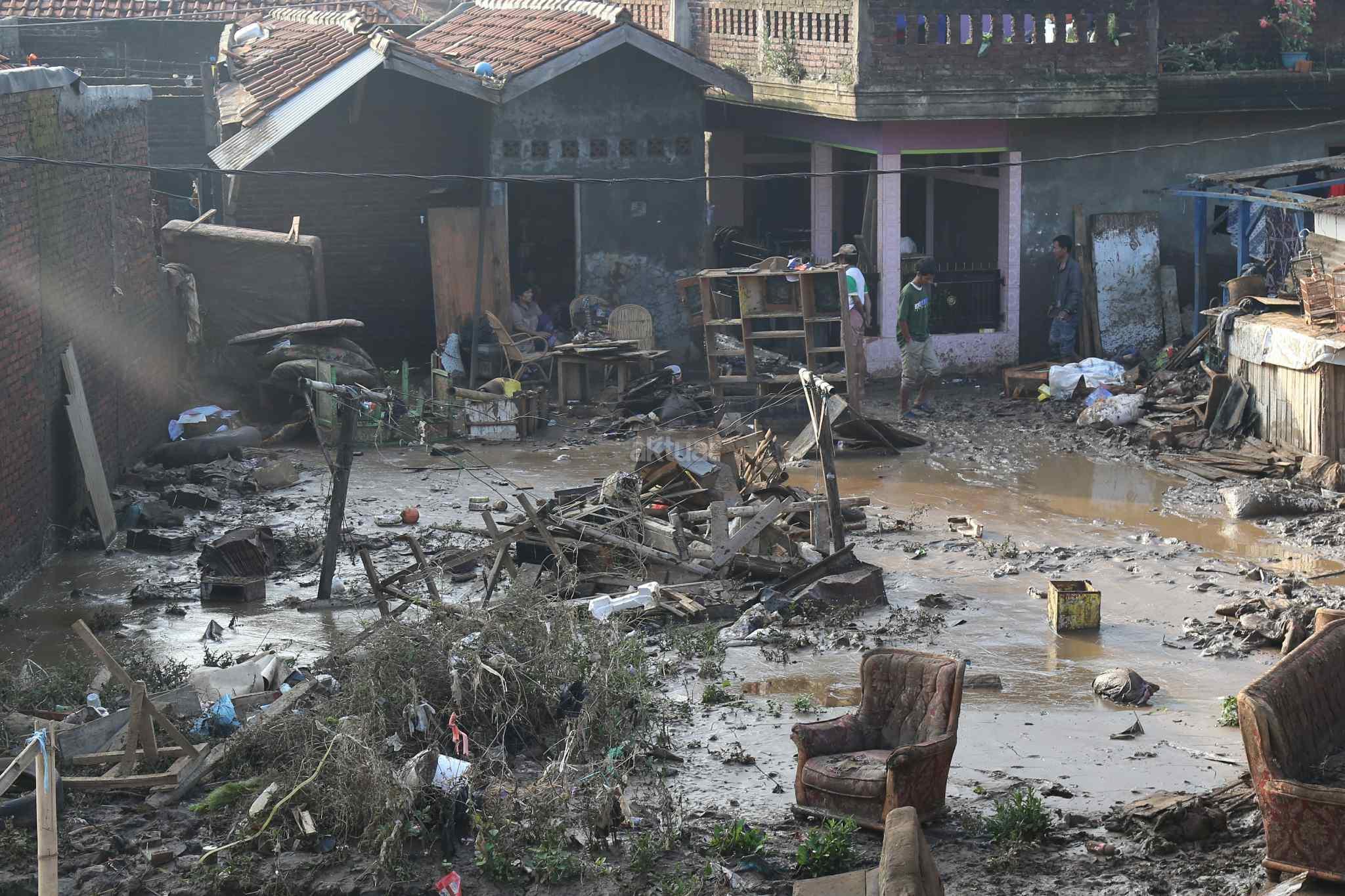 Barang rumah yang terbawa arus banjir bandang sungai Cimanuk, di Kecamatan Tarogong Kidul, Cimacan, Kabupaten Garut, Jawa Barat.