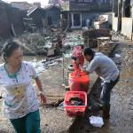 Warga mengumpulkan barang-barang dari puing bangunan rumah yang roboh akibat diterjang banjir bandang aliran Sungai Ciamanuk di Posko Kampung Bojong Sudika, RW 19, Desa Haurpanggung Kecamatan Tarogong Kidul, Cimacan, Kabupaten Garut, Jawa Barat, Kamis (22/9). Kampung ini merupakan salah satu titik terparah terkena banjir bandang. Di kawasan padat penduduk itu diketahui sebanyak 160 rumah porak poranda, 23 korban meninggal ditemukan dan belasan orang hilang. AKTUAL/TINO OKTAVIANO