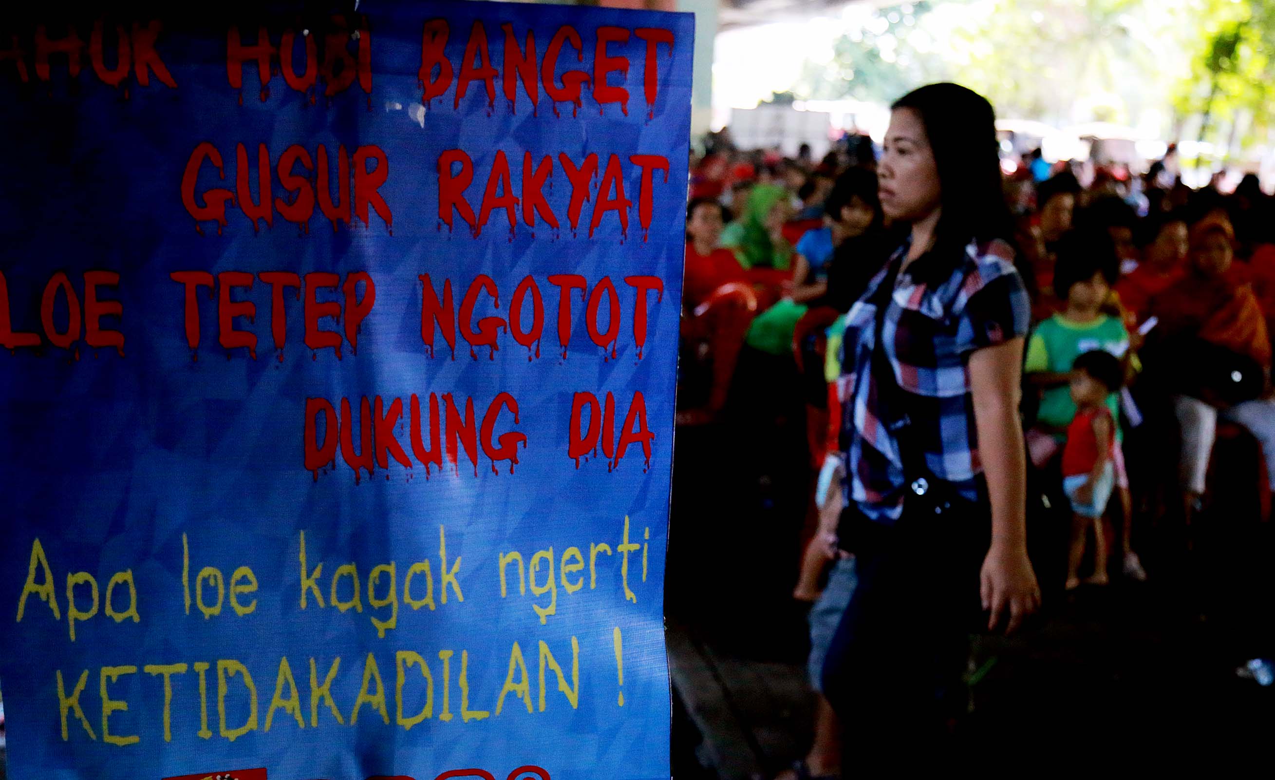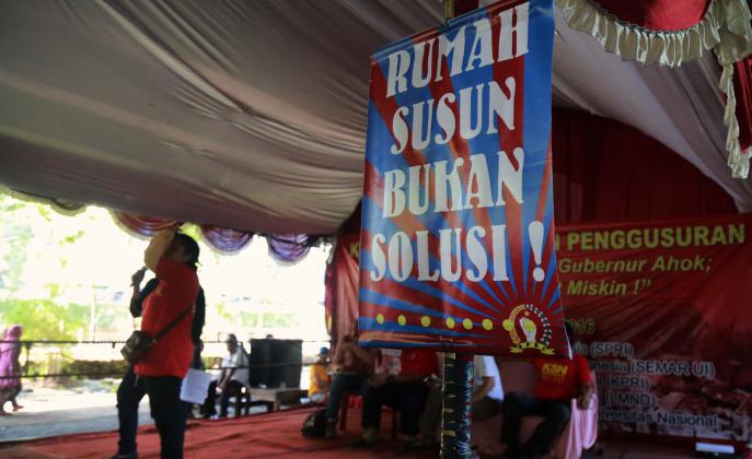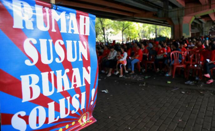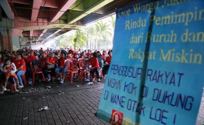 Sebanyak 1.500 warga perwakilan Kelurahan se DKI Jakarta dan Penghuni Rumah Susun (korban penggusuran) menyakini bahwa pembangunan Ibukota Jakarta hanya dipentingkan untuk golongan pengusaha, pemilik modal dan konglomerat dan Gubenur DKI Jakarta Basuki Tjahja Purnama (Ahok) merupakan centeng pengusaha properti yang mengusai tanah di Jakarta.