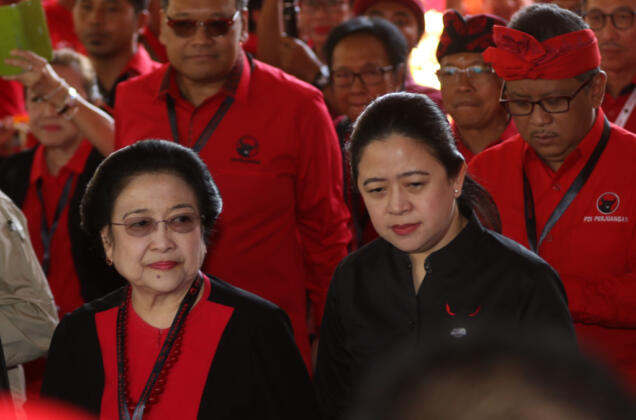 Ketua Umum PDI Perjuangan Megawati Soekarnoputri (tengah) didampingi Politikus PDI Perjuangan Puan Maharani (kiri) dan Prananda Prabowo (kanan) meninggalkan ruangan usai konferensi pers tentang pengukuhan dirinya sebagai Ketua Umum PDIP periode 2019-2024 dalam Kongres V PDI Perjuangan di Sanur, Denpasar, Bali, Kamis (8/8/2019). Megawati Soekarnoputri terpilih kembali secara aklamasi sebagai Ketua Umum PDI Perjuangan periode 2019-2024. AKTUAL/HO-Maman Error