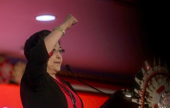 Ketua Umum DPP Partai Demokrasi Indonesia Perjuangan (PDIP) Megawati Soekarnoputri saat menyampaikan pidato pembukaan Kongres V PDIP di Sanur, Bali, Kamis (8/8/2019). AKTUAL/HO-Maman Error