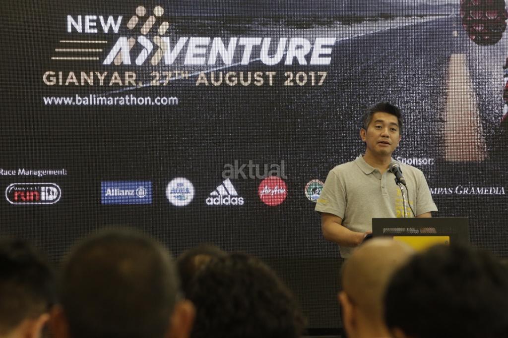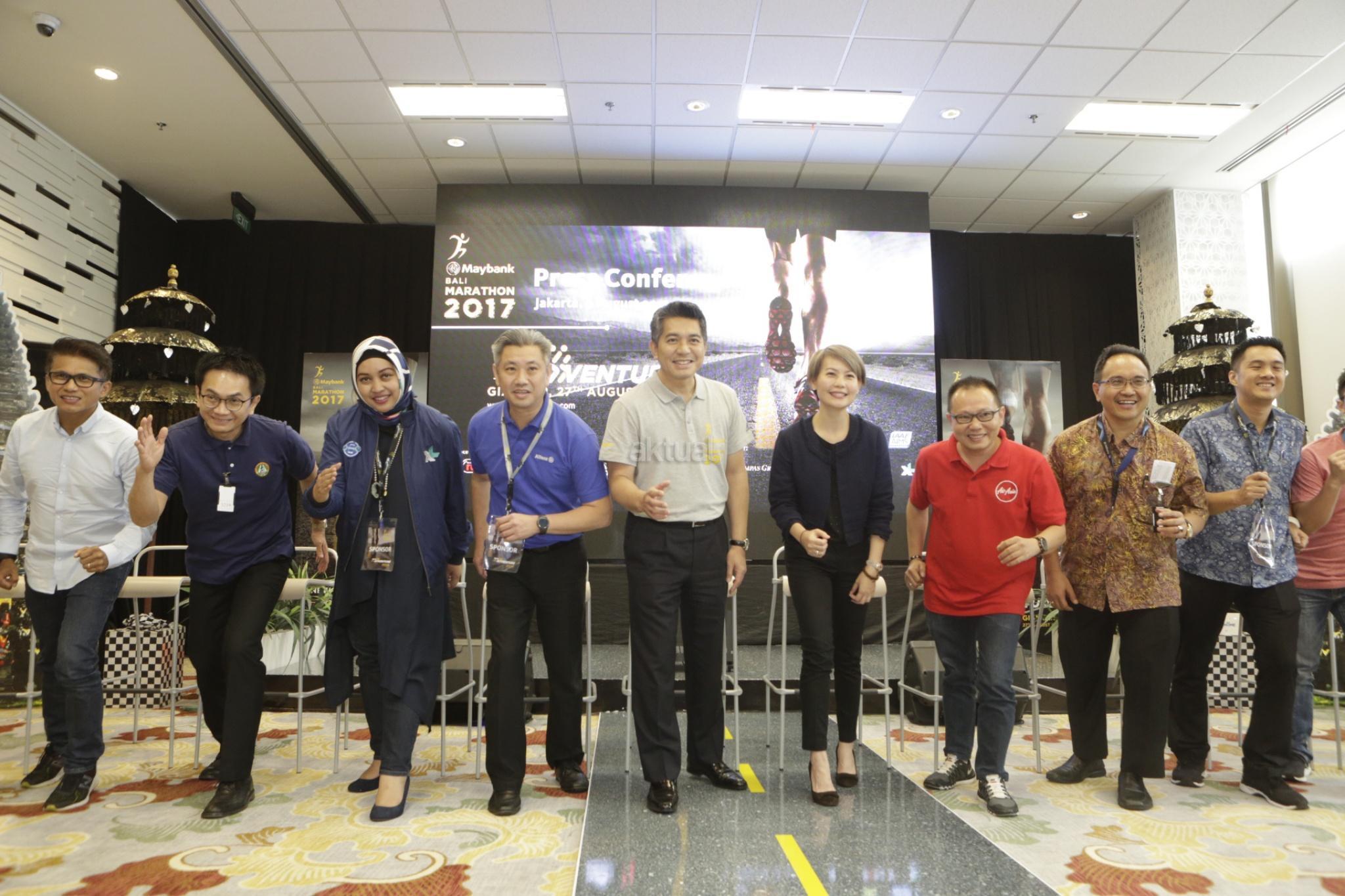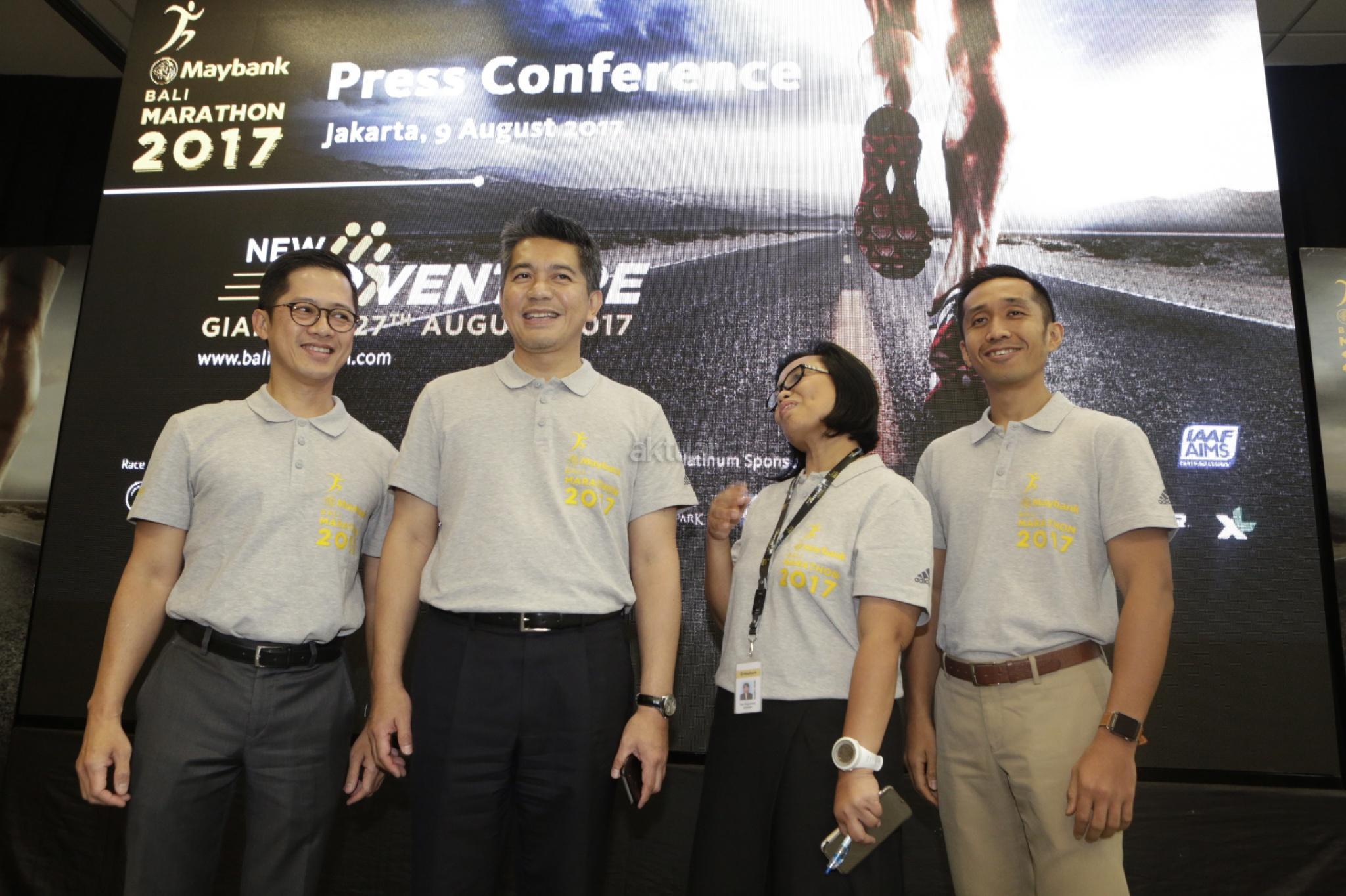 Presiden Direktur PT Bank Maybank Indonesia Tbk (Maybank Indonesia) Taswin Zakaria bersama Project Director Maybank Bali Marathon (MBM) 2017 Eri Budiono, Project Manager MBM 2017 Wahyu Qurnia Pisca Rizky beserta Direksi Maybank Indonesia dan perwakilan sponsor pendukung mengumumkan persiapan final lomba lari internasional Maybank Bali Marathon (MBM) 2017 di kantor pusat Maybank Indonesia (9/8). MBM 2017 membawa sejumlah konsep baru untuk memberikan tantangan baru (new adventure) dan running experienceyang lebih baik, yakni dengan rute baru yang melalui Kabupaten Gianyar dan Klungkung, pengambilan paket lomba dengan suasana tepi pantai Bali yang indah serta penggunaan teknologi aplikasi smartphone berbasis GPS (Android dan iOS), dimana lokasi pelari dapat dimonitor secara real time oleh penonton maupun peserta lainnya. MBM 2017 diikuti sekitar 9.000 peserta dari berbagai negara atau meningkat 20% dibandingkan tahun lalu sebanyak 7.500 peserta dimana seluruh slotpublik telah terjual dalam waktu 3 (tiga) hari pertama dalam periode registrasi. AKTUAL/Eko S Hilman