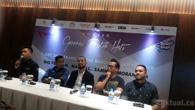 Jakarta, Aktual.co — Konser musik bertajuk ‘Generasi Patah Hati’ rencana akan digelar pada tanggal 12 Desember 2014 mendatang di Trans Studio Bandung, mulai pukul 18.30 WIB. Dito Indra Rukmana selaku ketua panitia event acara tersebut, mengatakan, dalam konser itu juga akan menampilkan alur cerita drama yang menarik.