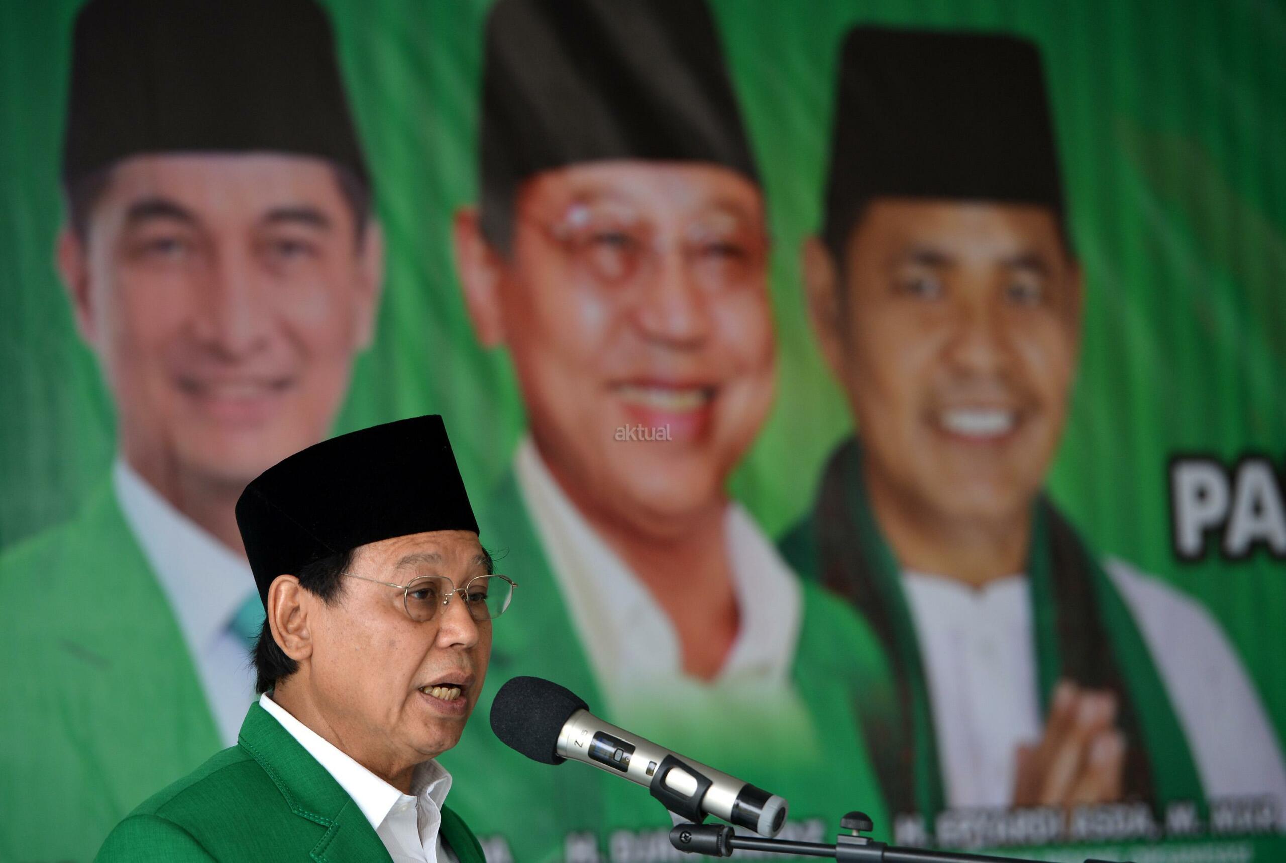 Ketua Umum PPP Djan Faridz memberikan sambutan saat membuka Konsolidasi Nasional PPP di Jakarta, Kamis (22/10). Konsolidasi Nasional diikuti 34 Dewan Pimpinan Wilayah (DPW) PPP di seluruh Indonesia yang berlangsung 22- 23 Oktober 2015 yang membahas tentang keorganisasian dan posisi hukum PPP khususnya setelah keluarnya putusan kasasi Mahkamah Agung (MA). ANTARA FOTO/Prasetyo Utomo/ama/15