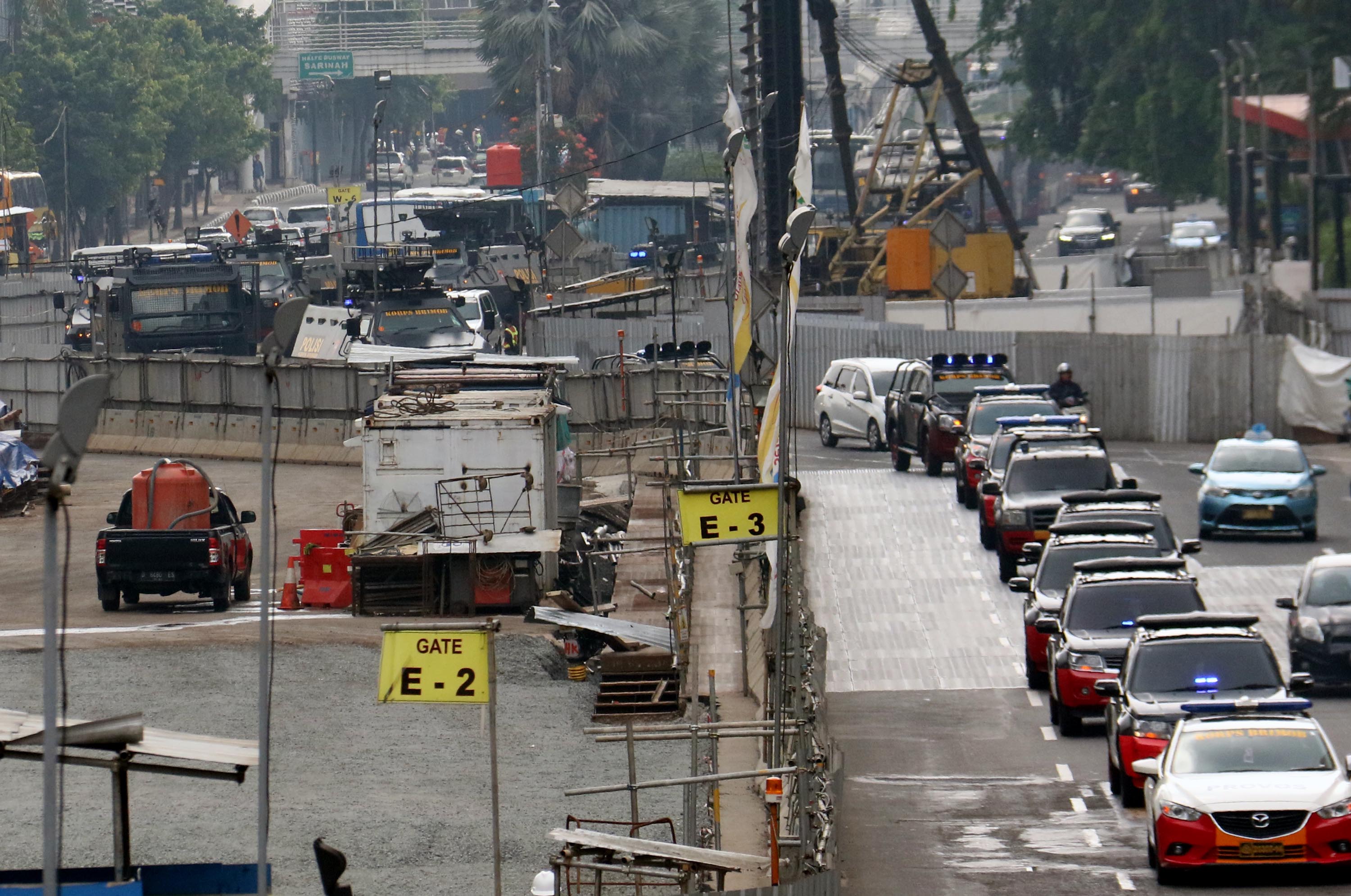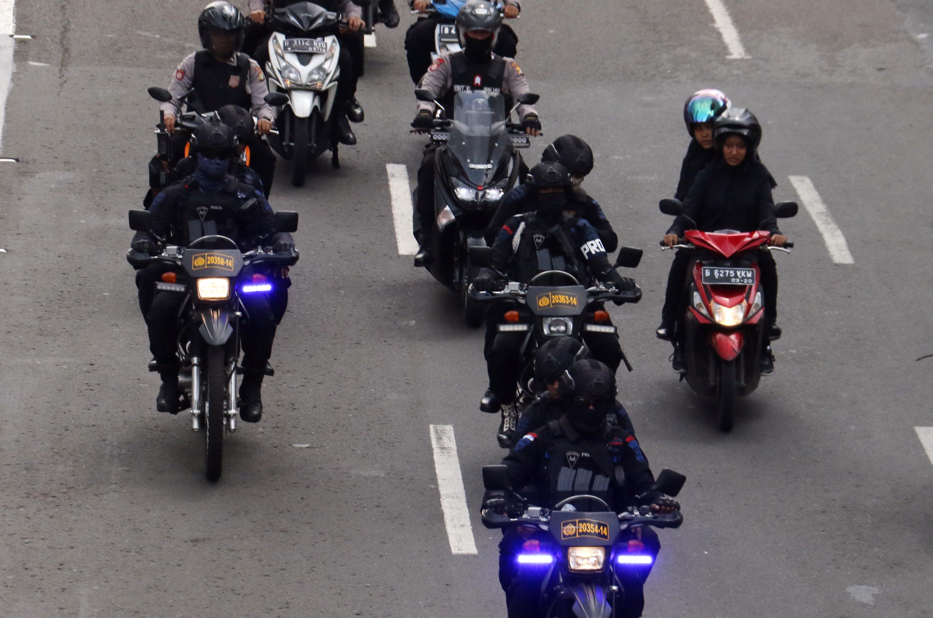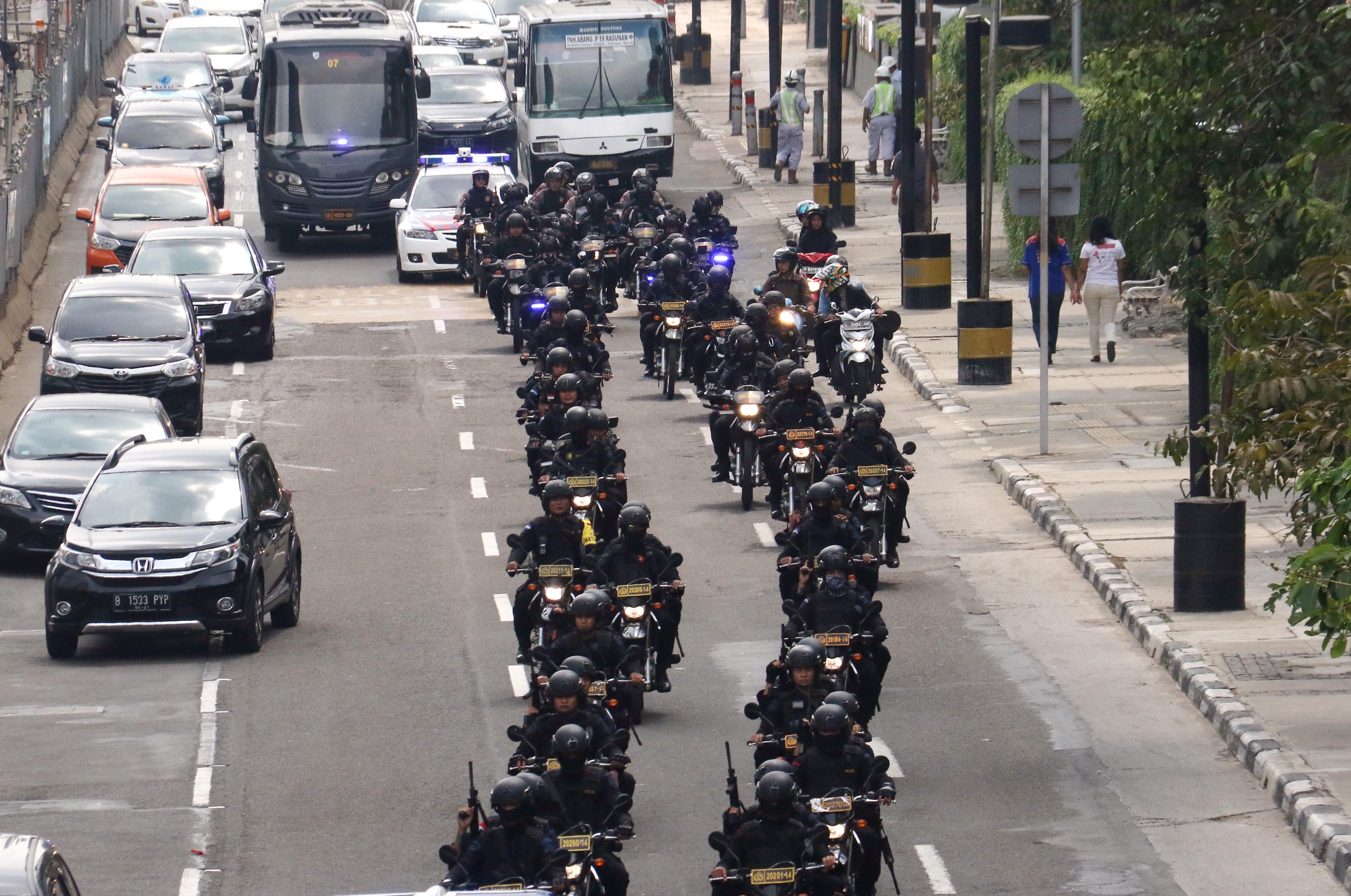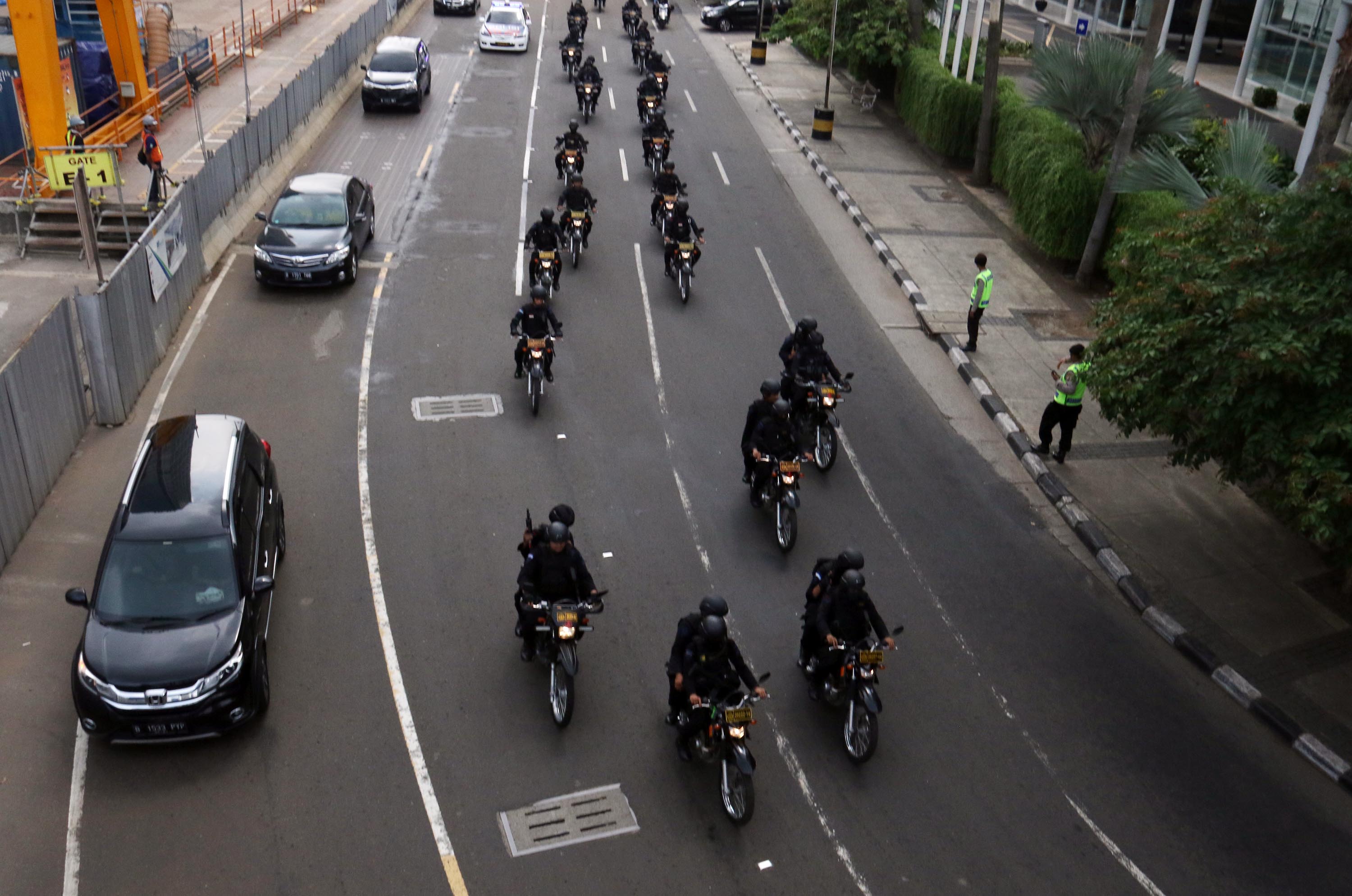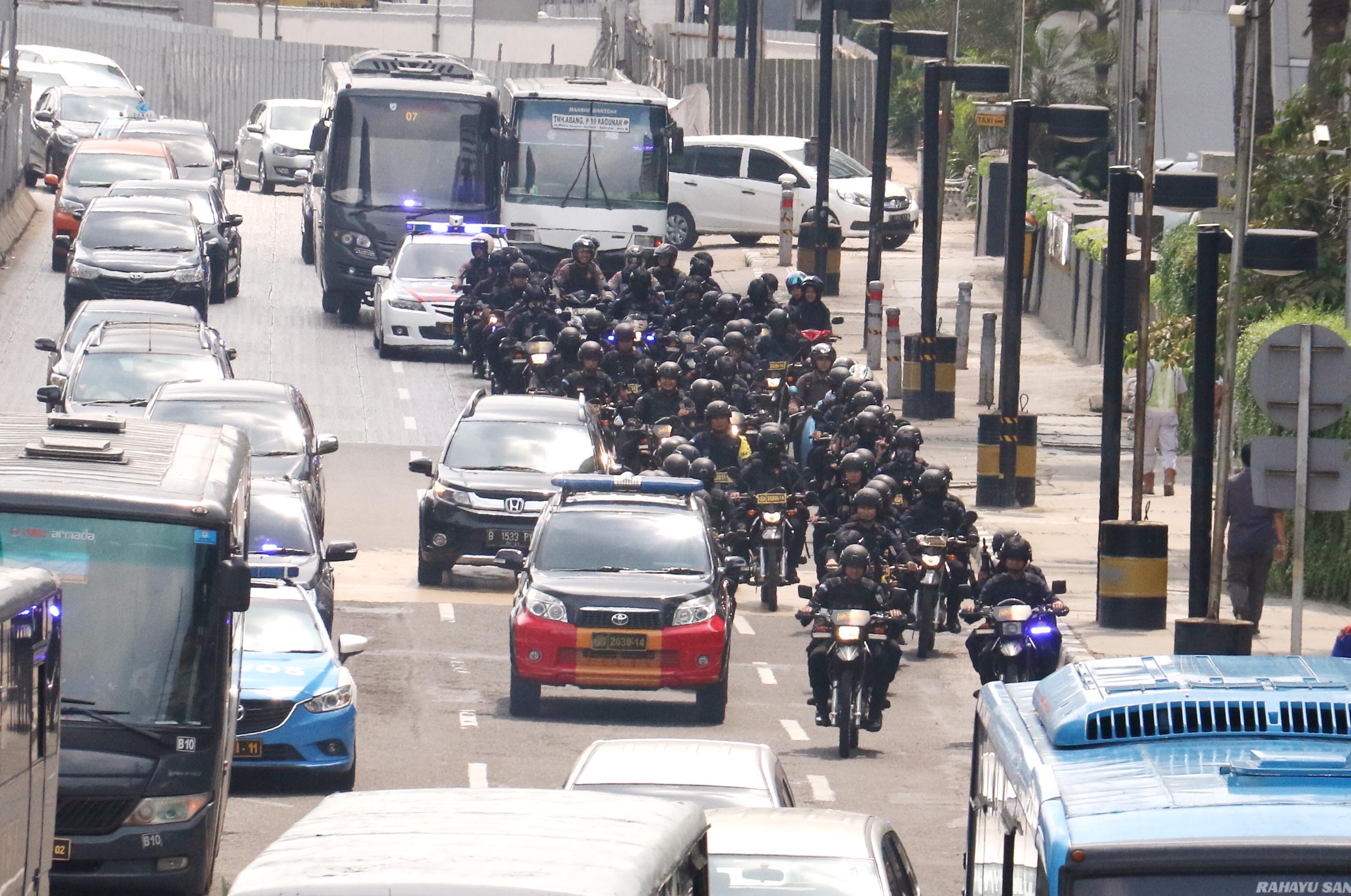 Terlihat Konvoi kendaraan bermotor Kepolisian usai mengikuti acara memperingati upacara hari Bhayangkara yang ke 71, melintas di Jalan. Thamrin, Jakarta, (10/7/2017). Upacara peringatan HUT Bhayangkara yang ke – 71, sebanyak 2.408 personel gabungan Polri, TNI, Satpol PP dan Pramuka terlibat dalam upacara ini. AKTUAL/Munzir