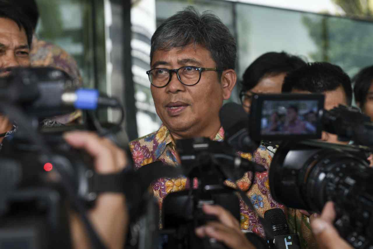 Jaksa Agung Muda Pidana Khusus (Jampidsus) Arminsyah menjawab pertanyaan wartawan saat keluar dari Gedung KPK, Jakarta, Jumat (29/7). Kedatangan Jampidsus ke markas lembaga antirasuah itu untuk koordinasi dan supervisi antara Kejaksaan Agung dengan KPK dalam penanganan kasus korupsi seperti kasus korupsi dana hibah Kadin Jatim tahun 2012 dengan tersangka La Nyalla Mattalitti ANTARA FOTO/Hafidz Mubarak A./16