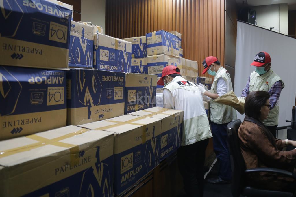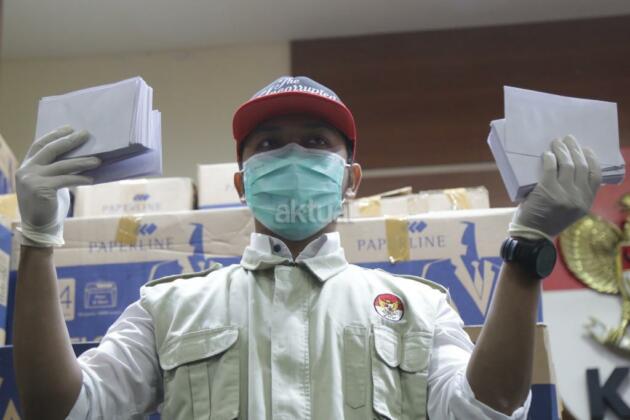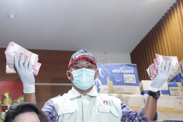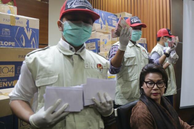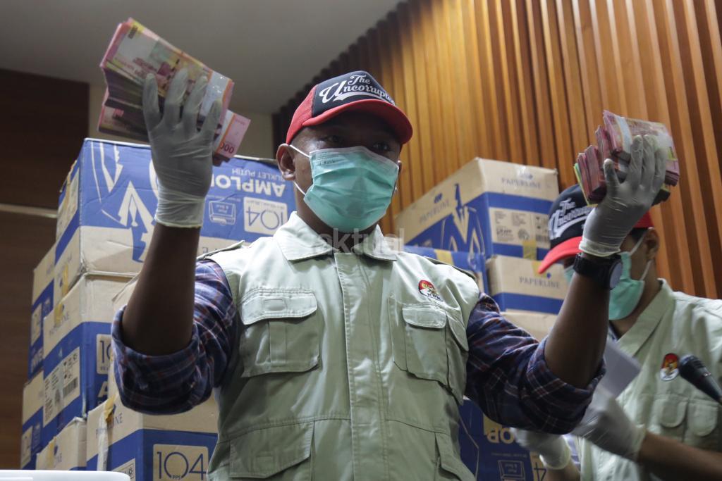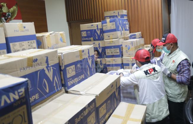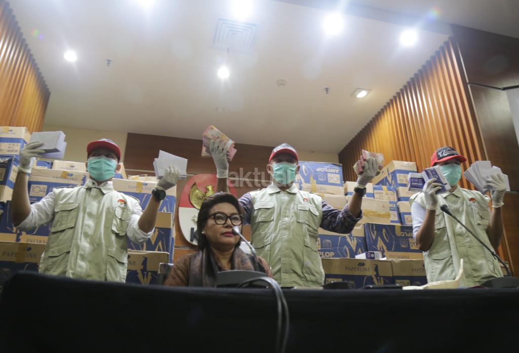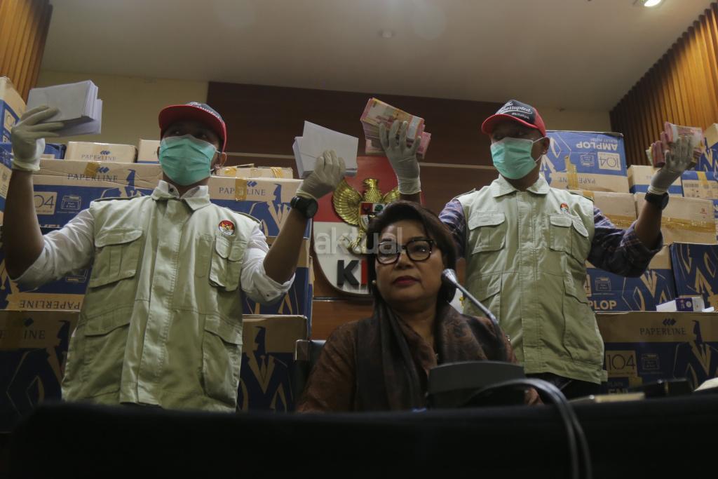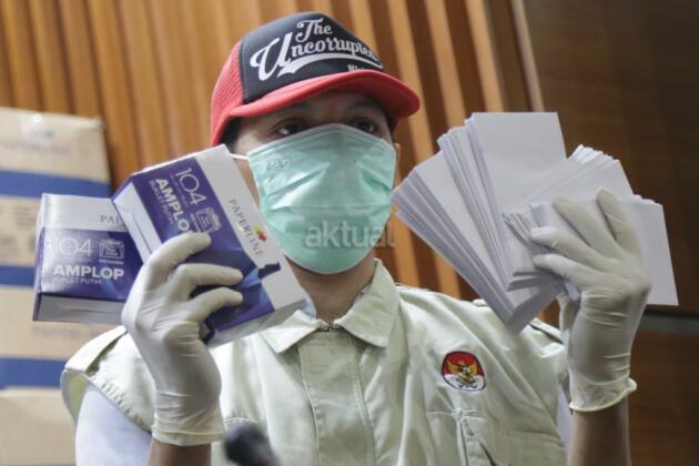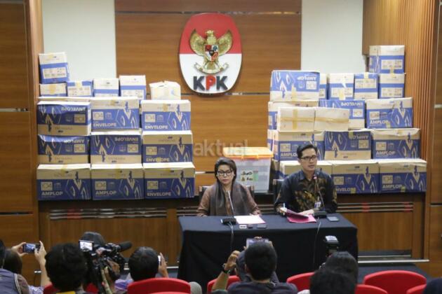 Penyidik menunjukkan barang bukti hasil Operasi Tangkap Tangan (OTT) yang menjerat anggota DPR Fraksi Golkar Bowo Sidik Pangarso, saat memberikan keterangan pers, di Gedung KPK Merah Putih, Jakarta, Kamis (28/3/2019). AKTUAL/Tino Oktaviano