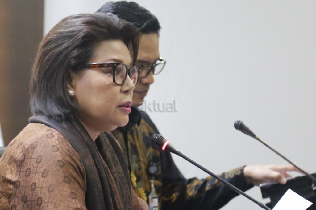 Wakil Ketua KPK Basaria Panjaitan (kiri) didampingi Jubir KPK Febri Diansyah (kanan) memberikan keterangan kepada wartawan terkait hasil Operasi Tangkap Tangan (OTT) yang menjerat anggota DPR Fraksi Golkar Bowo Sidik Pangarso, saat memberikan keterangan pers, di Gedung KPK Merah Putih, Jakarta, Kamis (28/3/2019). AKTUAL/Tino Oktaviano
