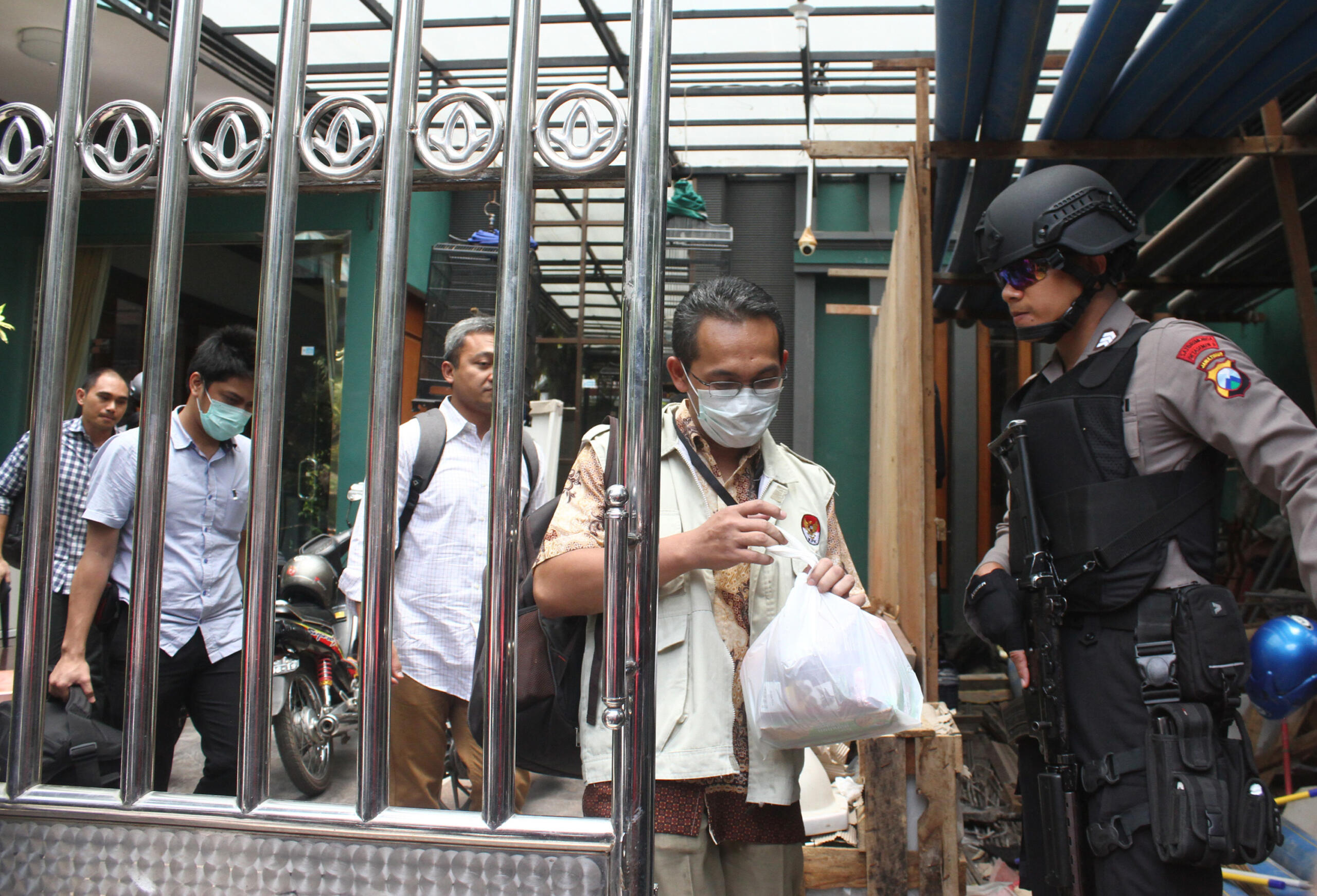 Petugas Komisi Pemberantasan Korupsi (KPK) melakukan penggeledahan di rumah Komisaris PT Citra Gading Asritama (CGA) Heri Mursid di Perumahan Griyashanta, Lowokwaru, Malang, Jawa Timur, Jumat (19/2). Penggeledahan tersebut untuk mencari barang bukti terkait pengusutan kasus dugaan suap Mahkamah Agung (MA) yang melibatkan Dirut PT CGA Ichsan Suaidi, pengacara Awang Lazuardi dan Kasubdit Kasasi dan Peninjauan Kembali MA Andri Tristianto yang sudah ditetapkan sebagai tersangka.ANTARA FOTO/Ari Bowo Sucipto/nz/16.