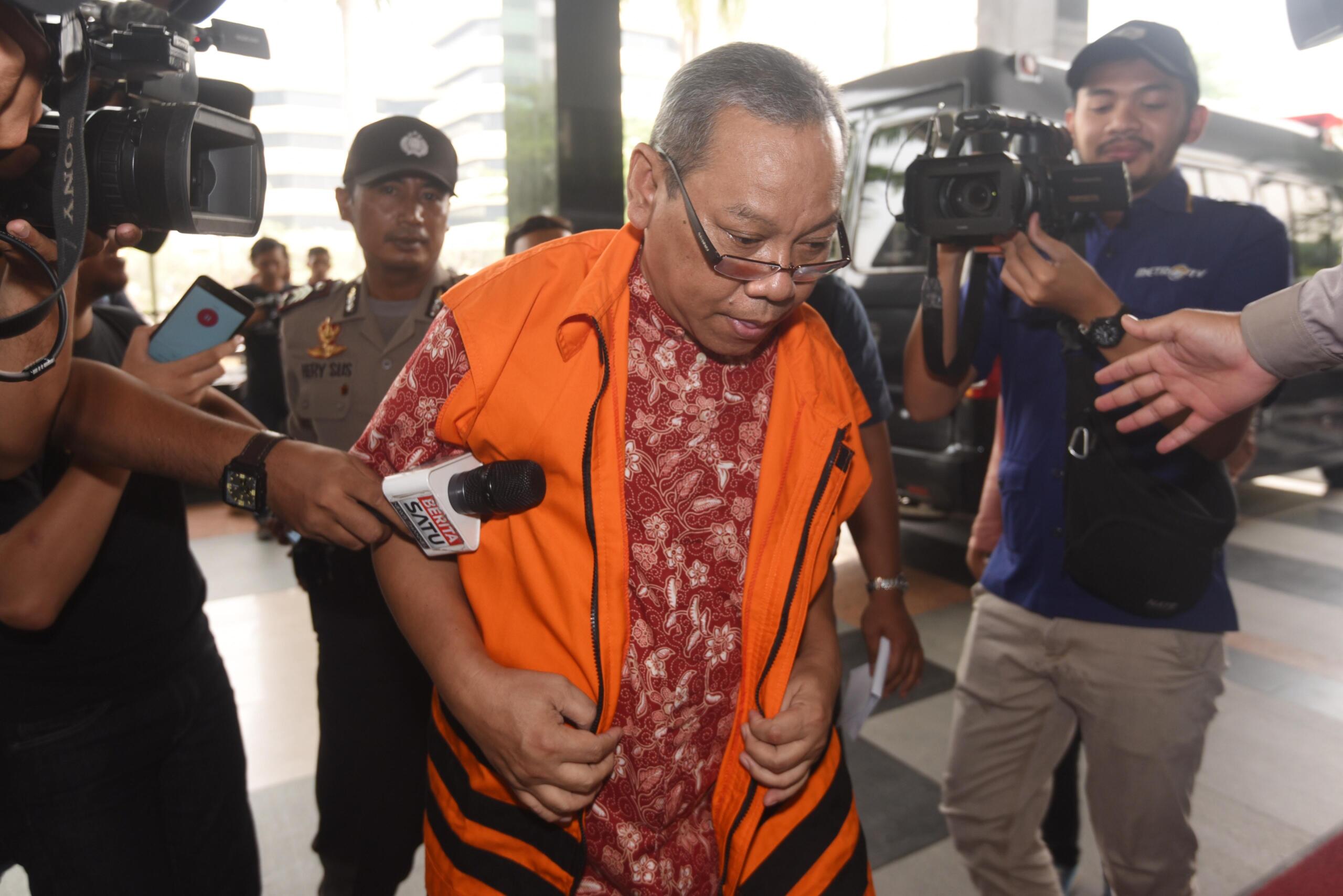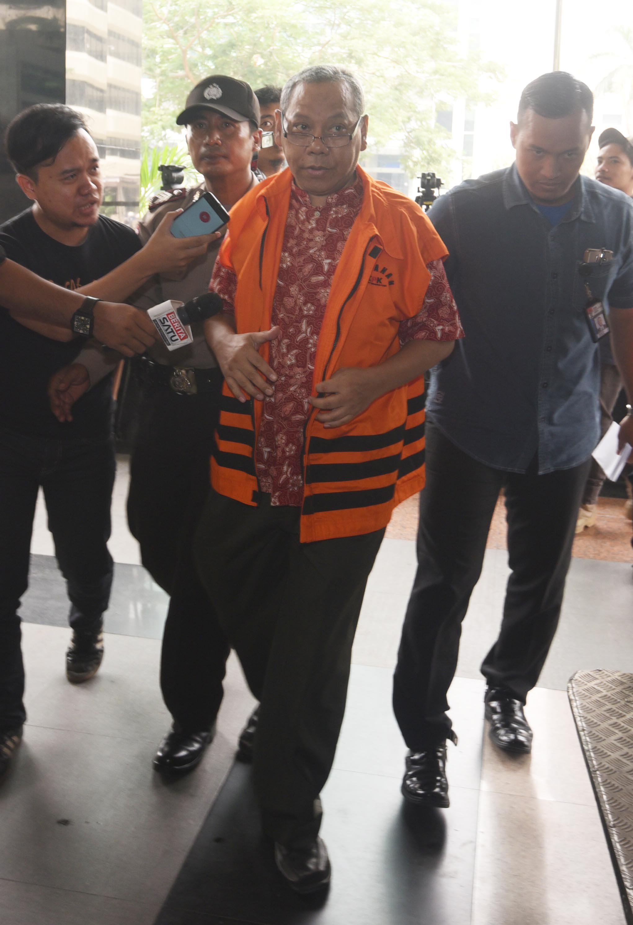 Tersangka kasus dugaan suap penanganan peninjauan kembali (PK) yang diajukan pihak swasta ke PN Jakarta Pusat, Doddy Aryanto Supeno tiba untuk menjalani pemeriksaan di Gedung KPK, Jakarta, Selasa (17/4). Doddy diduga menjadi perantara suap antara perusahaan yang beperkara dengan pejabat PN Jakarta Pusat. ANTARA FOTO/Akbar Nugroho Gumay/pd/16
