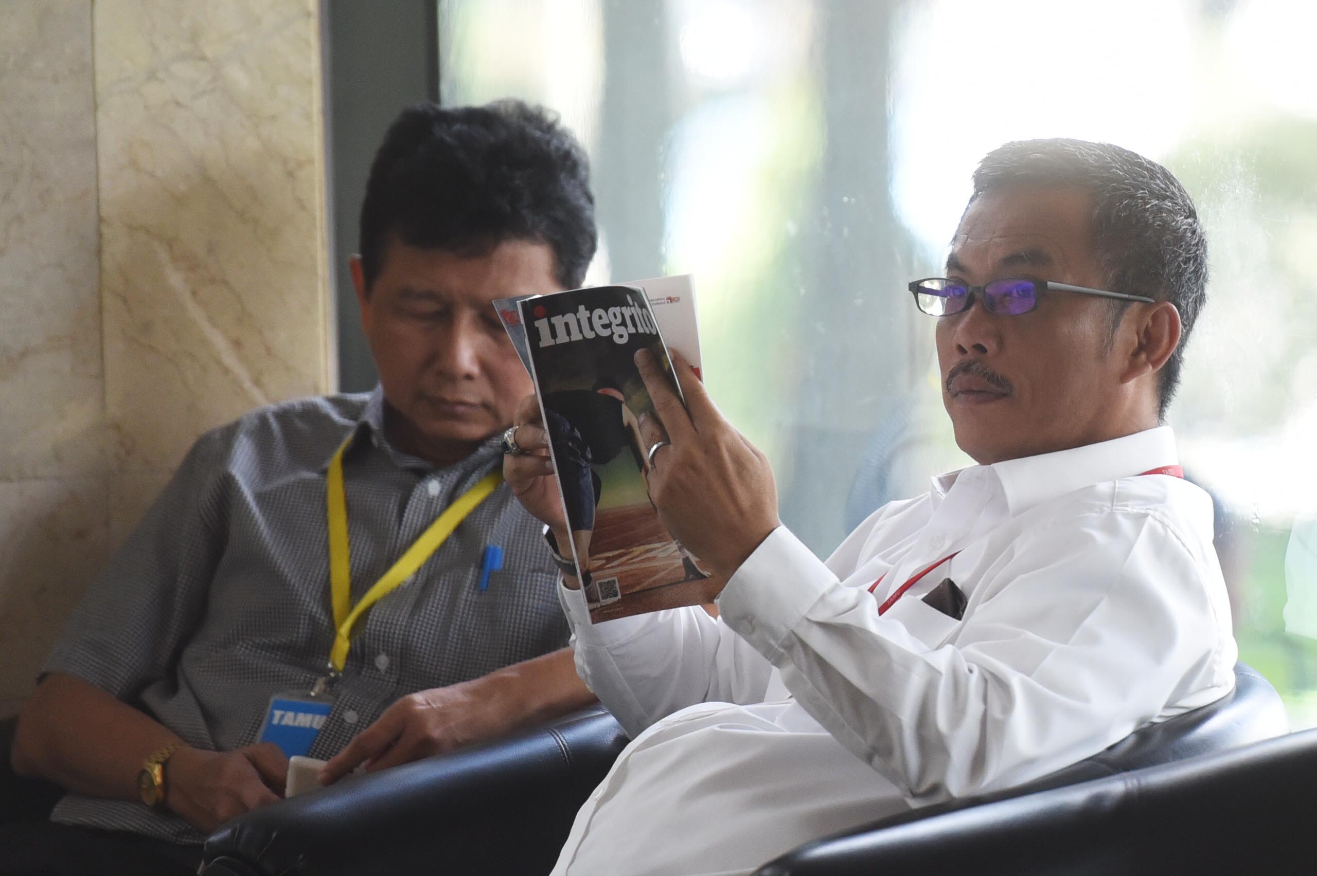 Ketua DPRD DKI Jakarta Prasetio Edi Marsudi duduk di ruang tunggu sebelum menjalani pemeriksaan di Gedung KPK, Jakarta, Selasa (3/5). Prasetio diperiksa terkait kasus dugaan suap dalam pembahasan raperda tentang rencana zonasi wilayah pesisir dan pulau-pulau kecil provinsi DKI Jakarta tahun 2015-2035 dan raperda tentang rencana tata ruang kawasan strategis Pantai Utara Jakarta. ANTARA FOTO/Akbar Nugroho Gumay/ama/16