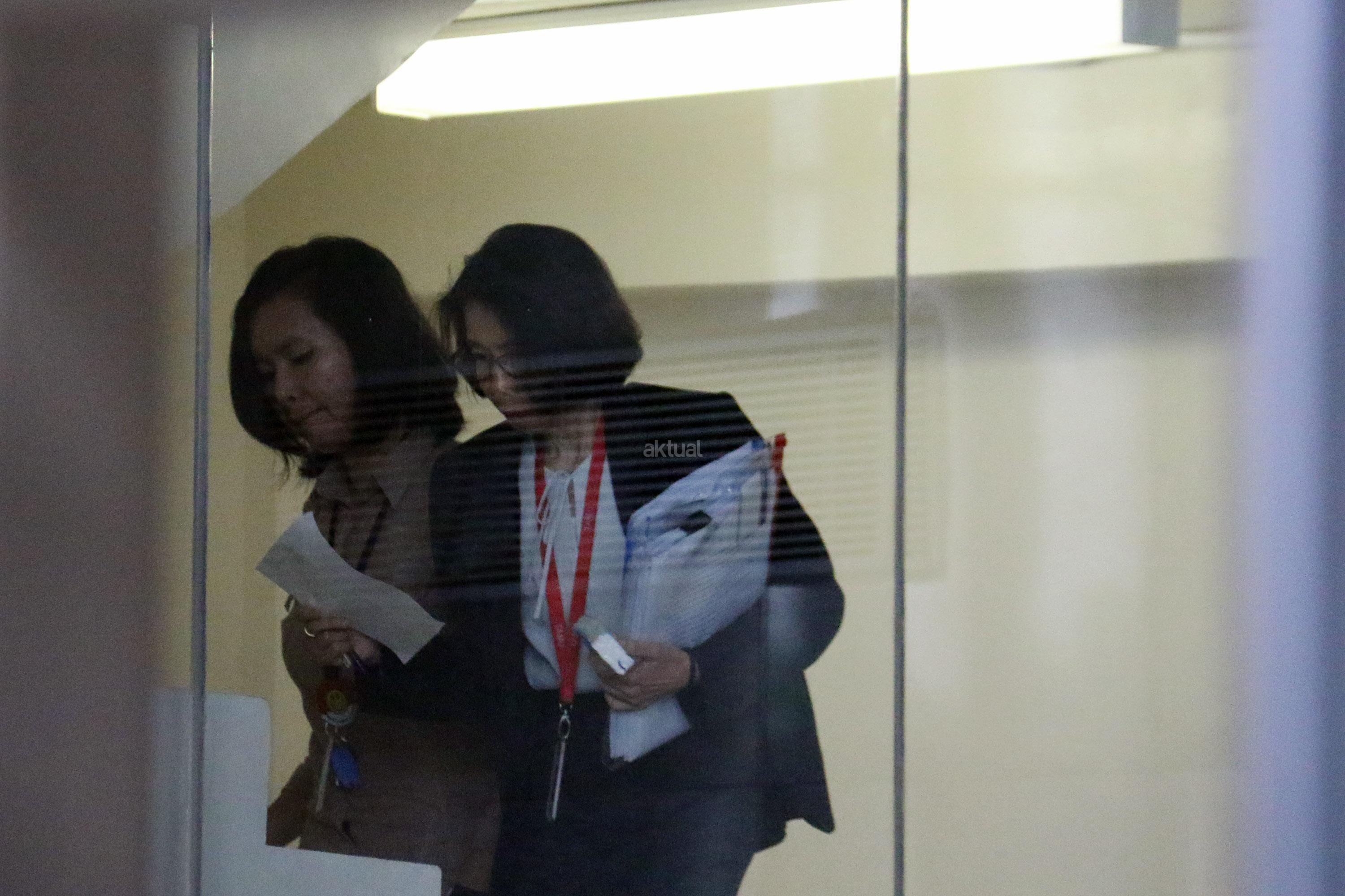 Plt Sekjen DPR Damayanti (kanan) bersiap menjalani pemeriksaan di gedung KPK Jakarta, Rabu (22/11/2017). Damayanti diperiksa sebagai saksi dalam penyidikan kasus dugaan korupsi KTP elektronik yang menjerat Ketua DPR Setya Novanto. AKTUAL/Munzir