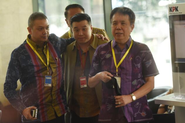 Direktur Agung Sedayu Grup Richard Halim Kusuma (kedua kiri) bersiap menjalani pemeriksaan di Gedung KPK, Jakarta, Rabu (11/5). Anak dari Bos Agung Sedayu Grup Sugianto Kusuma alias Aguan itu diperiksa sebagai saksi terkait kasus dugaan suap di DPRD DKI Jakarta dalam pembahasan Raperda Rencana Tata Ruang Kawasan Strategis Pantai Jakarta Utara dan Raperda Zonasi Wilayah Pesisir dan Pulau-Pulau Kecil Provinsi DKI Jakarta tahun 2015-2035. ANTARA FOTO/Akbar Nugroho Gumay/foc/16.