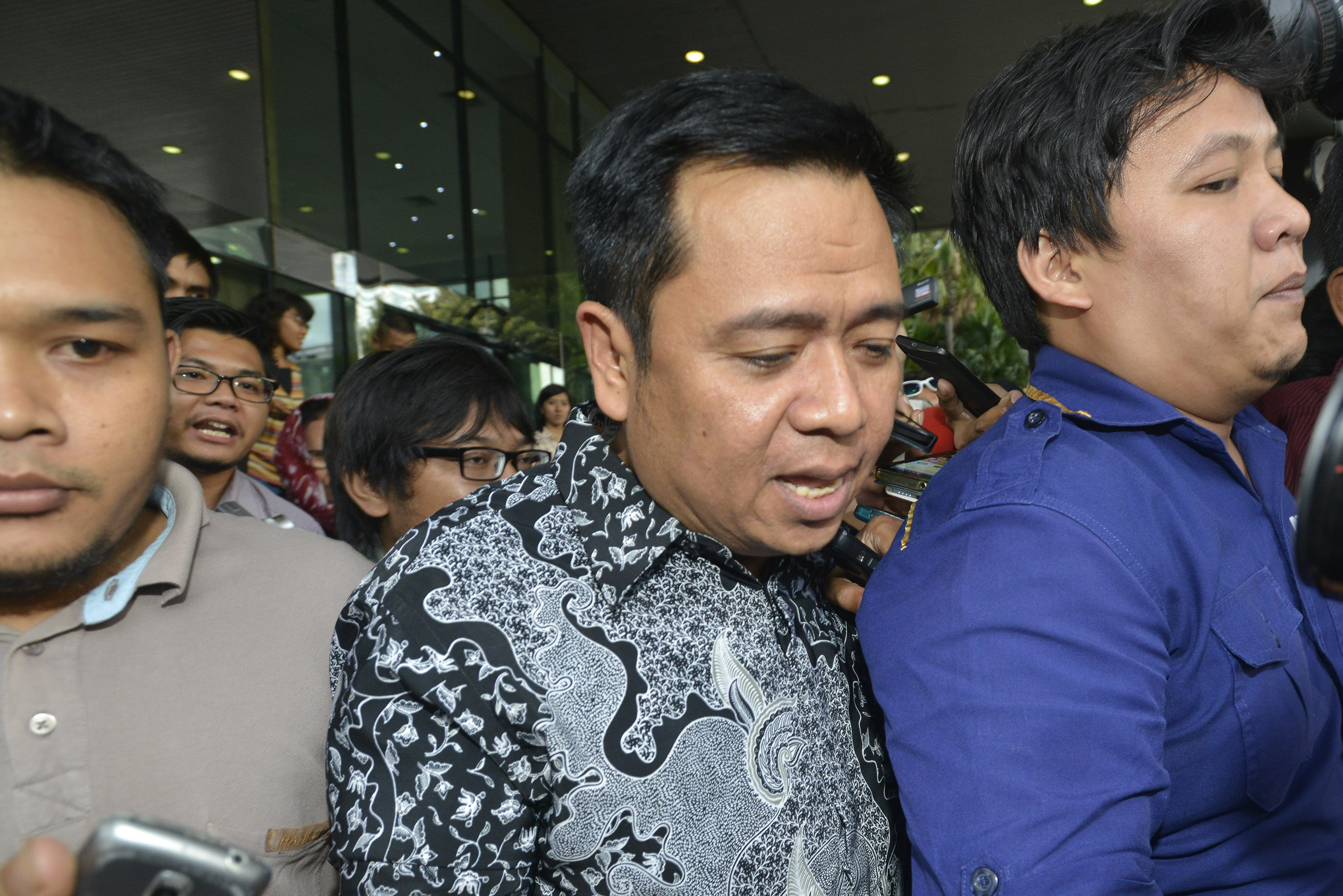 Wakil Ketua Komisi V DPR Lasarus keluar dari gedung KPK usai menjalani pemeriksaan, Jakarta, Selasa (1/3). Lasarus diperiksa sebagai saksi selama hampir 8 jam untuk tersangka Damayanti Wisnu Putranti dalam dugaan suap pengamanan proyek Kementerian Pekerjaan Umum dan Perumahan Rakyat dan Kementerian Pekerjaan Umum. ANTARA FOTO/Rosa Panggabean/foc/16.