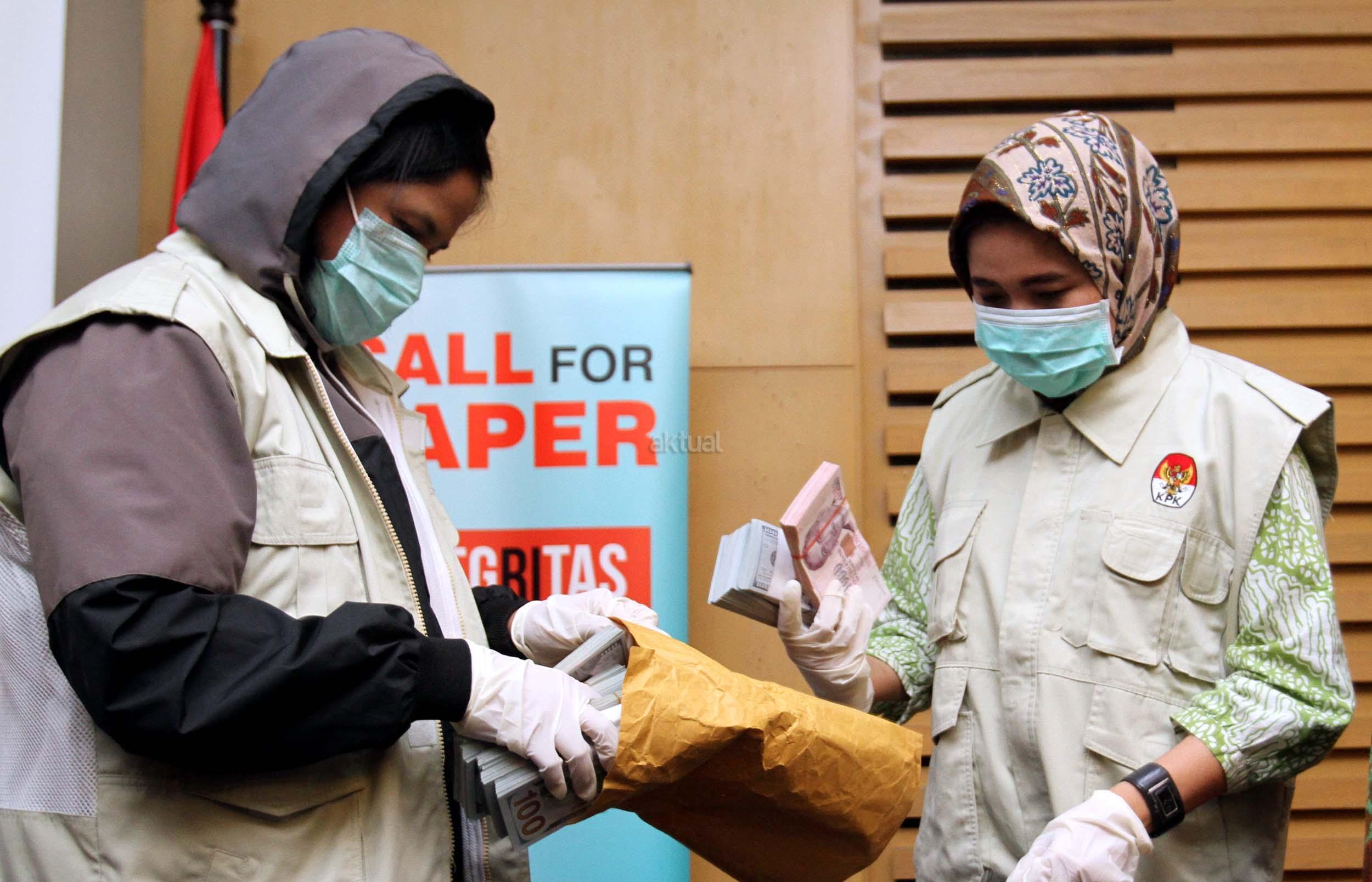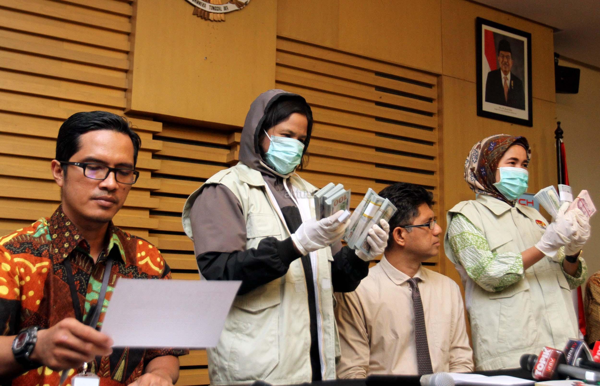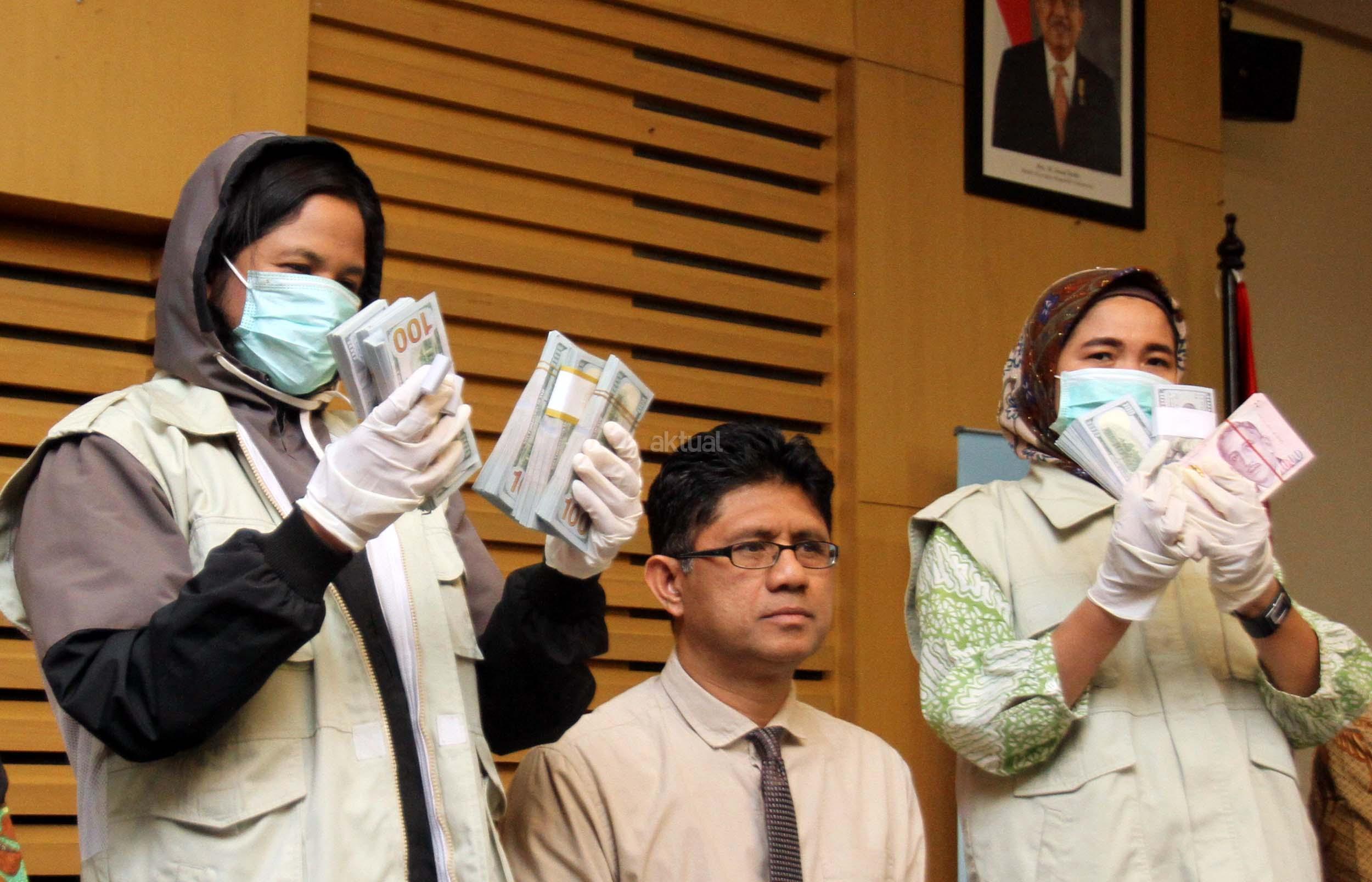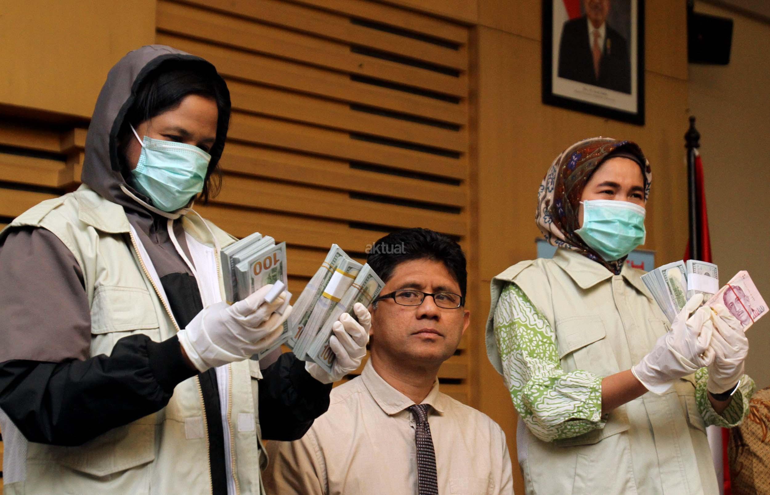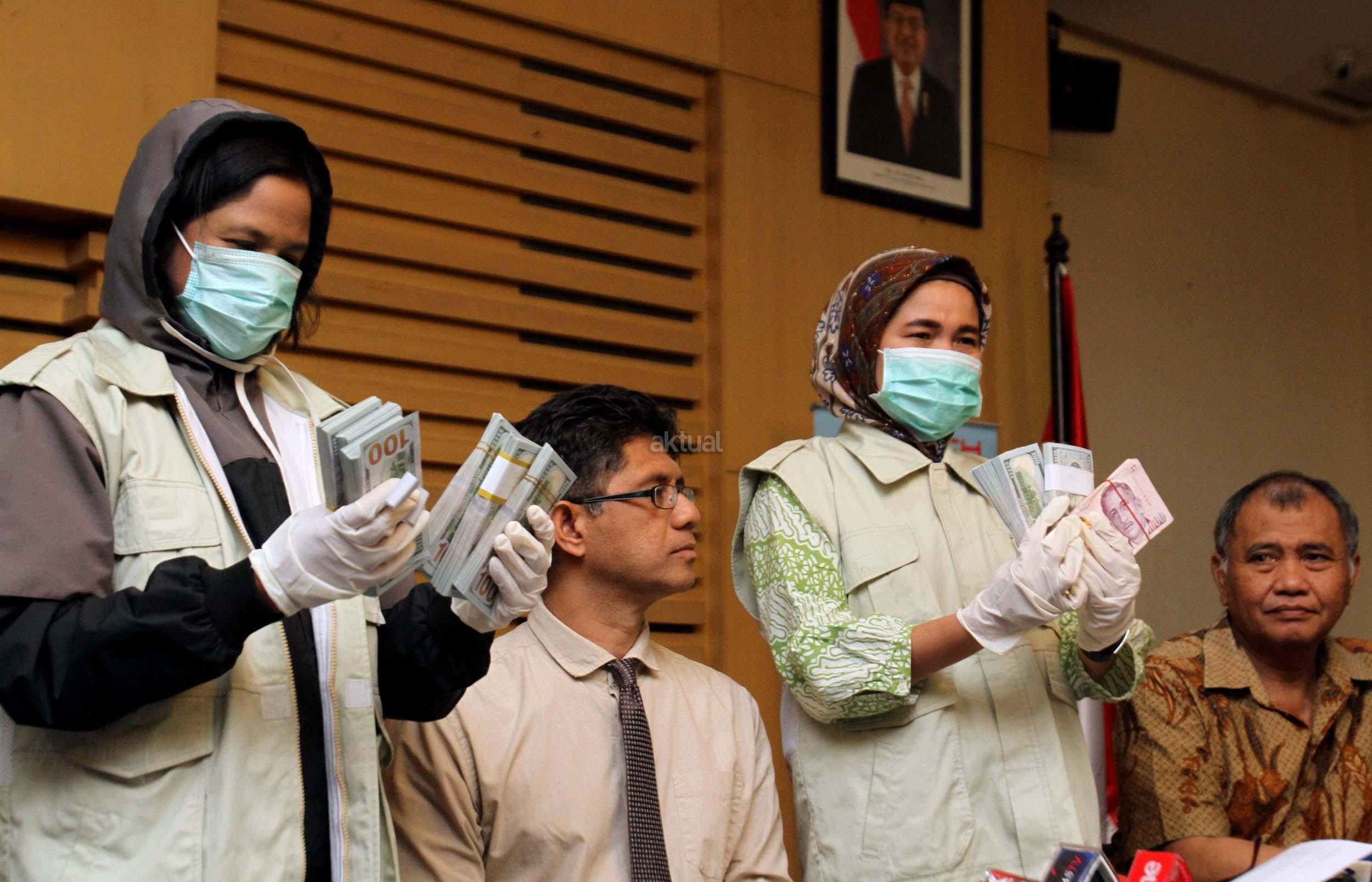 KPK melakukan operasi tangkap tangan kepada tiga tersangka yakni dua pegawai PT. Melati Techonofo Indonesia Muhammad Adami Okta dan Hardy Stefanus serta Deputi Bidang Informasi Hukum dan Kerja Sama Bakamla Eko Susilo Hadi dengan menyita uang pecahan dolar AS dan dolar Singapura senilai Rp2 miliar. AKTUAL/Munzir