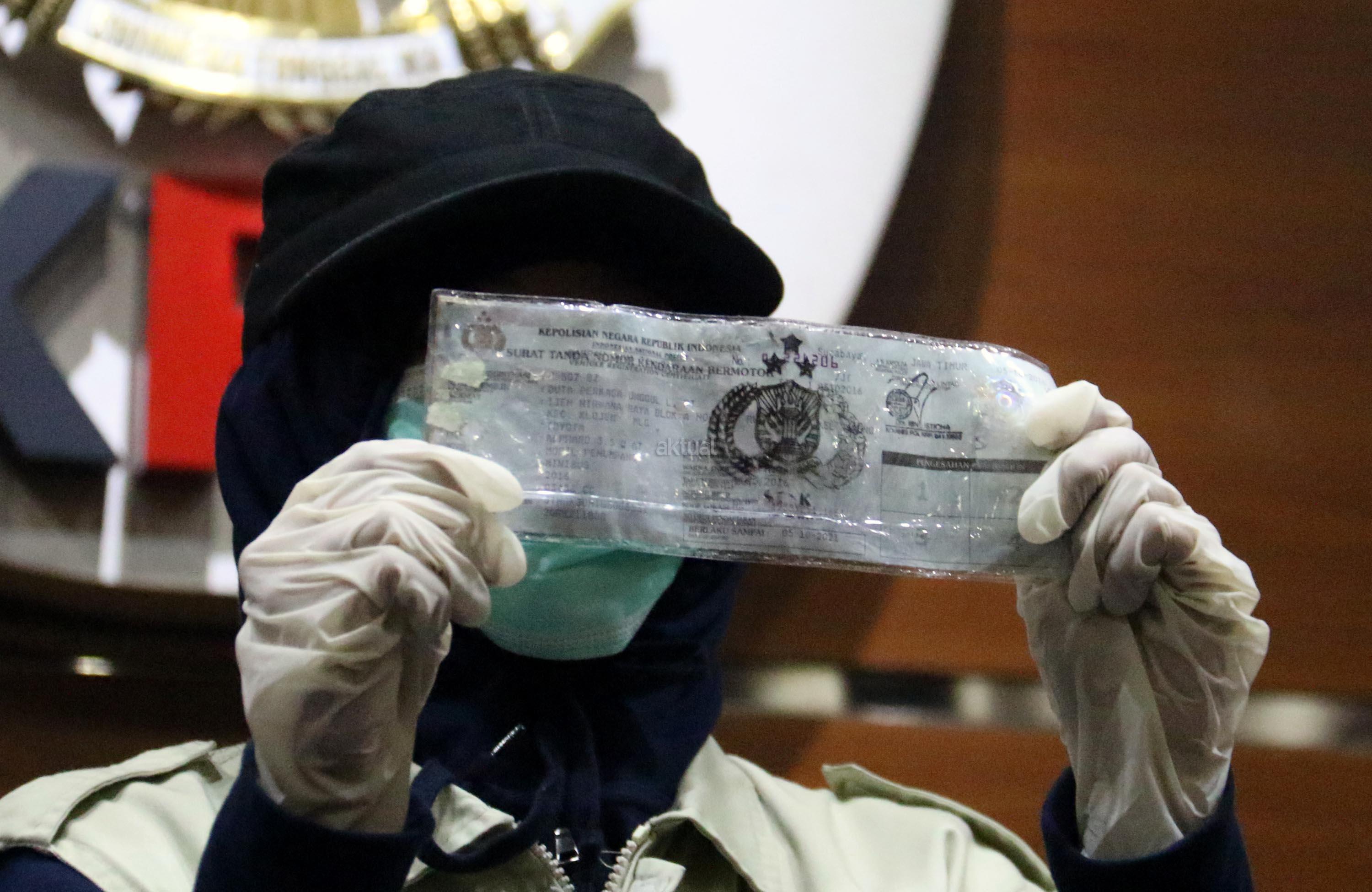 Petugas KPK menunjukan STNK mobil Alphard milik Wali Kota Batu Eddy Rumpoko di Gedung KPK, Jakarta, Minggu (17/9/2017). KPK menetapkan tiga orang tersangka yang terjaring OTT di Batu, Jawa Timur yakni Walikota Batu Eddy Rumpoko, Kepala Bagian dan Pengadaan Pemkot Batu Edi Setiawan dan Pengusaha Philip serta mengamankan Rp200 juta terkait kasus dugaan suap pengadaan barang dan jasa Pemkot Batu. AKTUAL/Munzir
