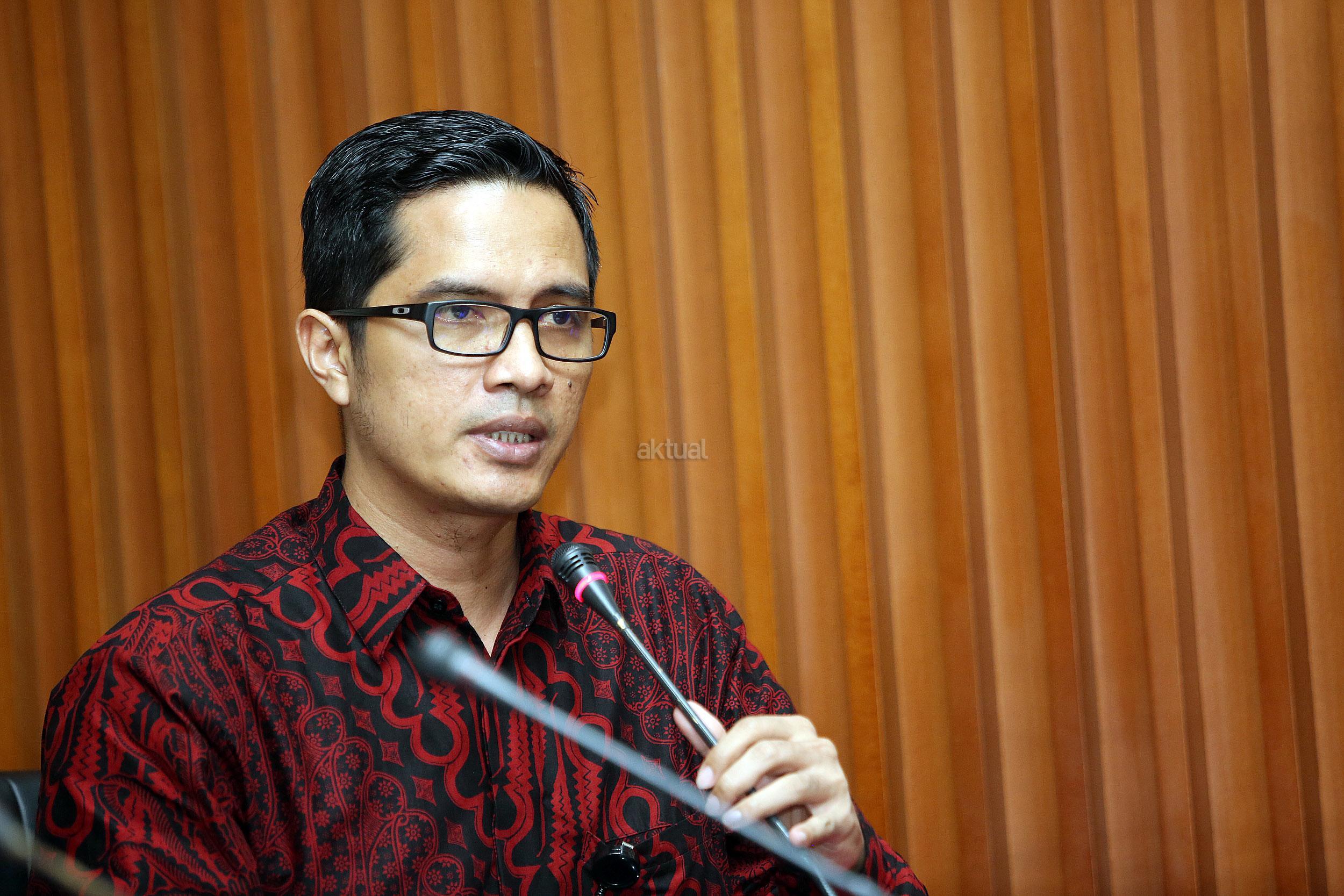 Jubir KPK Febri Diansyah saat konferensi pers tentang OTT di Pengadilan Negeri Jakarta Selatan di Gedung KPK, Jakarta, Selasa (22/8). KPK mengamankan barang bukti berupa bukti transferan dan buku tabungan serta menetapkan dua orang tersangka yaitu panitera pengganti PN Jakarta Selatan Tarmizi dan pengacara bernama Akhmad dan mengamankan uang senilai Rp.425 juta terkait kasus suap untuk pengurusan perkara suatu perusahaan yaitu PT ADI (Aquamarine Divindo Inspection). AKTUAL/Tino Oktaviano