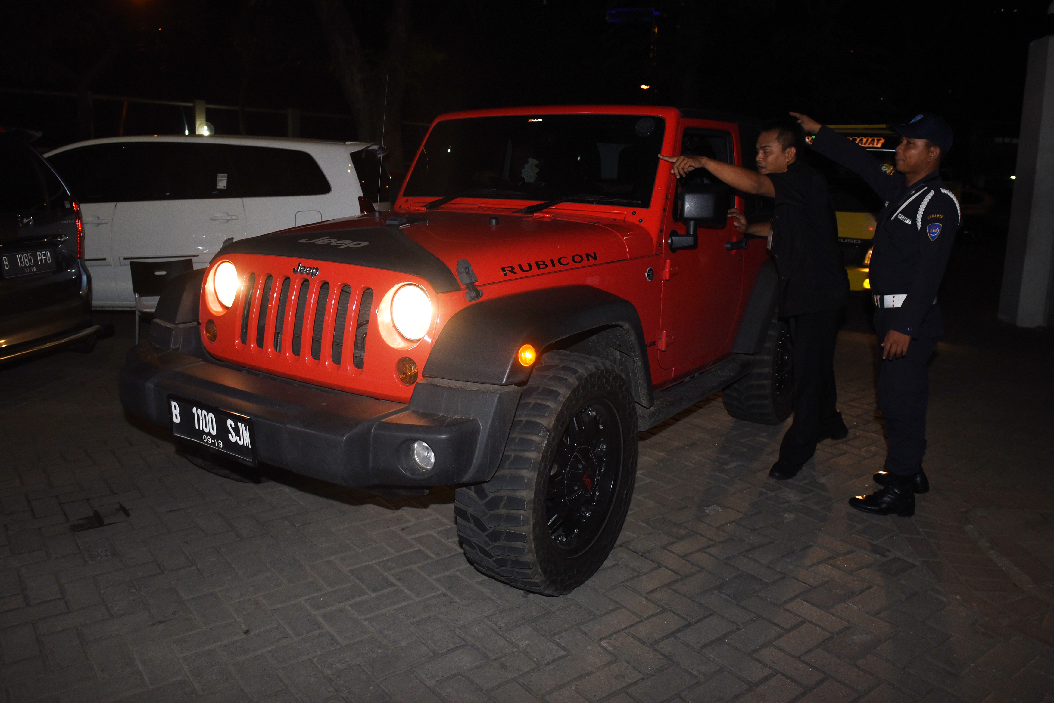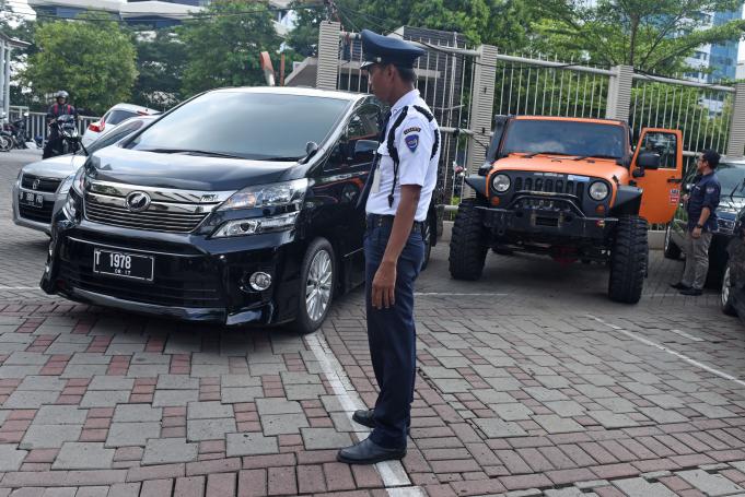 Mobil Jeep Wrangler berwarna oranye (kanan) dan Toyota Vellfire (kiri) yang disita KPK diparkir di parkiran Gedung KPK, Jakarta, Kamis (28/4). KPK menyita Mobil Jeep Wrangler berplat nomor D 50 KR dan Toyota Vellfire berplat nomor T 1978 hasil gratifikasi milik Bupati Subang Ojang Suhandi yang telah menjadi tersangka dugaan pemberi suap terkait perkara suap BPJS di Kejaksaan Tinggi Jawa Barat. ANTARA FOTO/Hafidz Mubarak A./pd/16