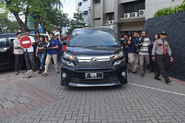 Satu unit Mobil Toyota Vellfire yang disita KPK dibawa menuju parkiran Gedung KPK, Jakarta, Kamis (28/4). KPK menyita Mobil Jeep Wrangler berplat nomor D 50 KR dan Toyota Vellfire berplat nomor T 1978 hasil gratifikasi milik Bupati Subang Ojang Sohandi yang telah menjadi tersangka dugaan pemberi suap terkait perkara suap BPJS di Kejaksaan Tinggi Jawa Barat. ANTARA FOTO/Hafidz Mubarak A./pd/16