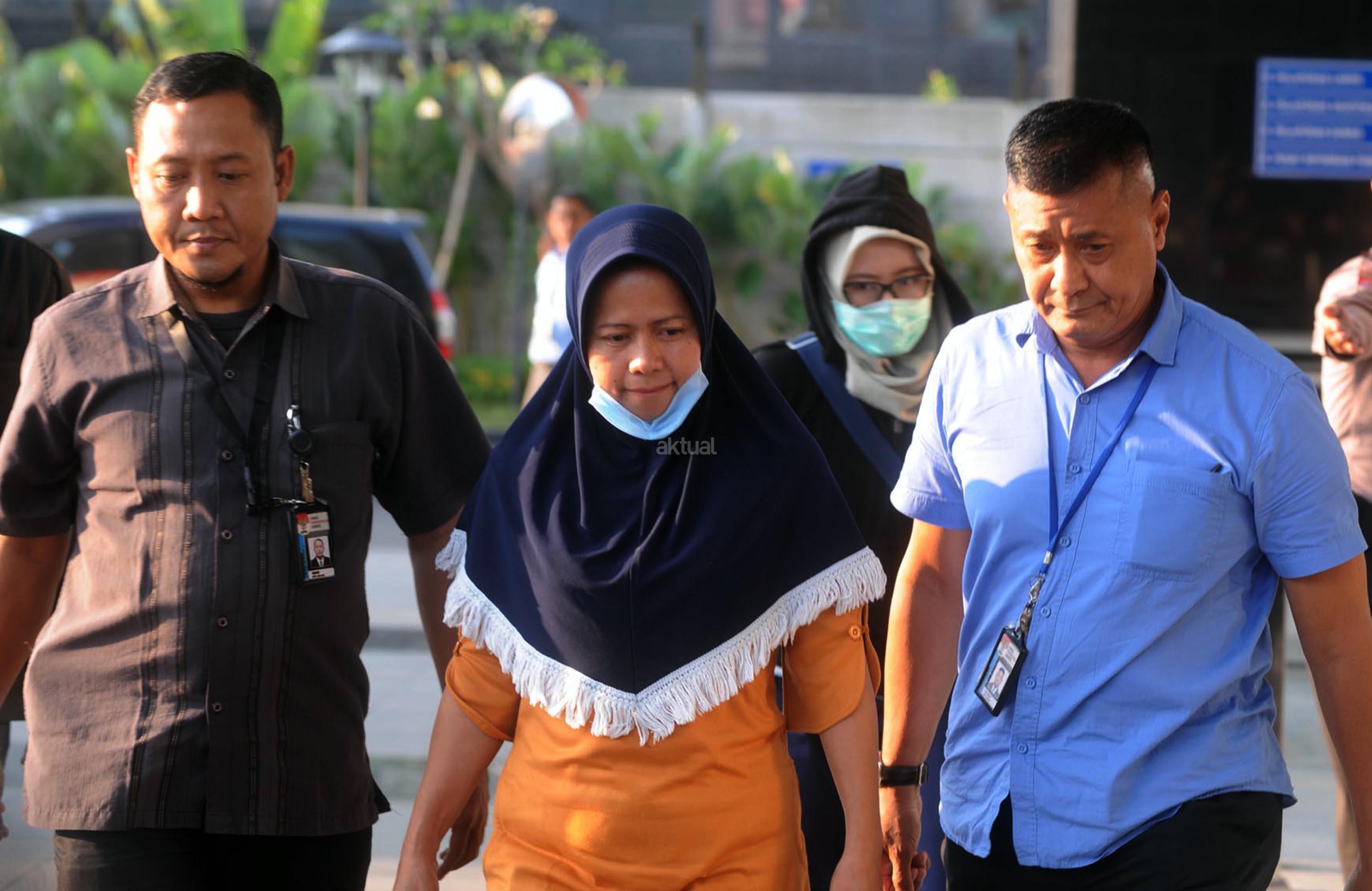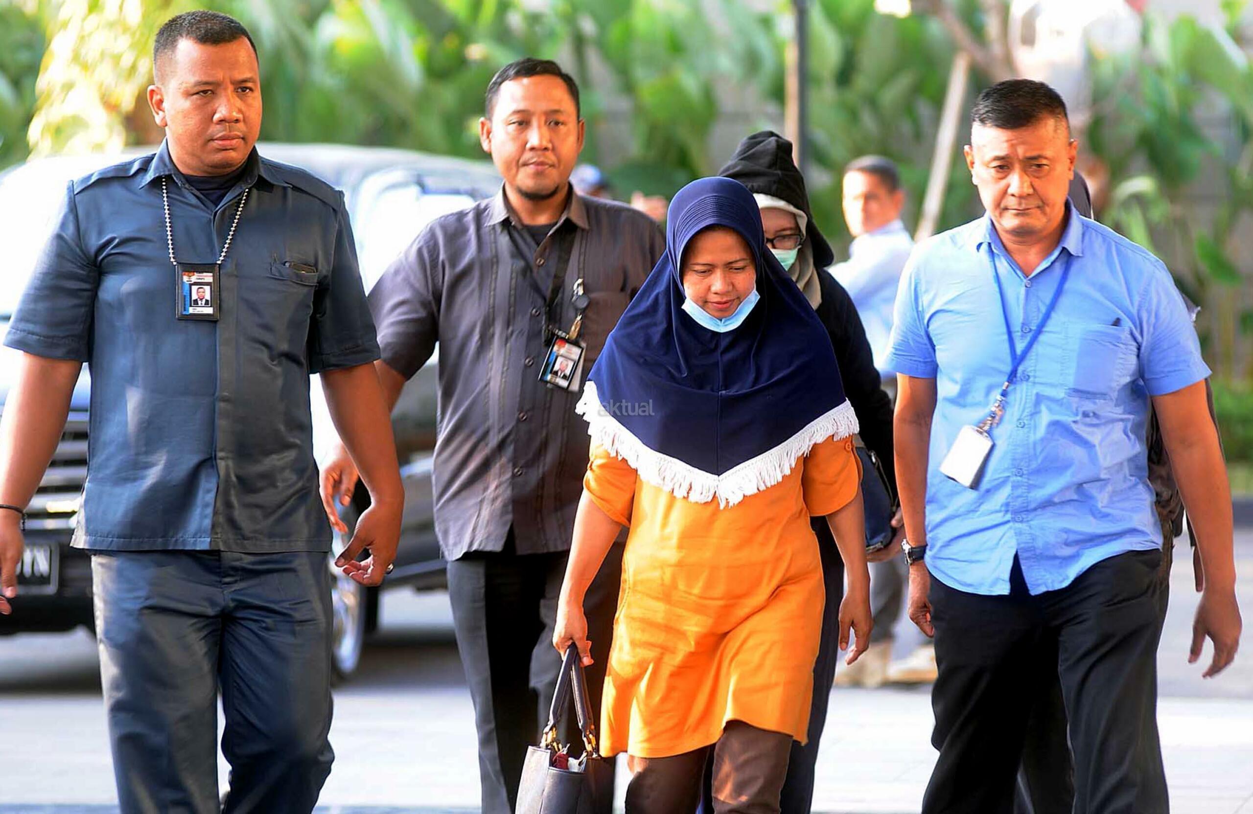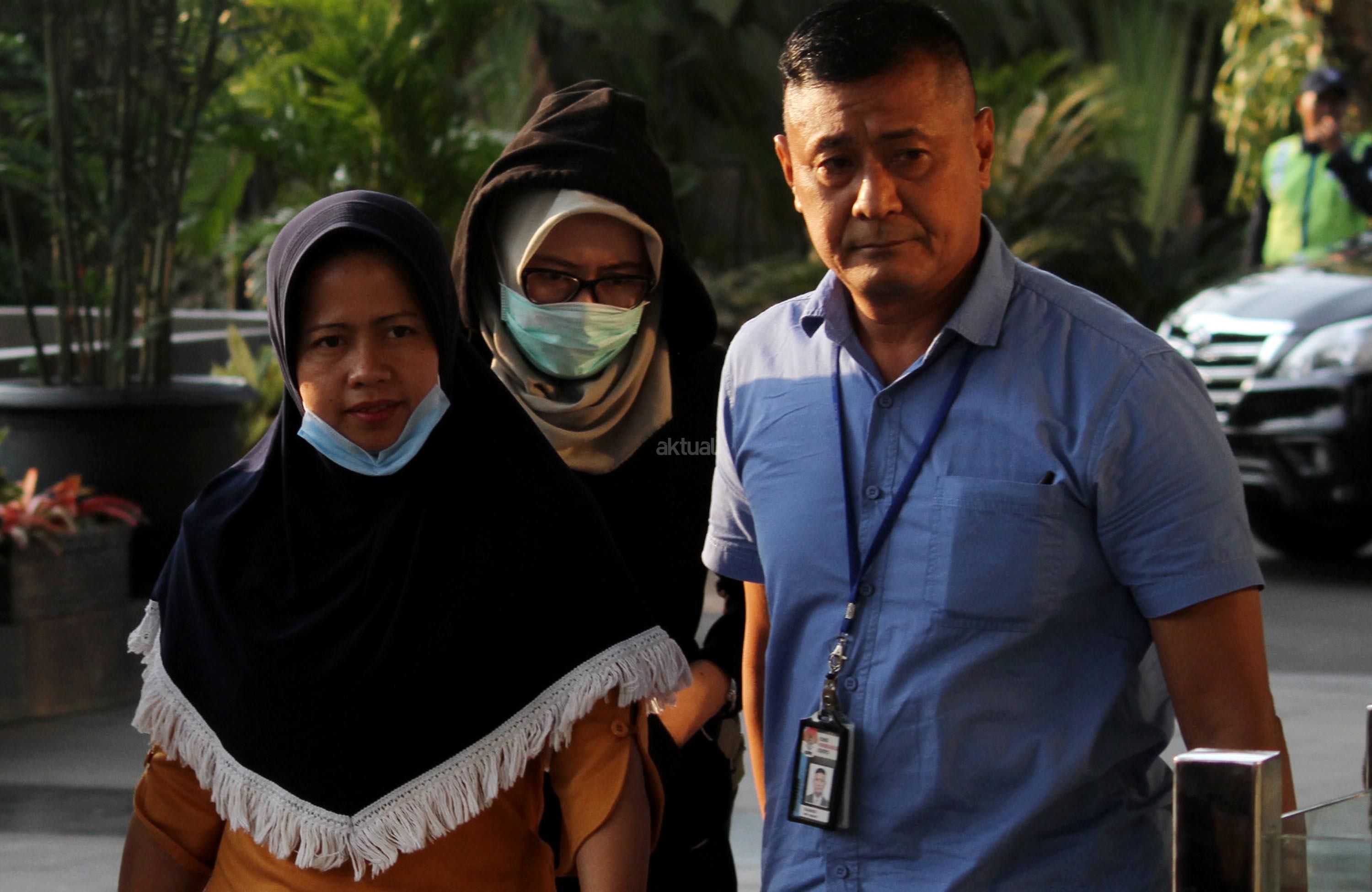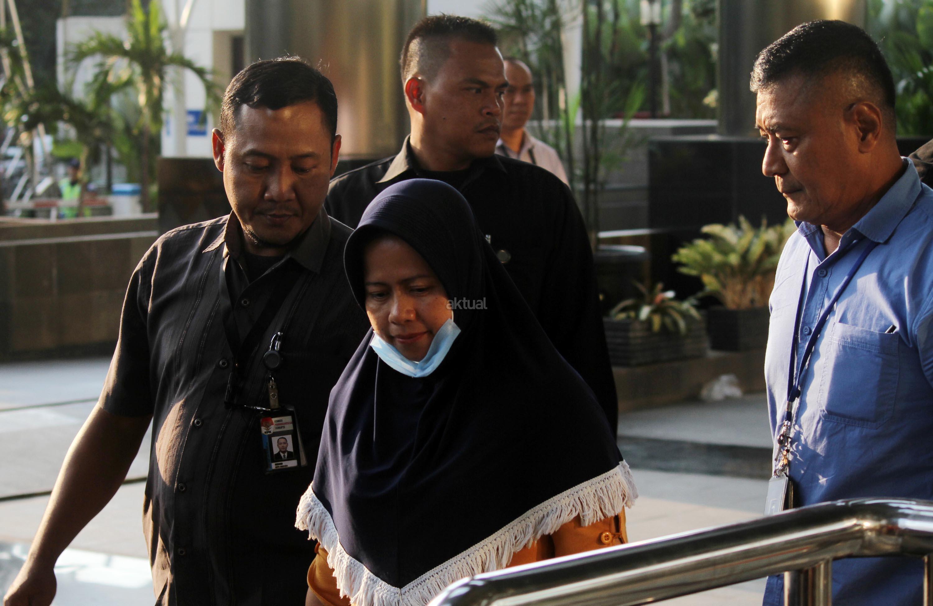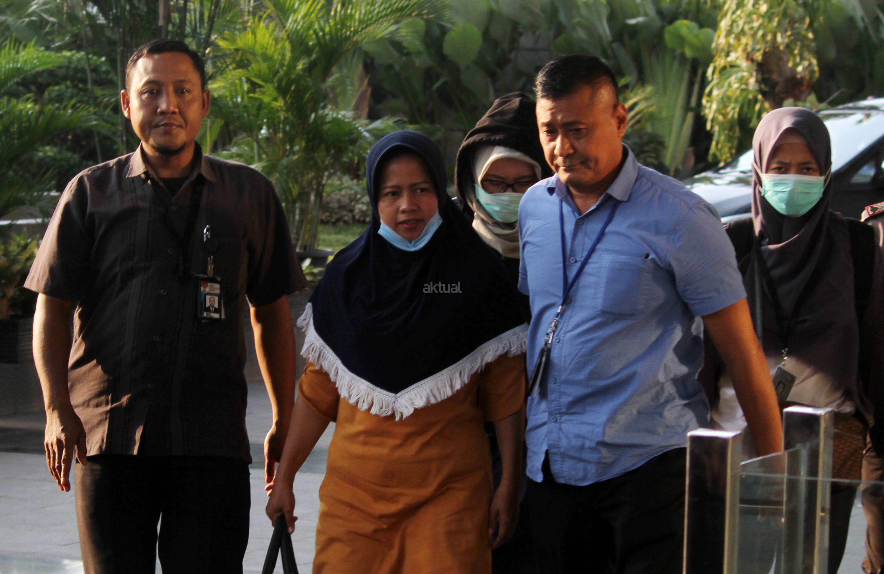 Hakim Pengadilan Tipikor Bengkulu, Dewi Suryana, didampingi petugas saat akan dibawa kedalam Gedung KPK di Jakarta, Kamis (7/9/2017). Petugas KPK mengamankan Hakim Dewi Suryana dan pensiunan Panitera Dahniar di sebuah rumah di Kelurahan Sawah Lebar, Kota Bengkulu, bersama uang ratusan juta rupiah yang diduga bagian dari transaksi untuk mengamankan sebuah perkara. AKTUAL/Munzir