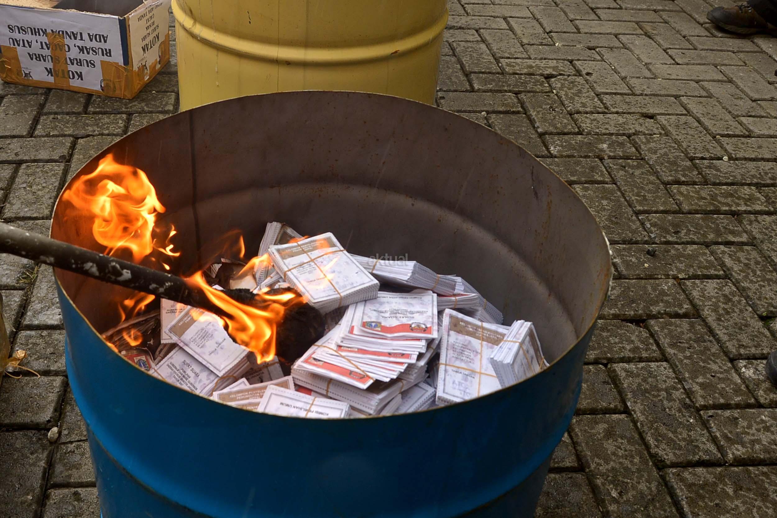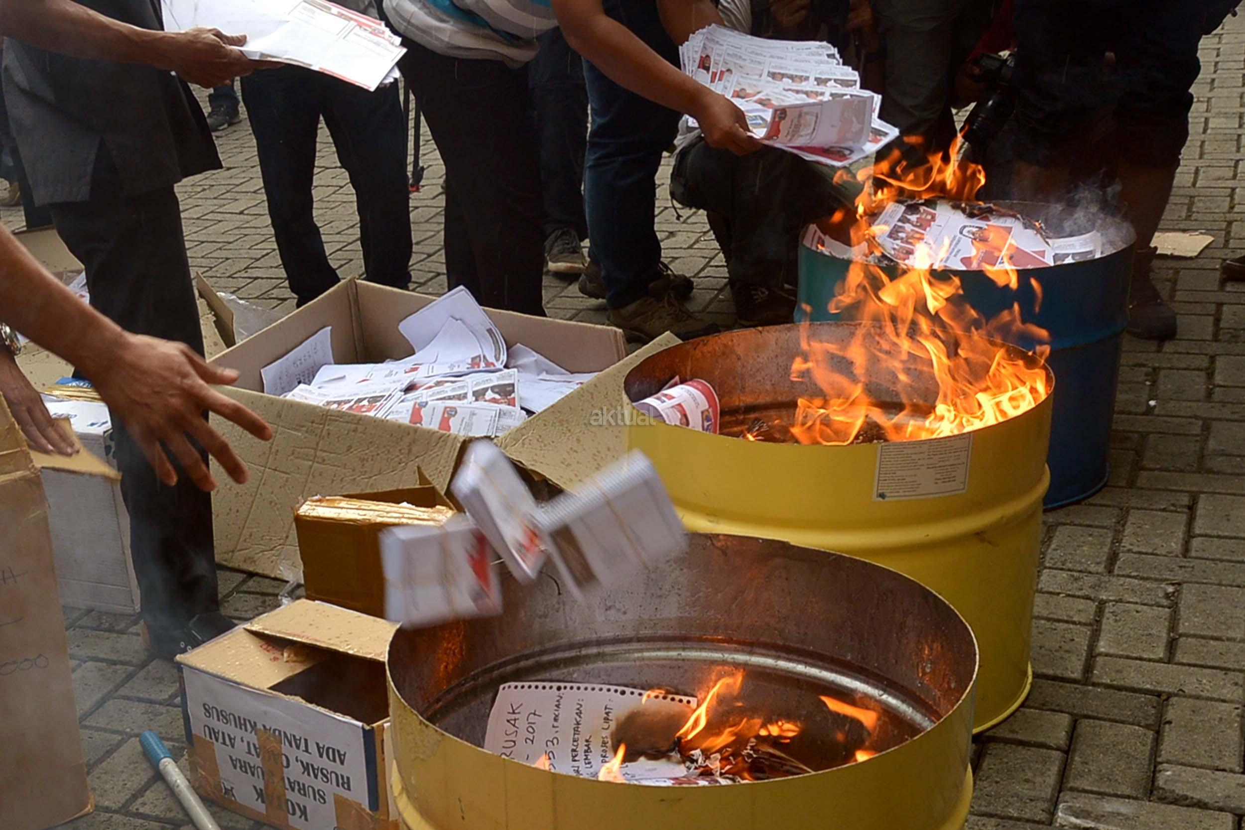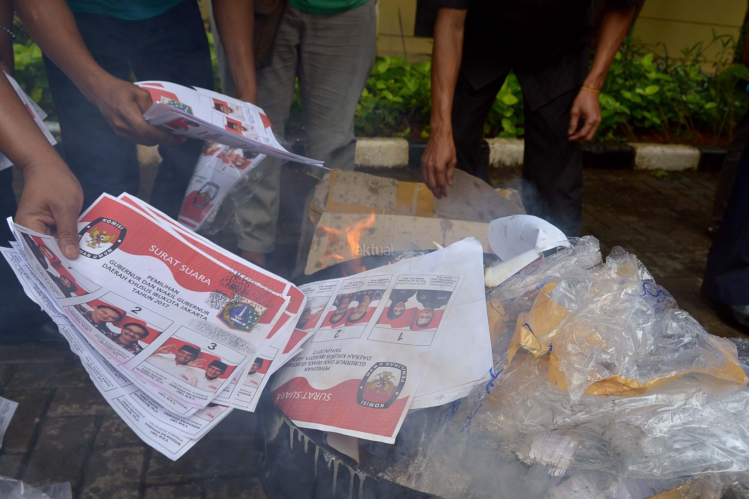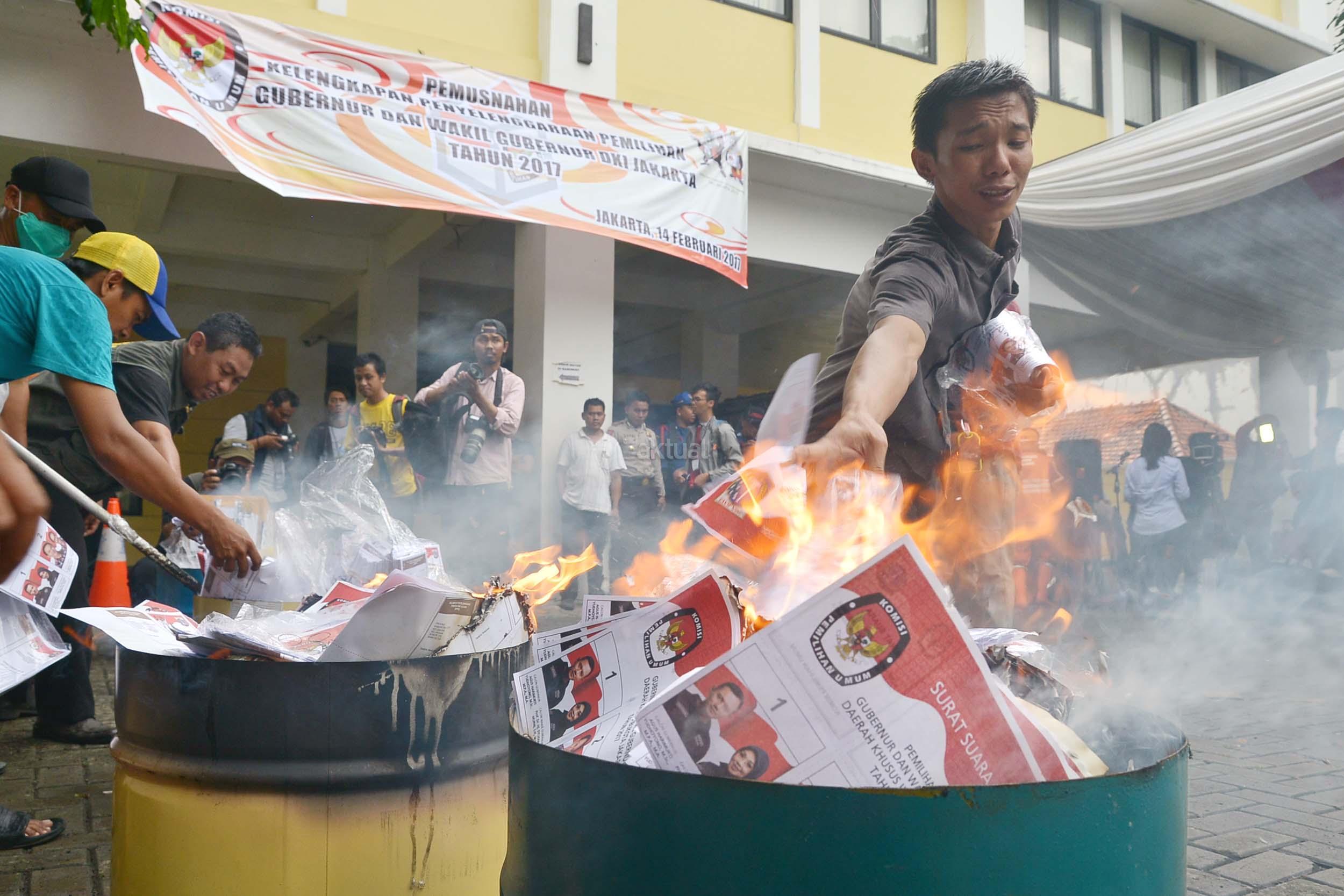 KPUD musnahkan surat suara rusak Pilgub DKI. Ketua KPUD DKI Jakarta Sumarno memusnahkan 46.628 kelebihan surat suara dan 22.444 surat suara rusak atau cacat. Pemusnahan ini guna menghindari kecurangan di Pilgub DKI. AKTUAL/Munzir